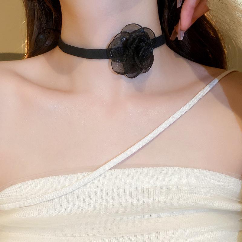 Collar gargantilla de encaje floral de tela estilo oscuro personalidad un brazalete de temperamento de doble uso collar cadena clavícula mujeres