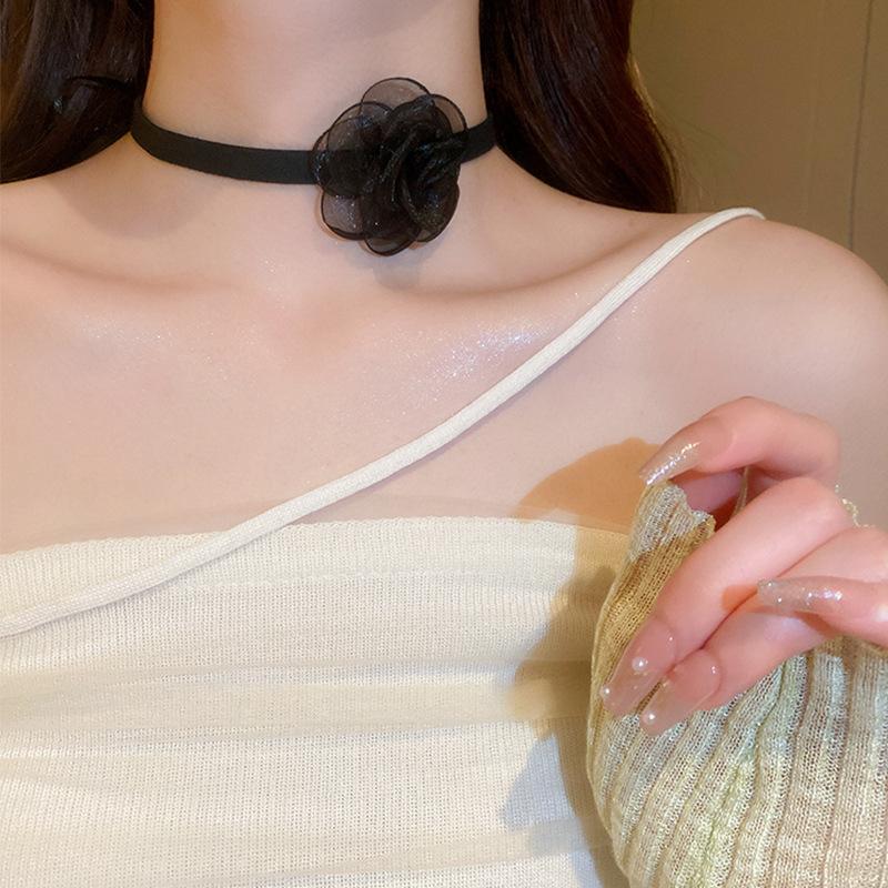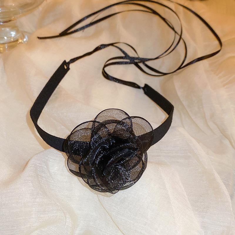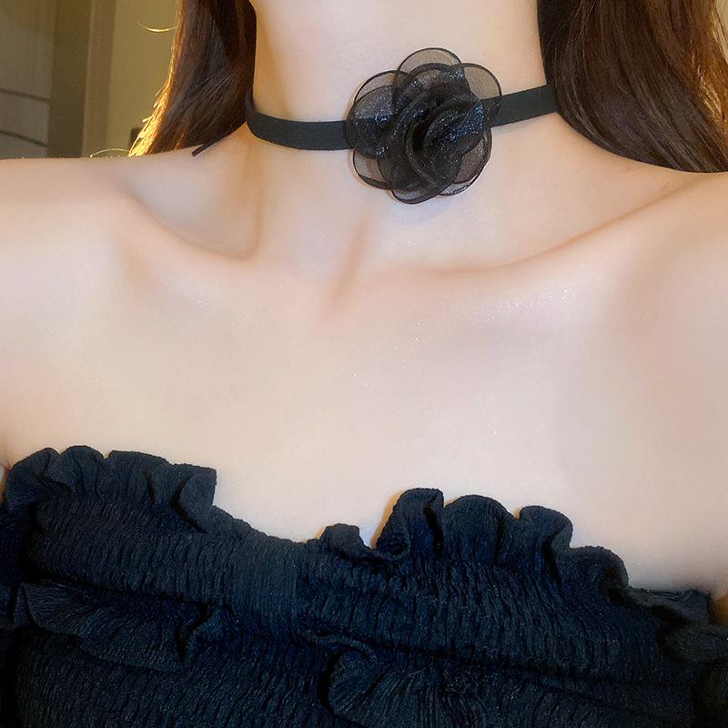 Compra Collar gargantilla de encaje floral de tela estilo oscuro personalidad un brazalete de temperamento de doble uso collar cadena clavícula mujeres al por mayor en Joom.pro