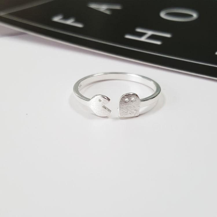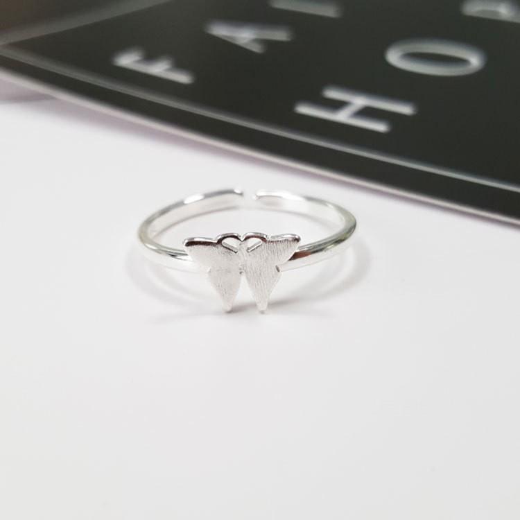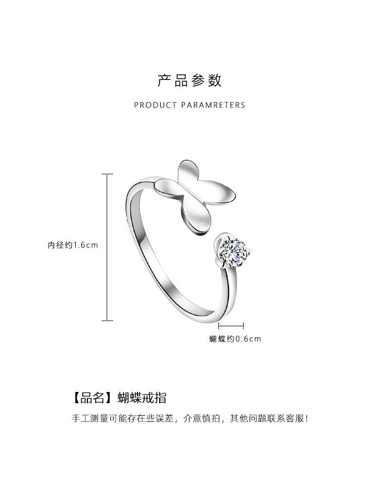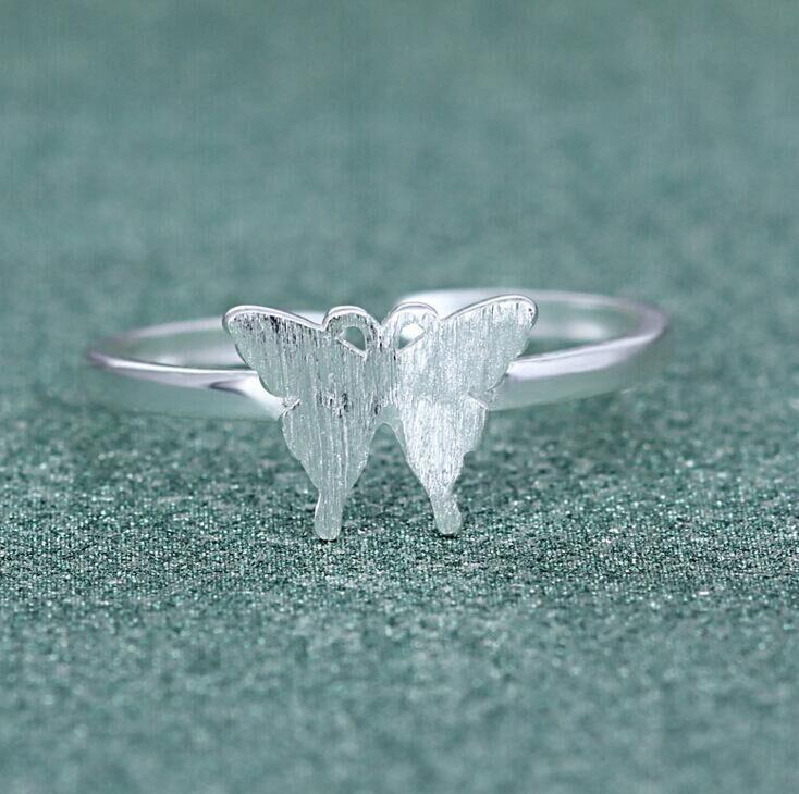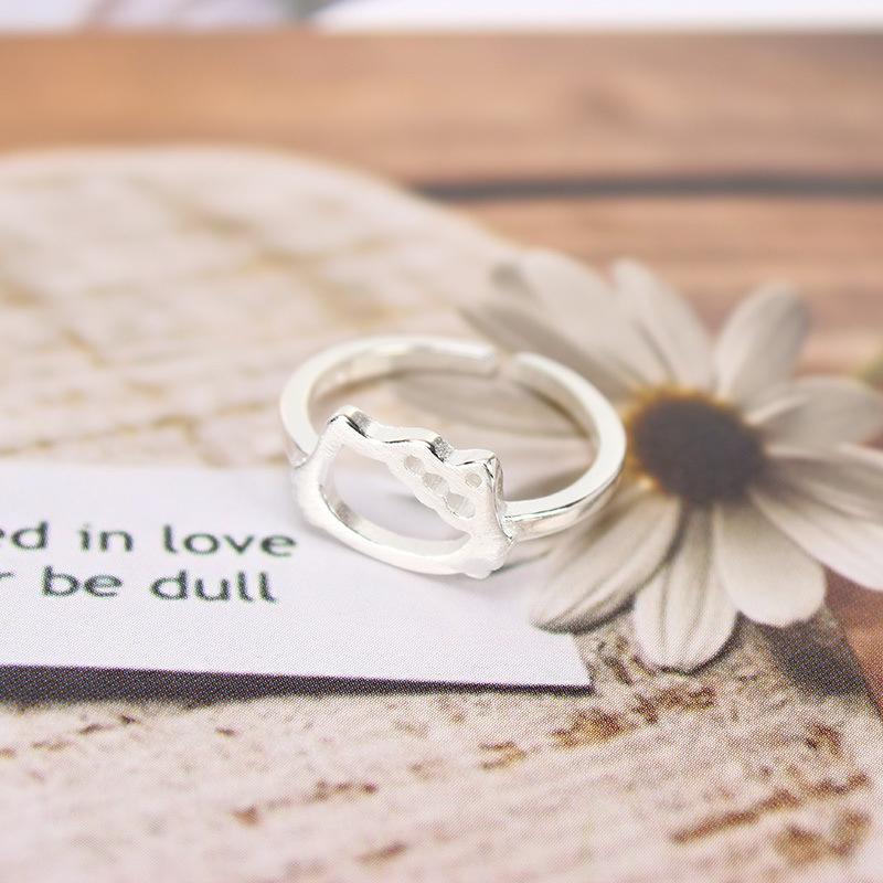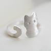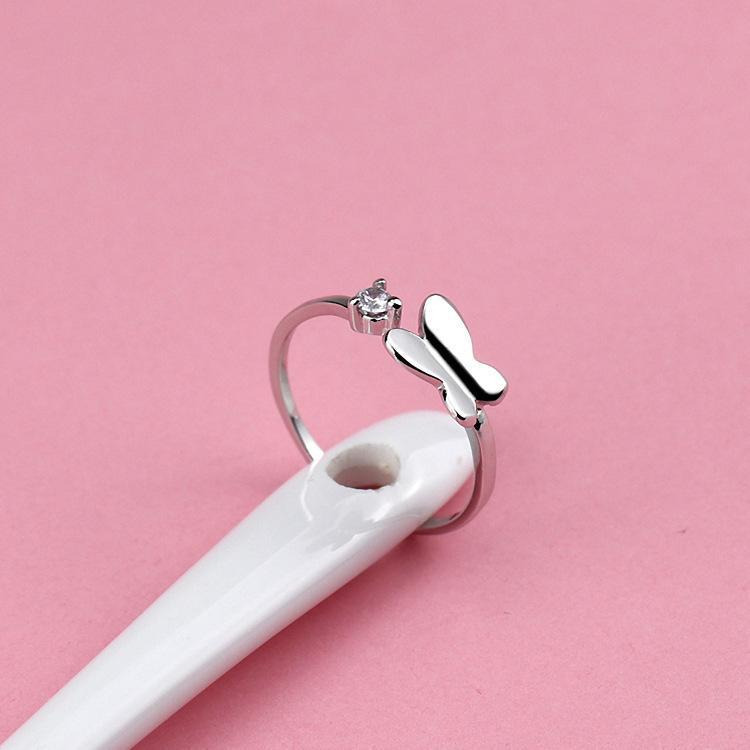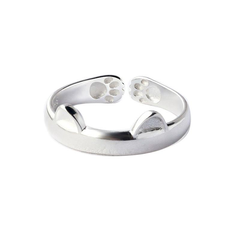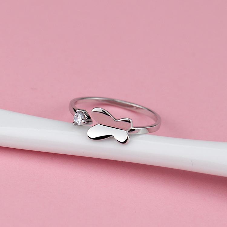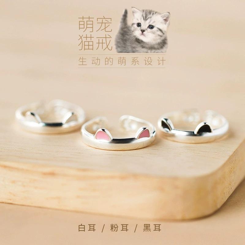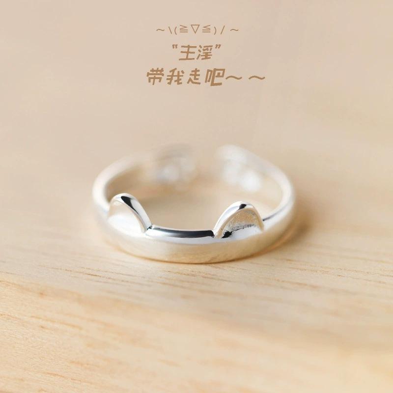 Anillo de Orejas de Gato Lindo de Plata S925 Japonesa y Coreana para Mujer Moda Retro Simple Mariposa Geométrico Abierto Anillo para Dedo Comida