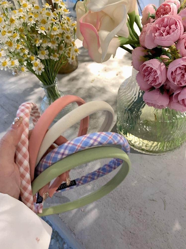 1# beige-fine hairband, 6# Green Plaid-Thin Hair Hoop