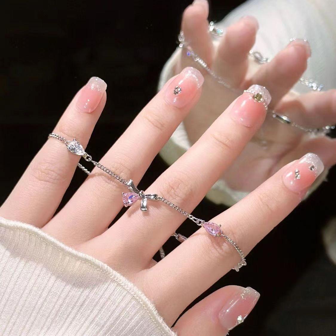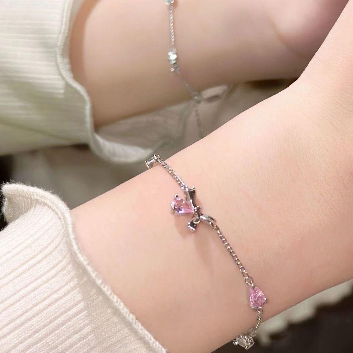 Pulsera de Lazo de Zircón Rosa Lujo Accesible Diseño Nicho Exquisita Joyería de Mano de Alta Gama Nueva Joyería Dulce 2025