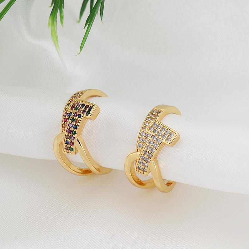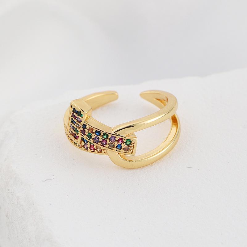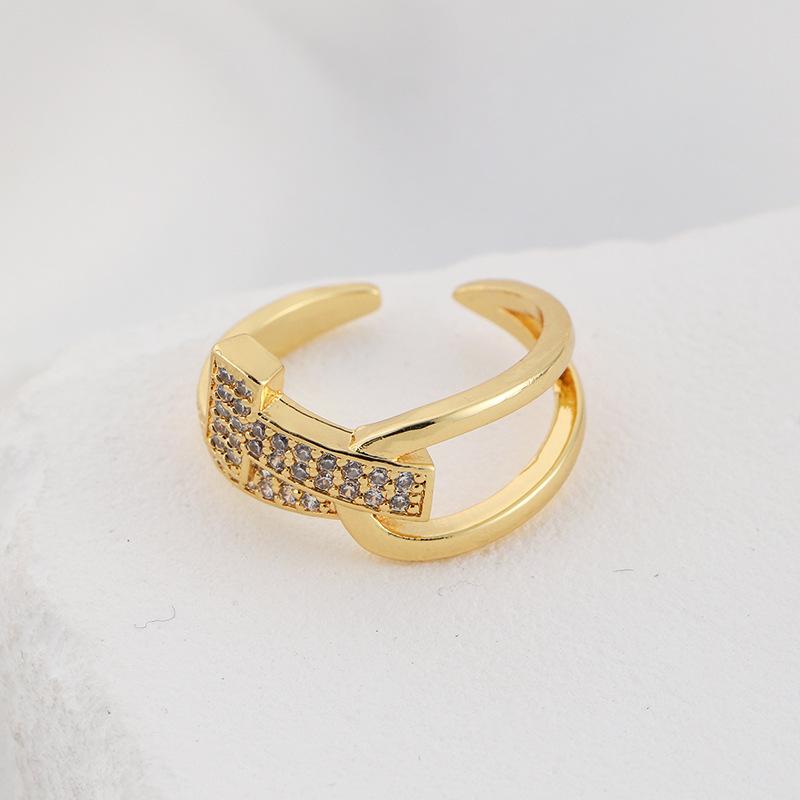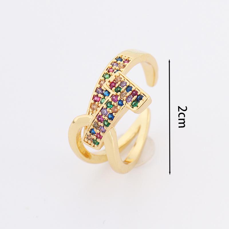 Anillo cruzado nuevo geométrico transfronterizo con micro incrustaciones de circonita en forma de T, cobre chapado en oro real de alto color, estilo europeo y americano, anillo personalizado