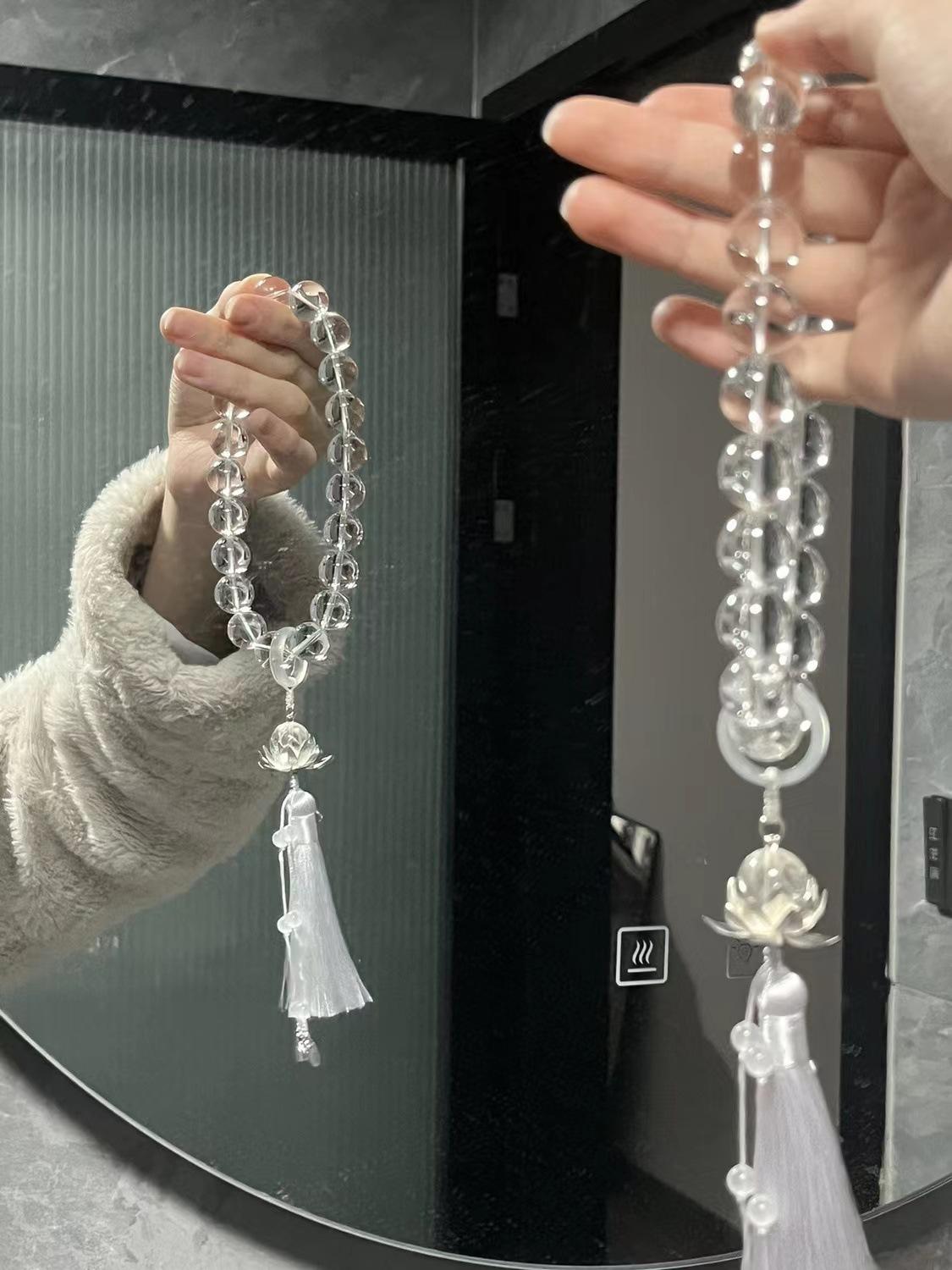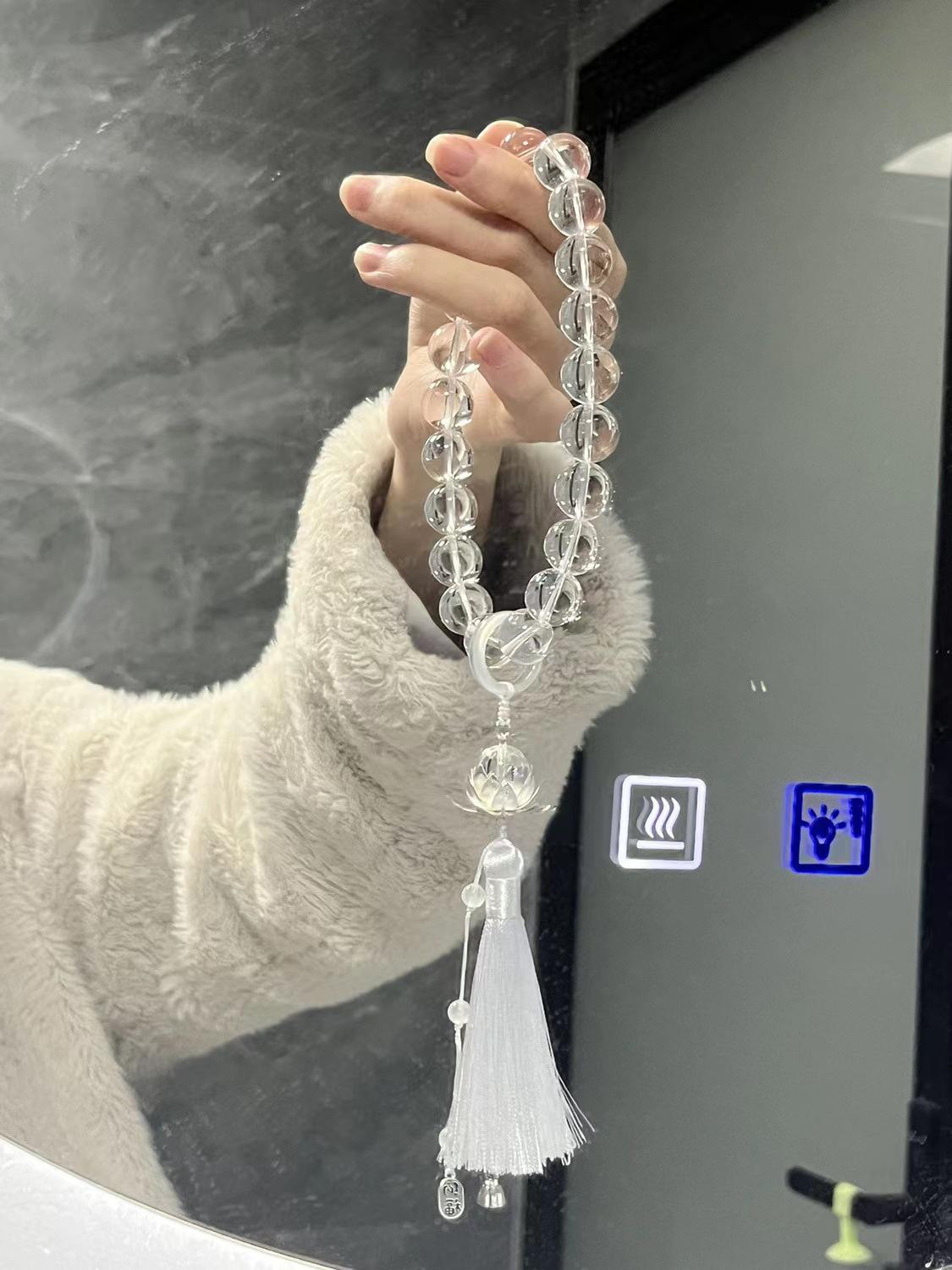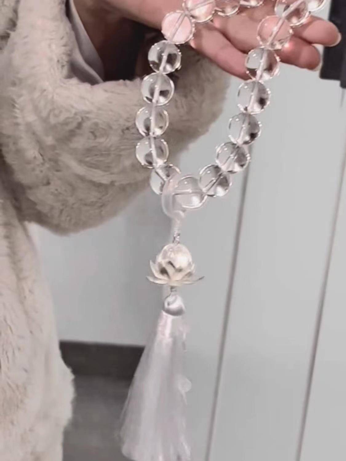 Liansheng Pulsera de Borla Guofeng de Cristal Blanco de Mano Pulsera Antigua Todo Combinable para Hombre y Mujer Juego de Platos Estilo Zen Chino Nuevo