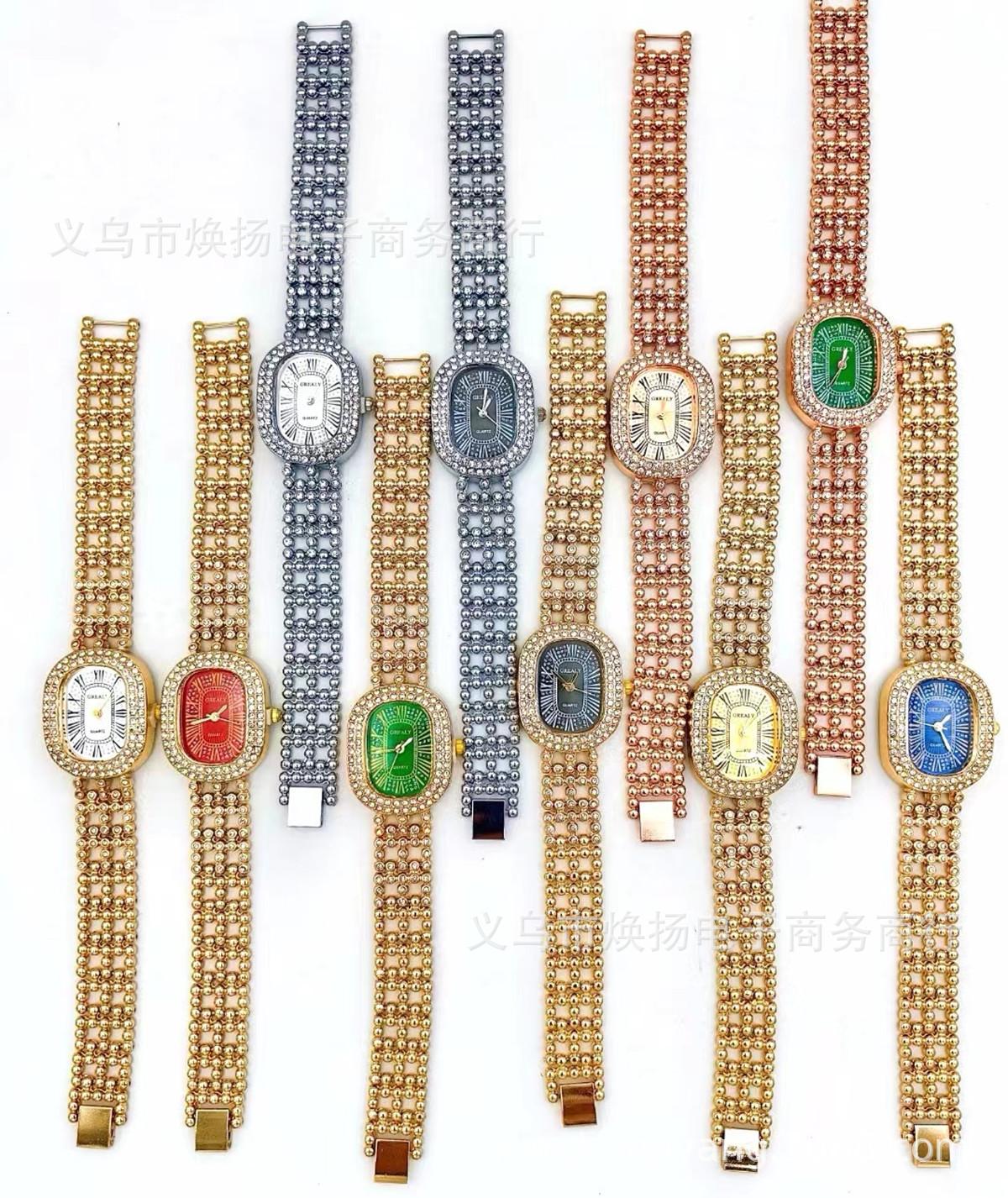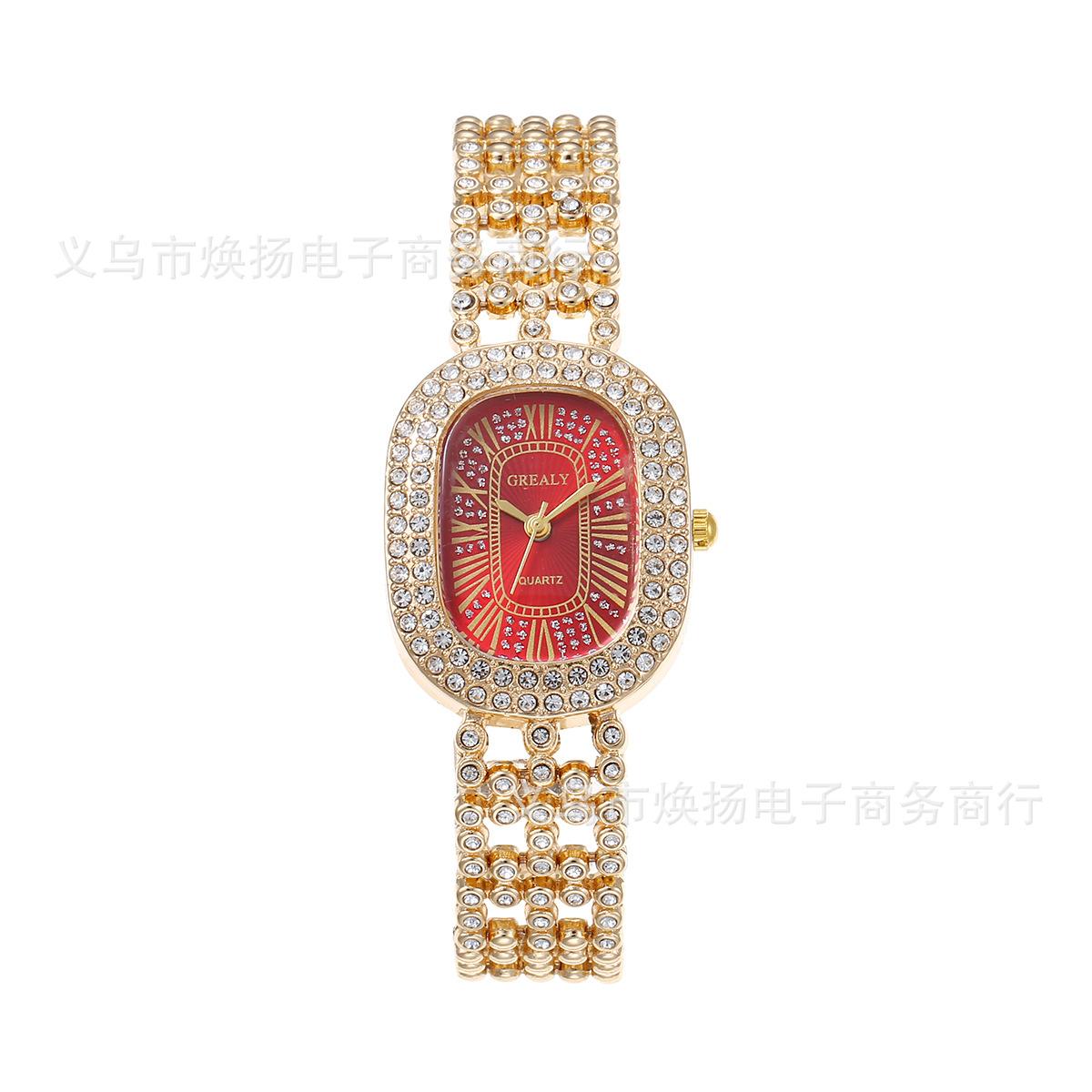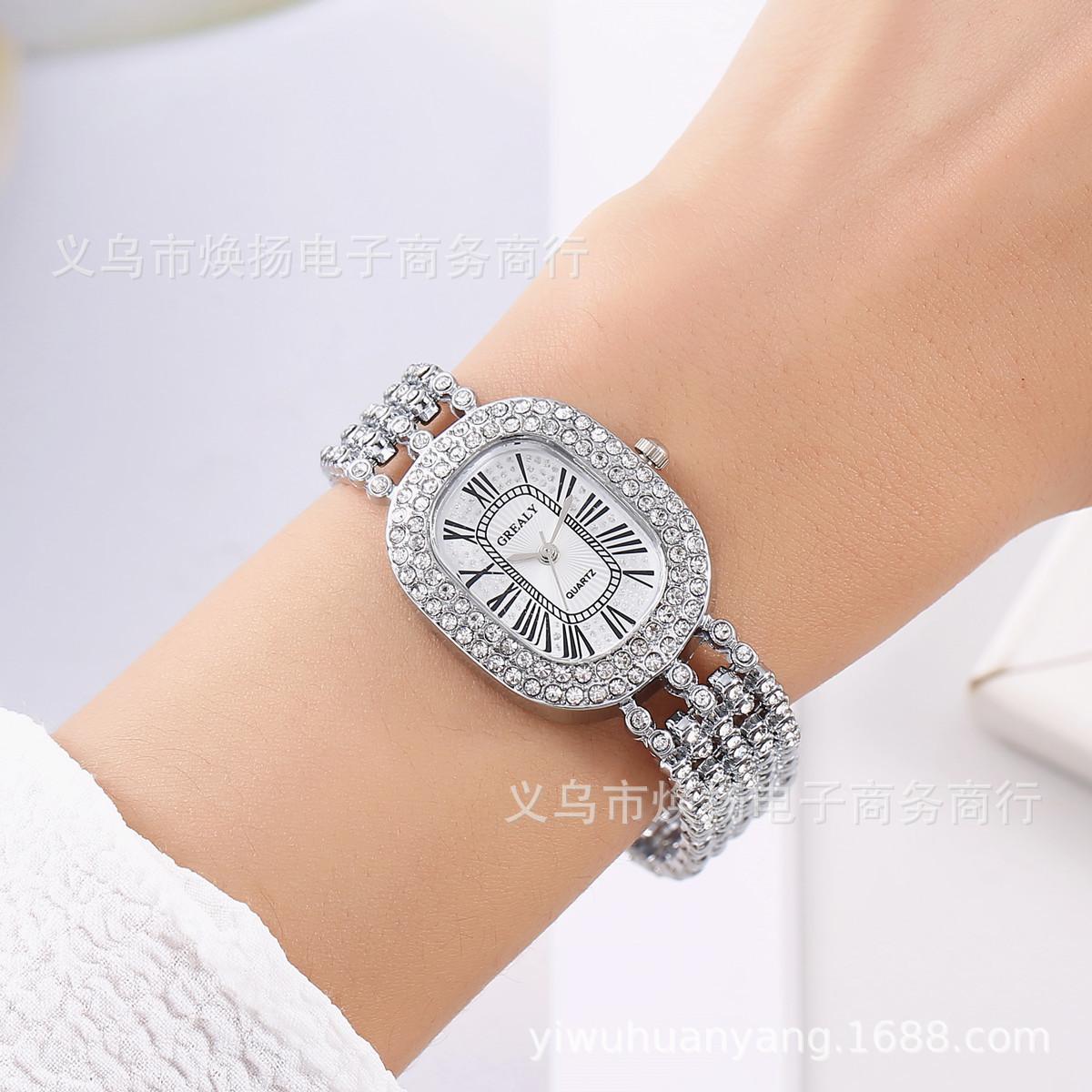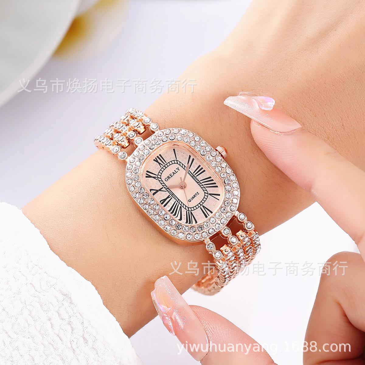 Reloj ovalado con pulsera romana simple y diamantes incrustados, reloj de cuarzo, venta transfronteriza, reloj de moda para mujer.