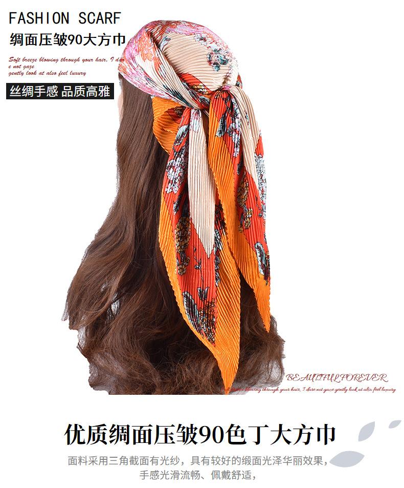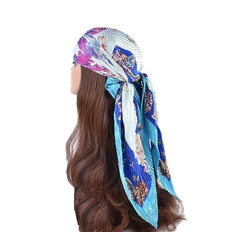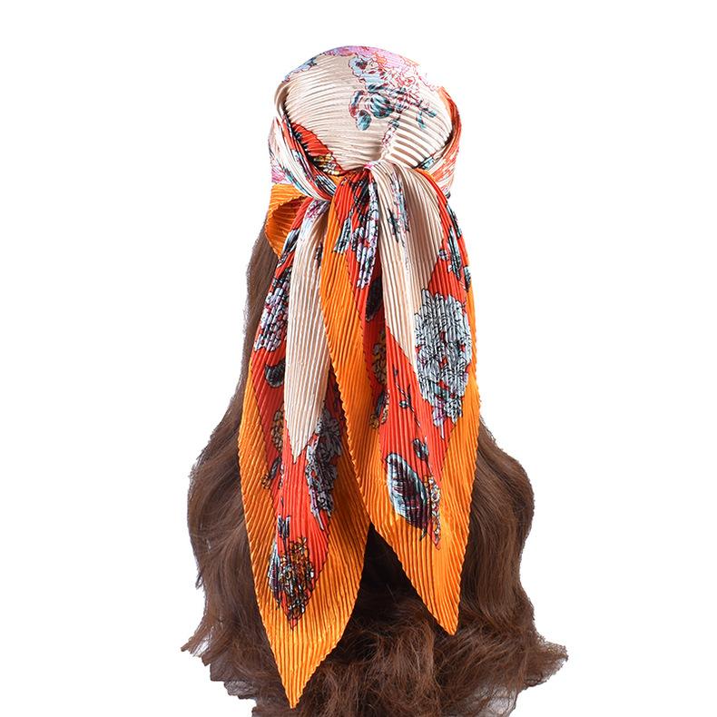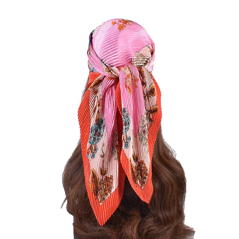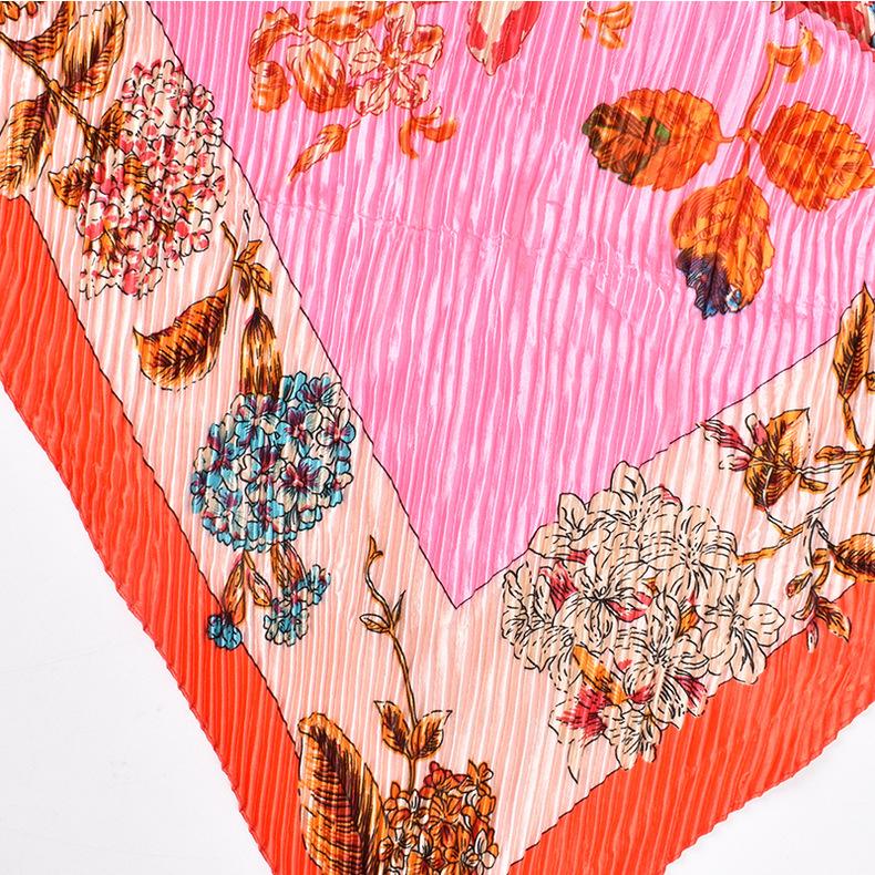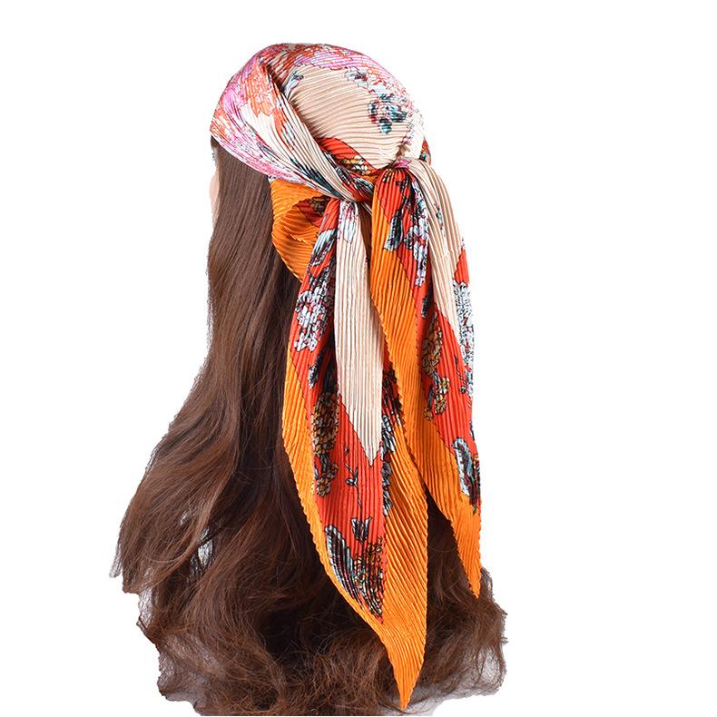 Bufanda de seda cuadrada grande de satén 90 con pliegues y flores retro de moda de verano, bufanda de seda de imitación al por mayor