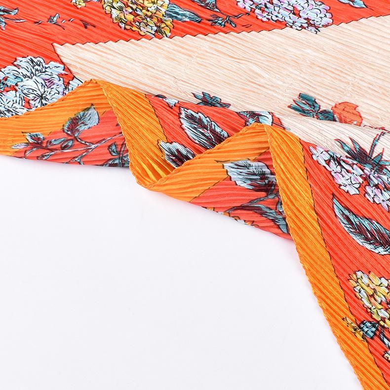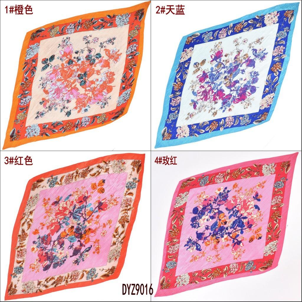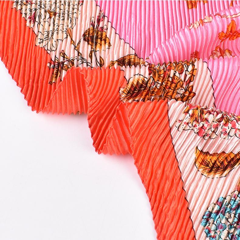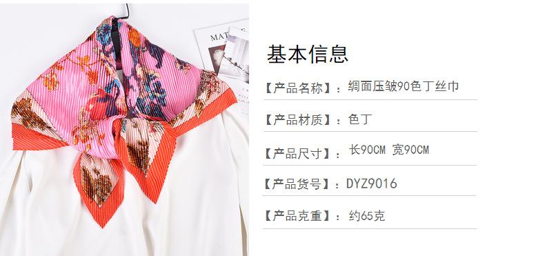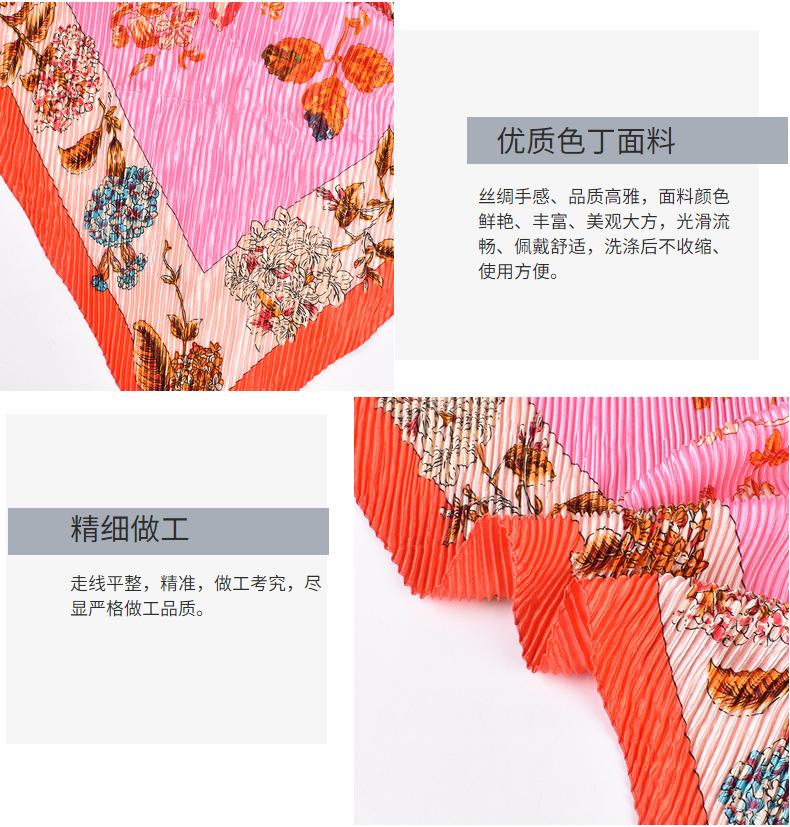 Bufanda de seda cuadrada grande de satén 90 con pliegues y flores retro de moda de verano, bufanda de seda de imitación al por mayor