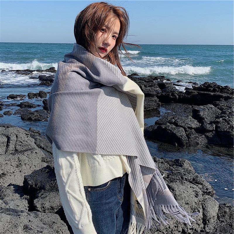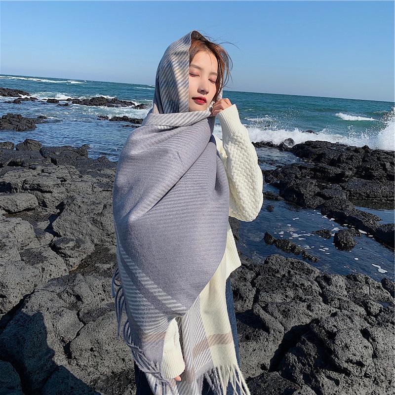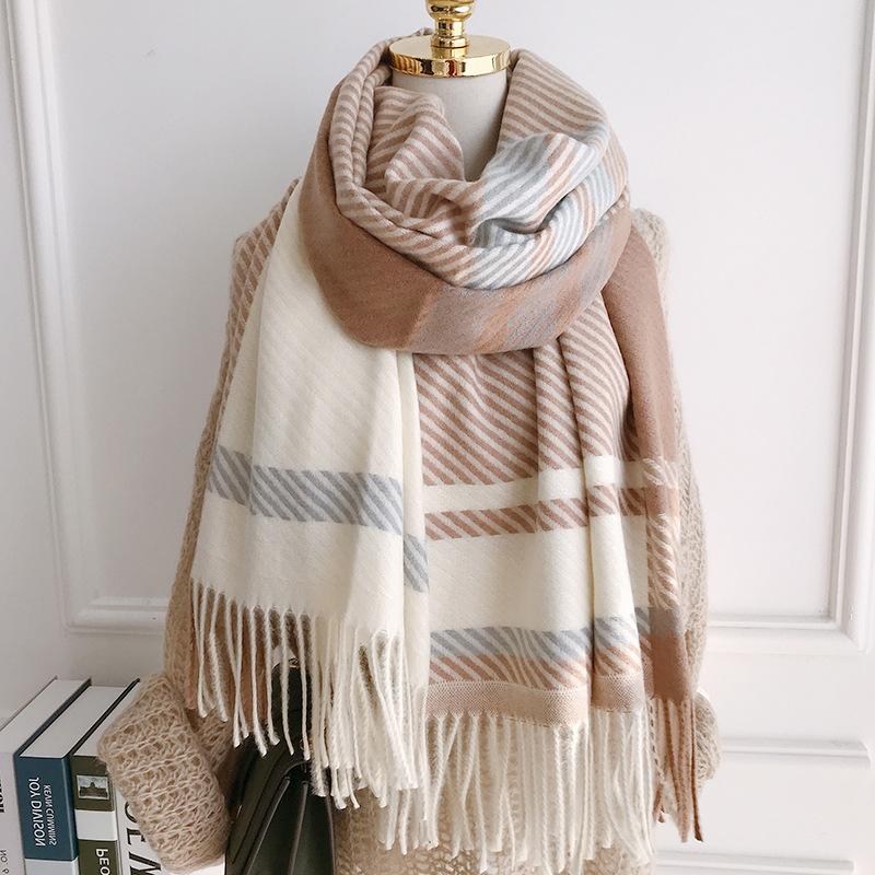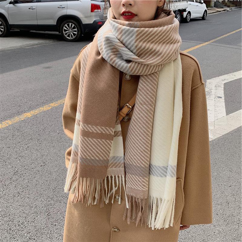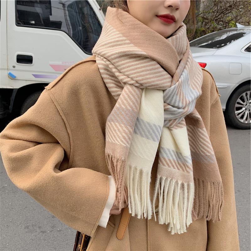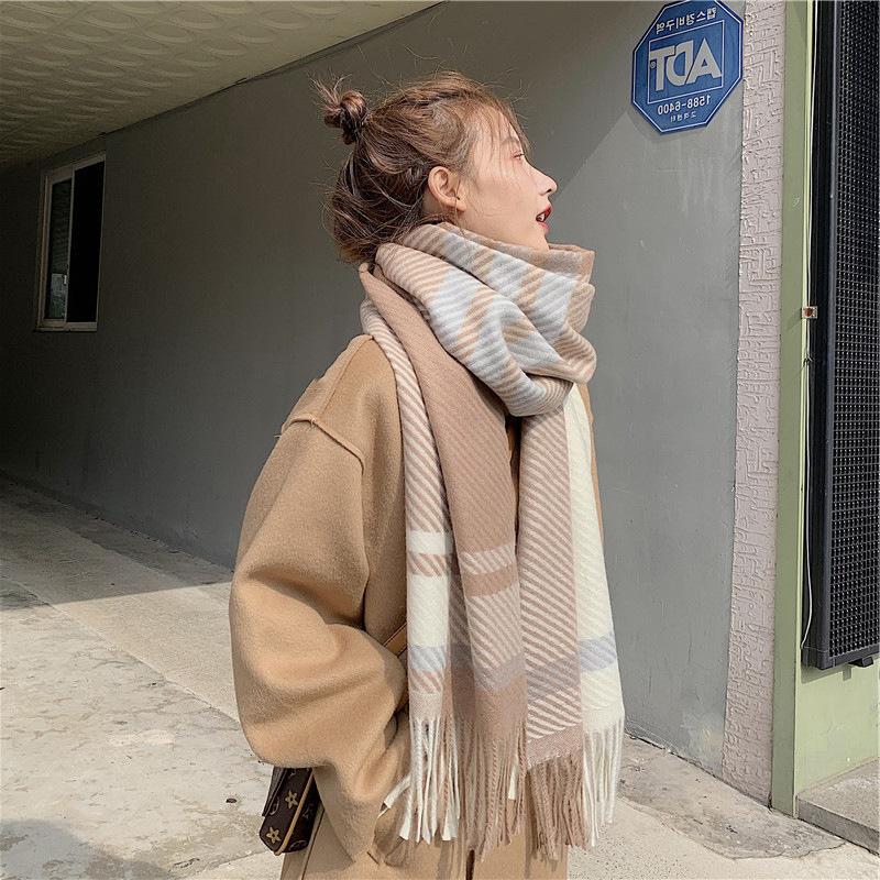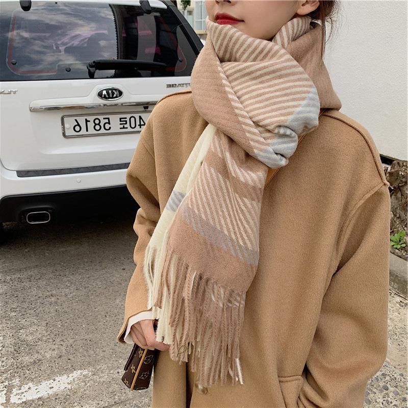 Bufanda a cuadros de otoño e invierno para mujer, nueva bufanda de imitación de cachemira, estilo coreano, combina con todo, para estudiantes, cálida y chal para parejas.