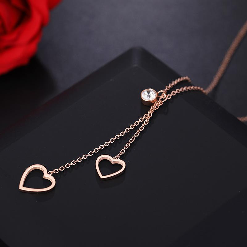 Collar de acero de titanio para mujer, versión coreana, chapado en oro rosa de 18 quilates, con dos borlas de amor, cadena de clavícula en forma de corazón, joyería al por mayor