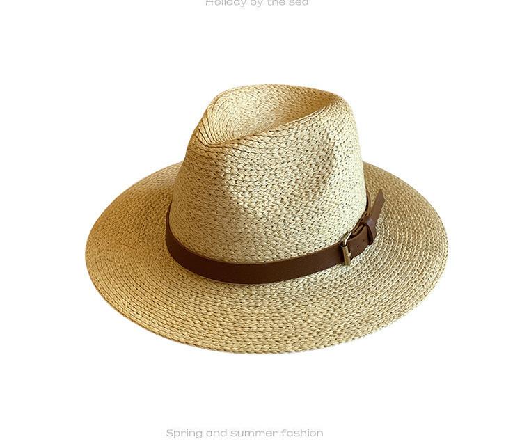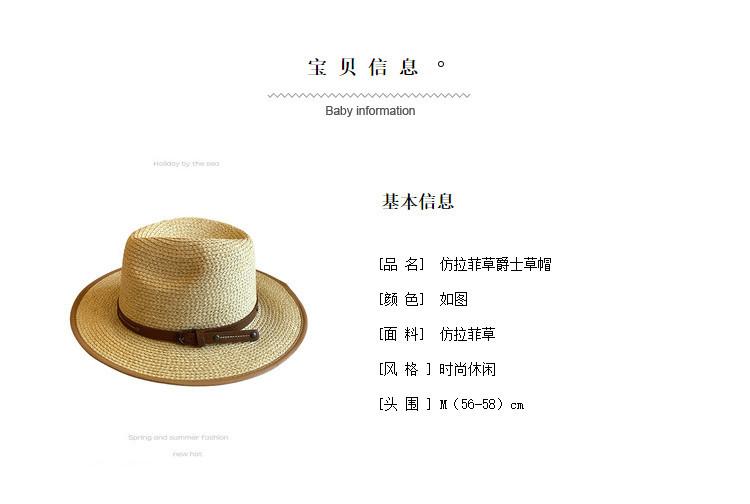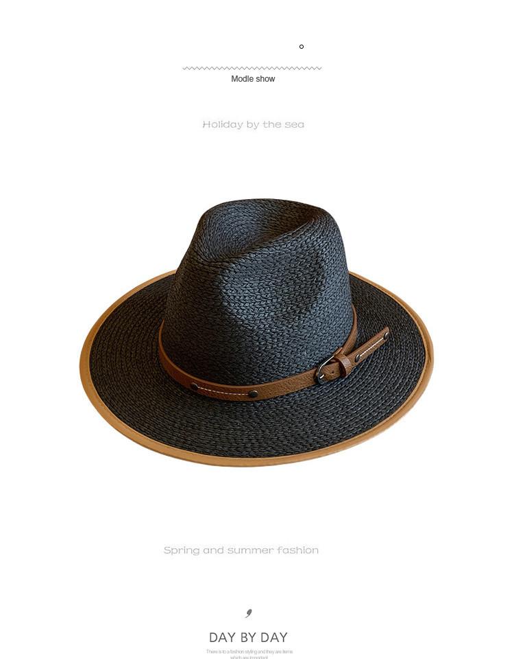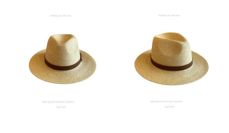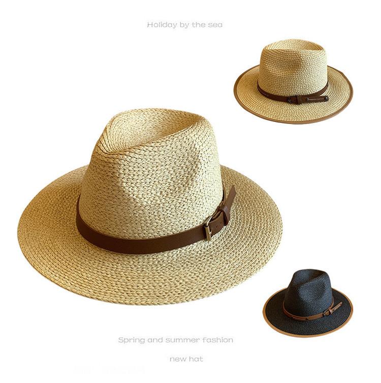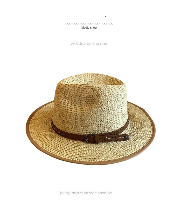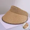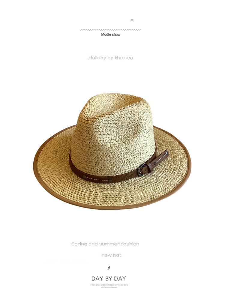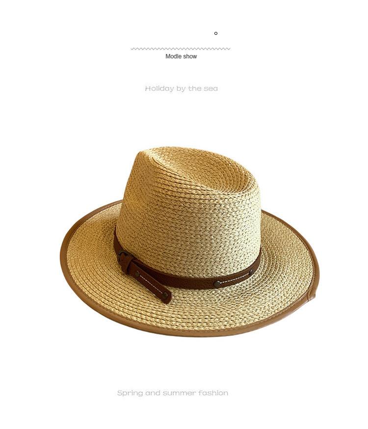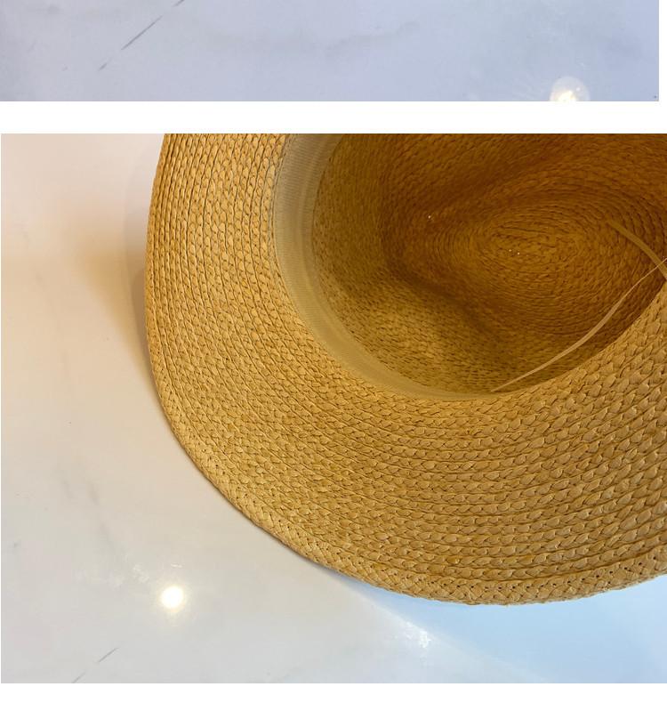 Sombrero de Paja Sombrero de Mujer Verano Jazz Sombrero de Ala Plana Vacaciones en la Playa Protección Solar Sombrero de Sol con Borde Rafia Imitación Nuevo Estilo