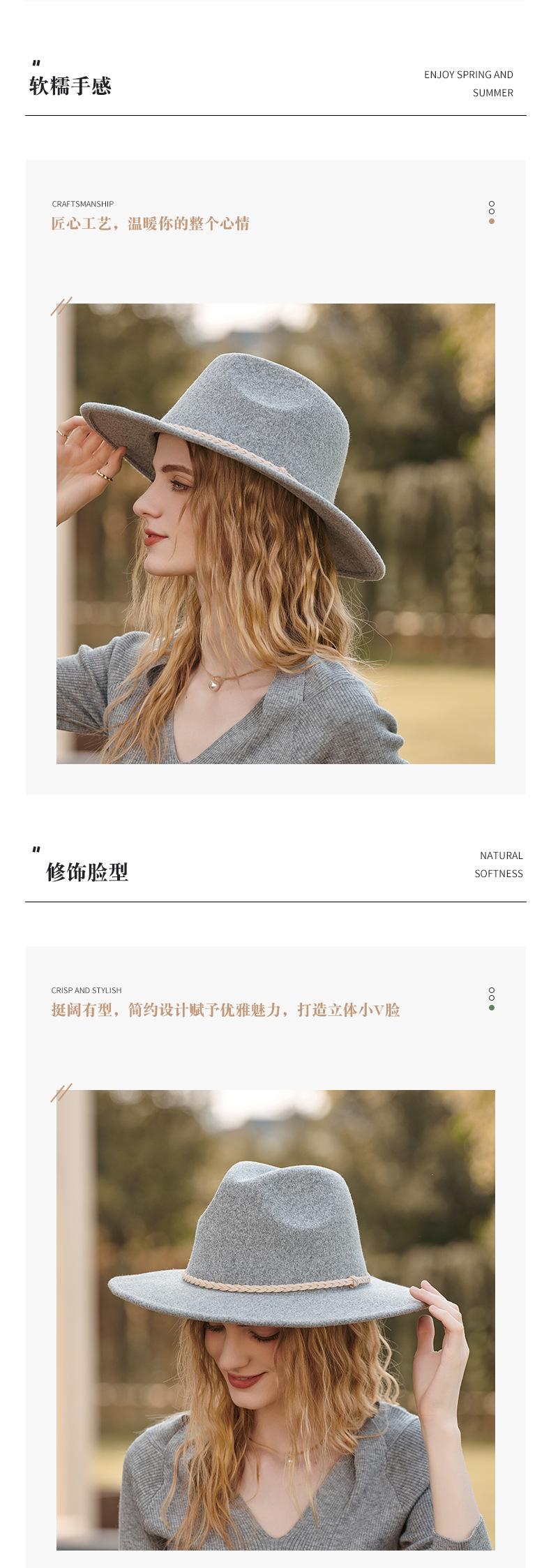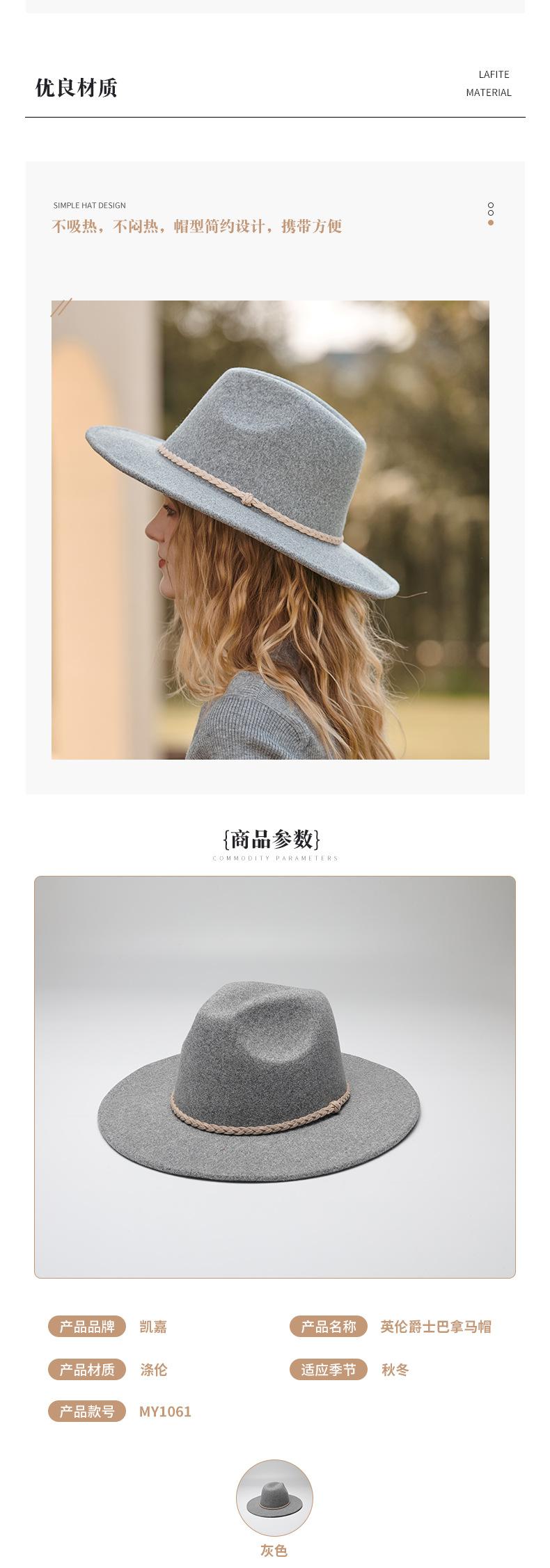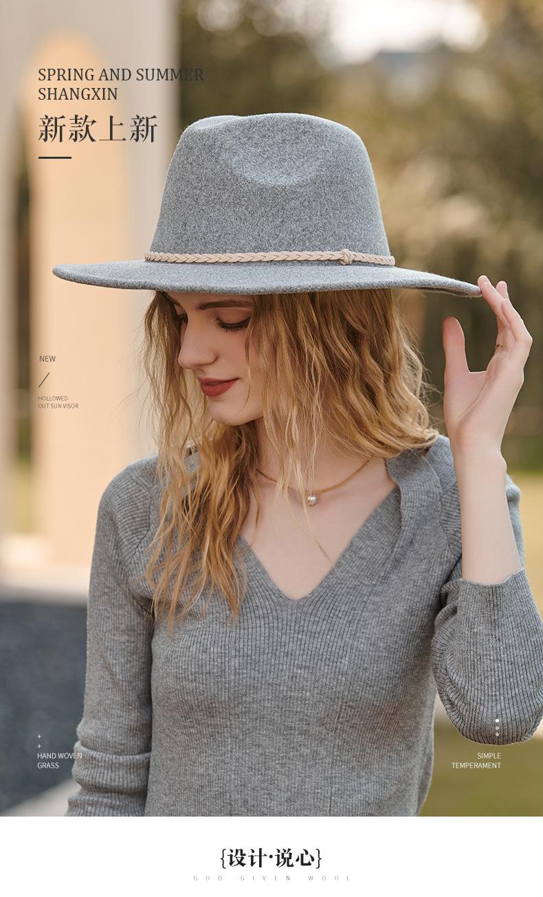 Sombrero Panamá de Jazz Británico 2024 Gris Decoración de Nudo Sombrero de Lana Ala Ancha Otoño e Invierno Sombrero Elegante