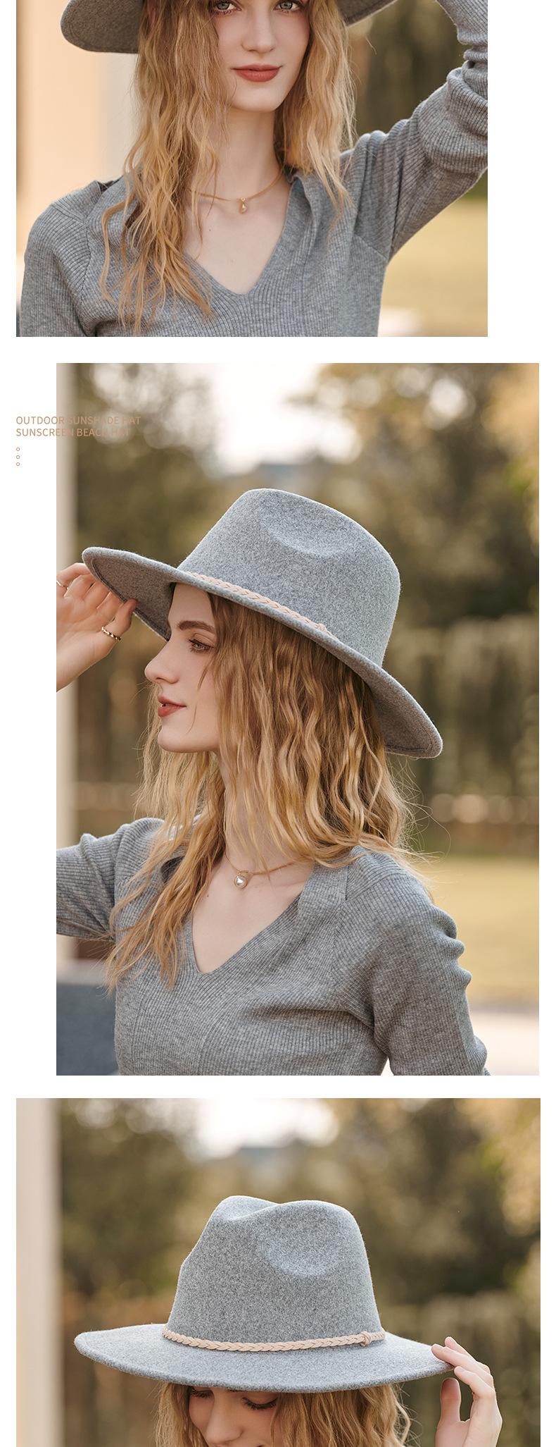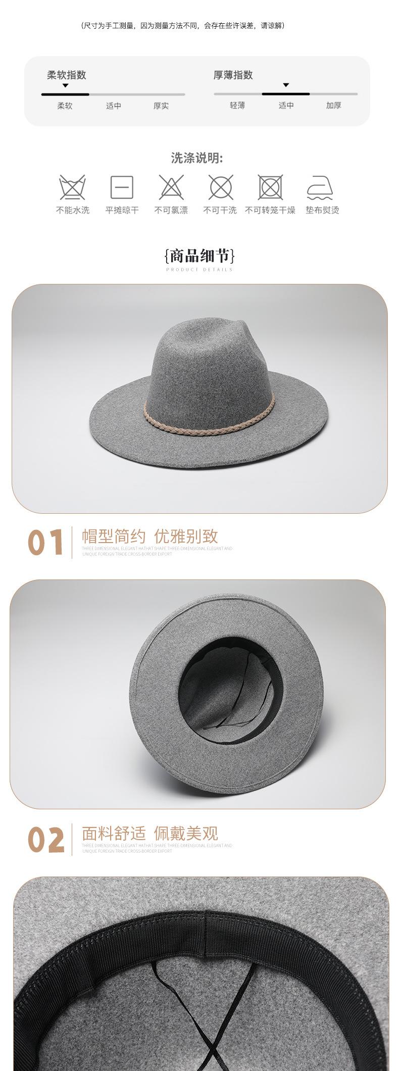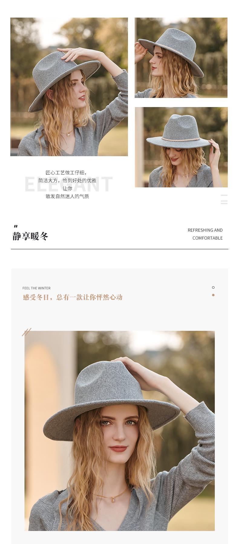 Sombrero Panamá de Jazz Británico 2024 Gris Decoración de Nudo Sombrero de Lana Ala Ancha Otoño e Invierno Sombrero Elegante