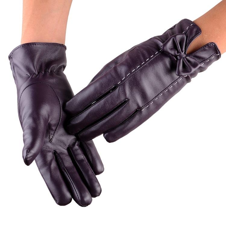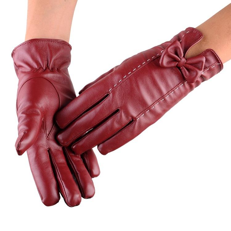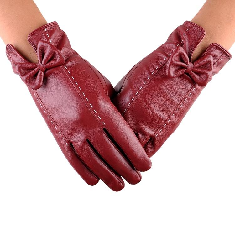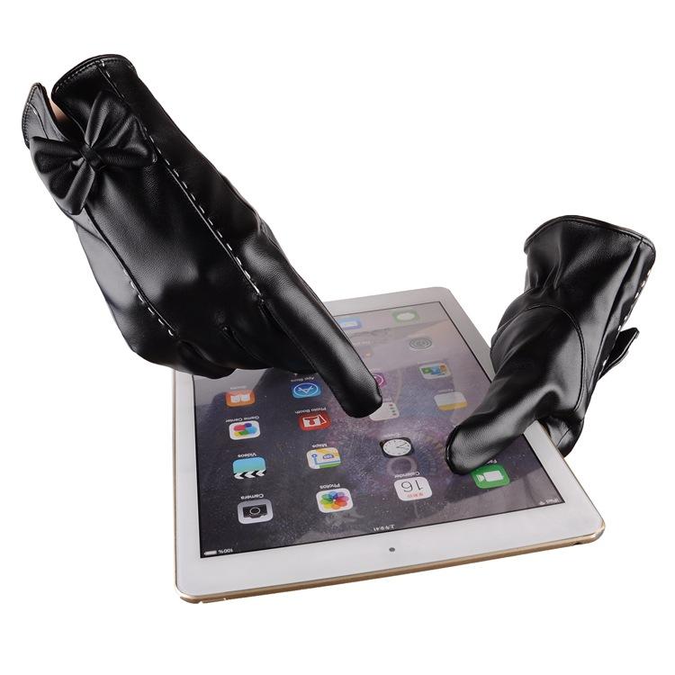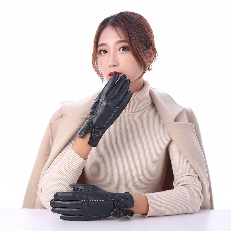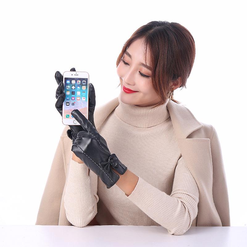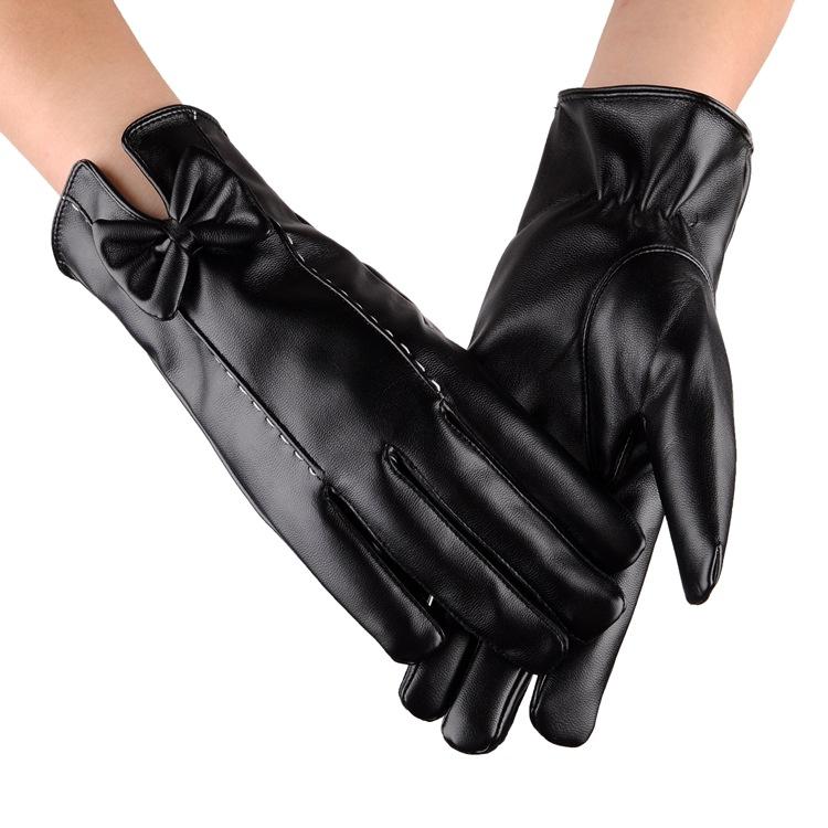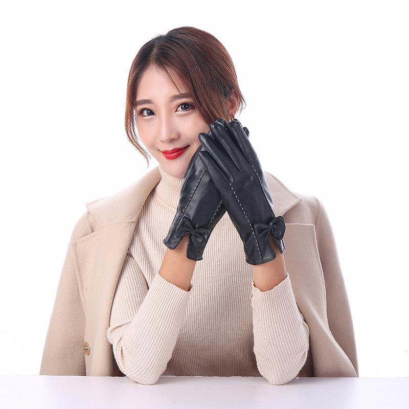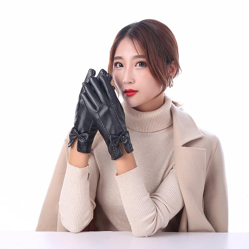 Guantes cálidos de invierno para mujer con lazo de piel sintética PU, forro polar, para conducir, montar, pantalla táctil, a prueba de viento, impermeables