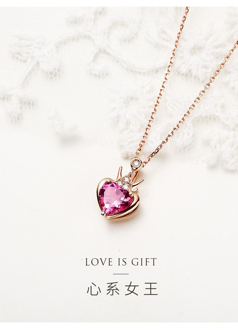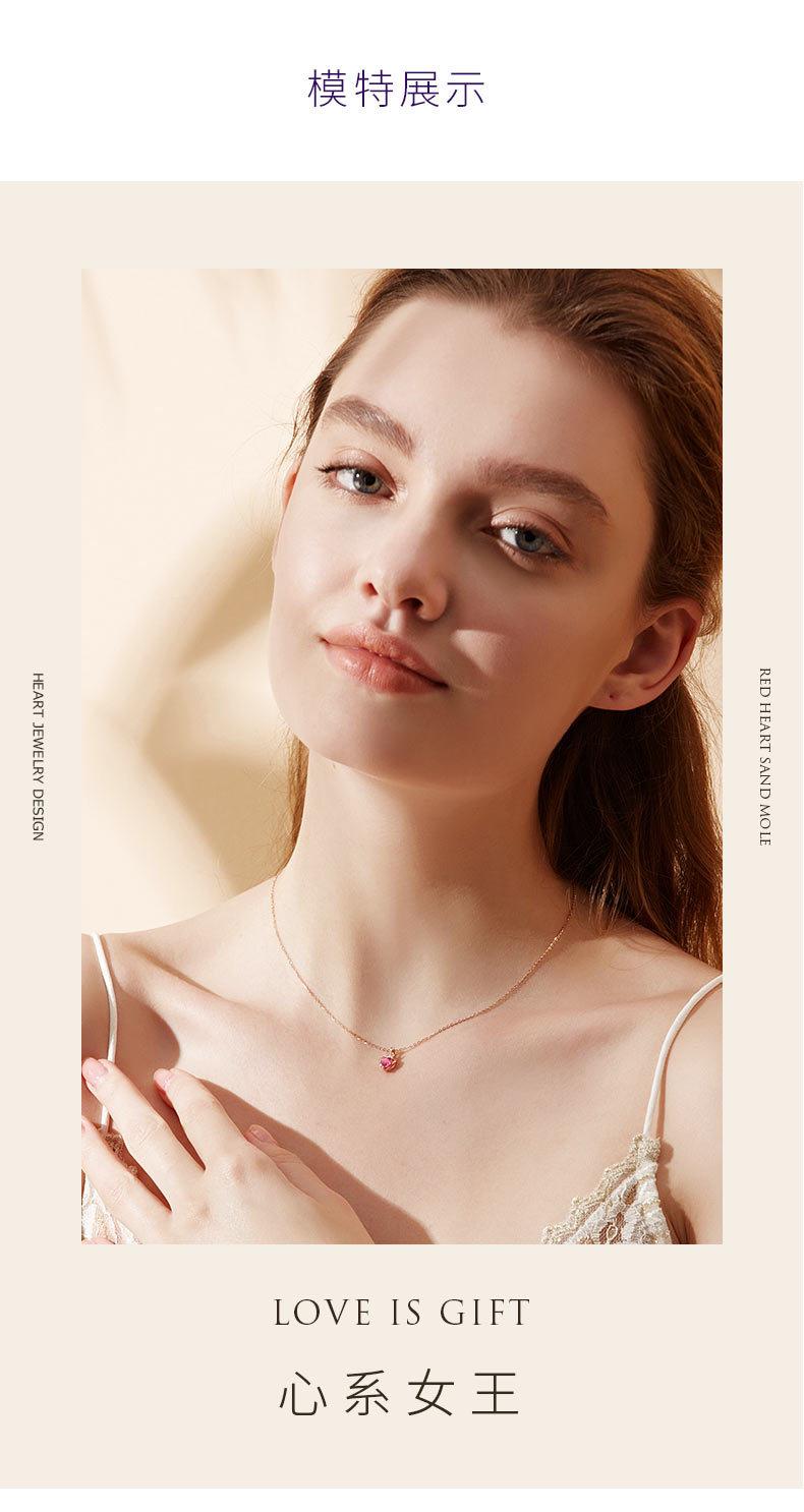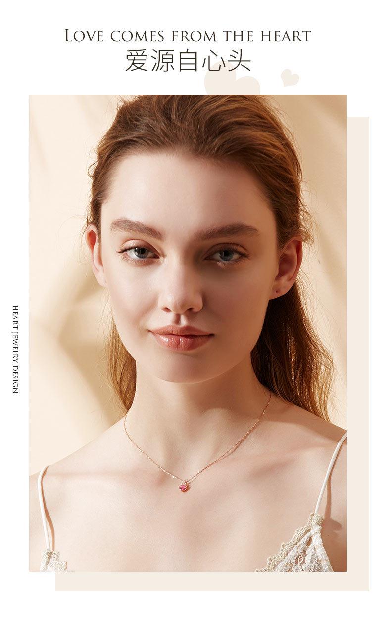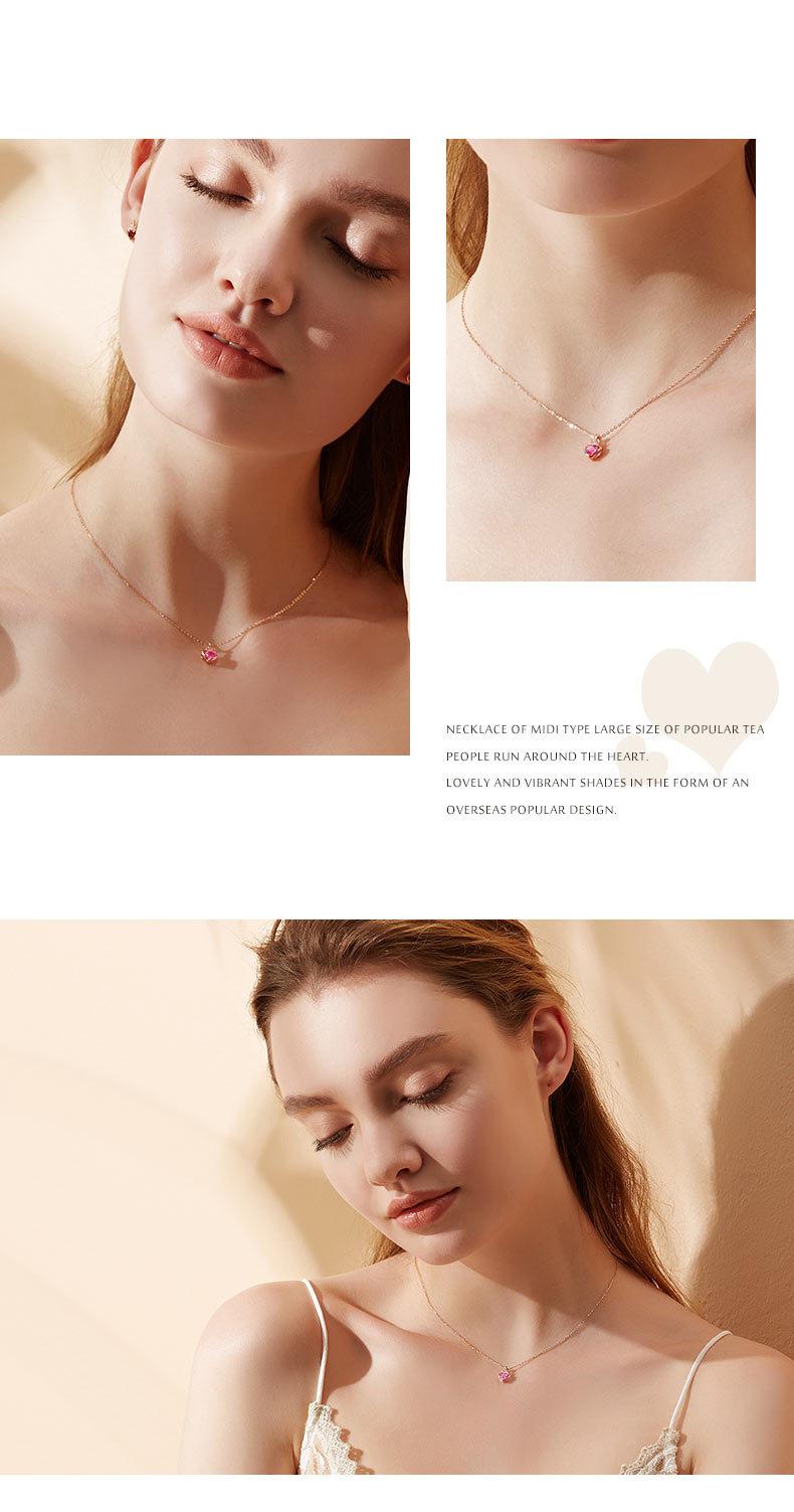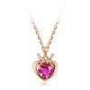 Nuevo Exquisito Elegante Corona Flor de Durazno Corazón Simulación Color Turmalina Roja Colgante Collar Cadena Clavícula Elegante para Mujer