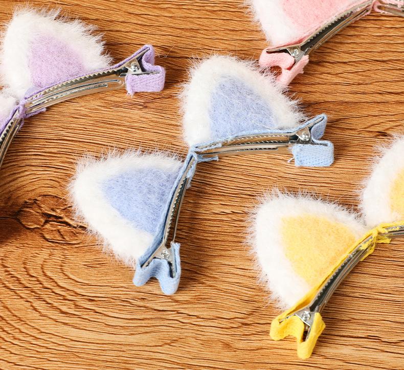 Otoño e invierno Nuevas orejas de gato clip de dibujos animados horquilla de peluche Versión coreana del tocado de princesa pequeña Horquilla de accesorios para el cabello para niños famosos en Internet