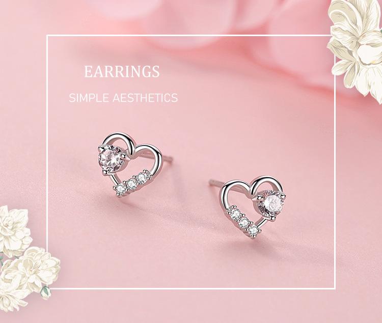Pendientes de plata de ley S925 con diamantes brillantes y diseño de corazón para mujer, frescos y exquisitos, con un toque de creatividad y sencillez.