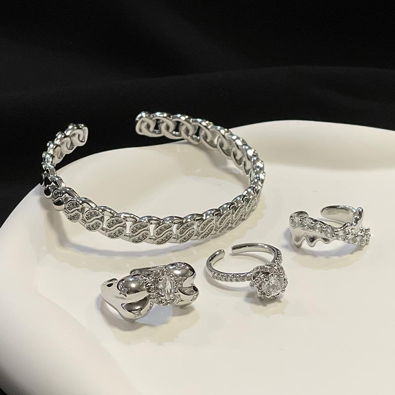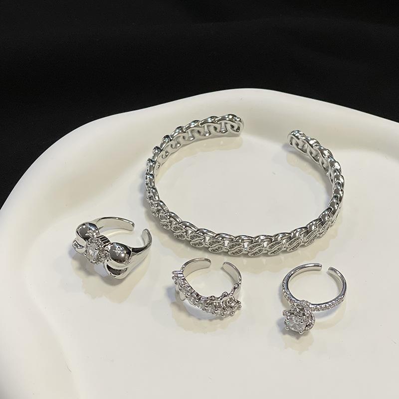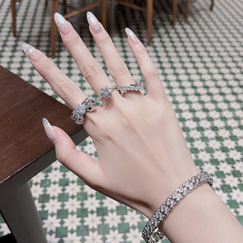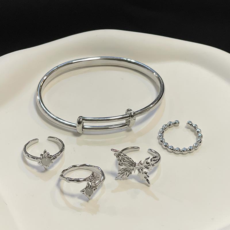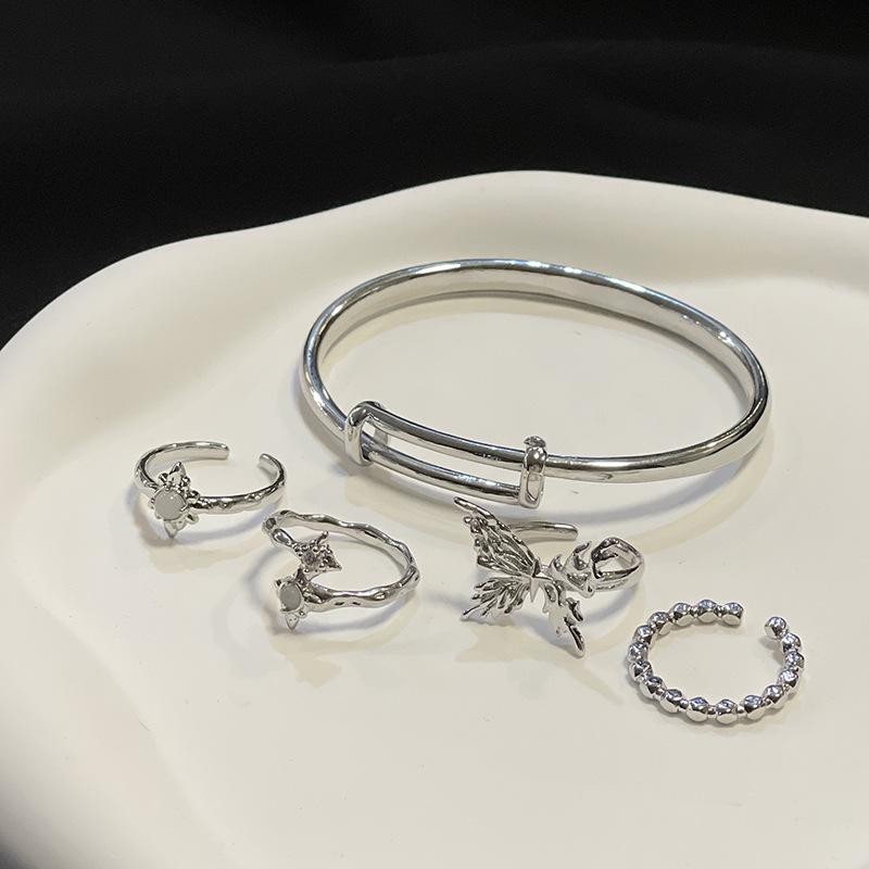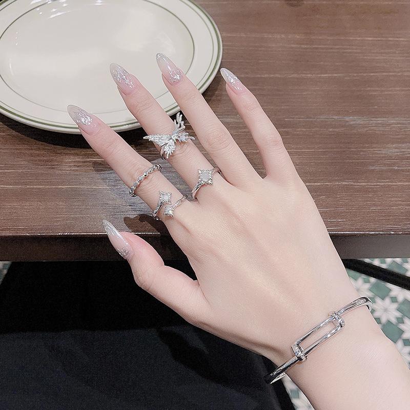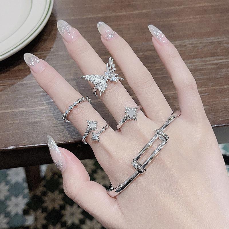 [Estilo Simple] Anillo Abierto Irregular de Piedra Lunar de Estrella, Mariposa y Zircón para Mujer, Anillo Casual para Dedo Índice