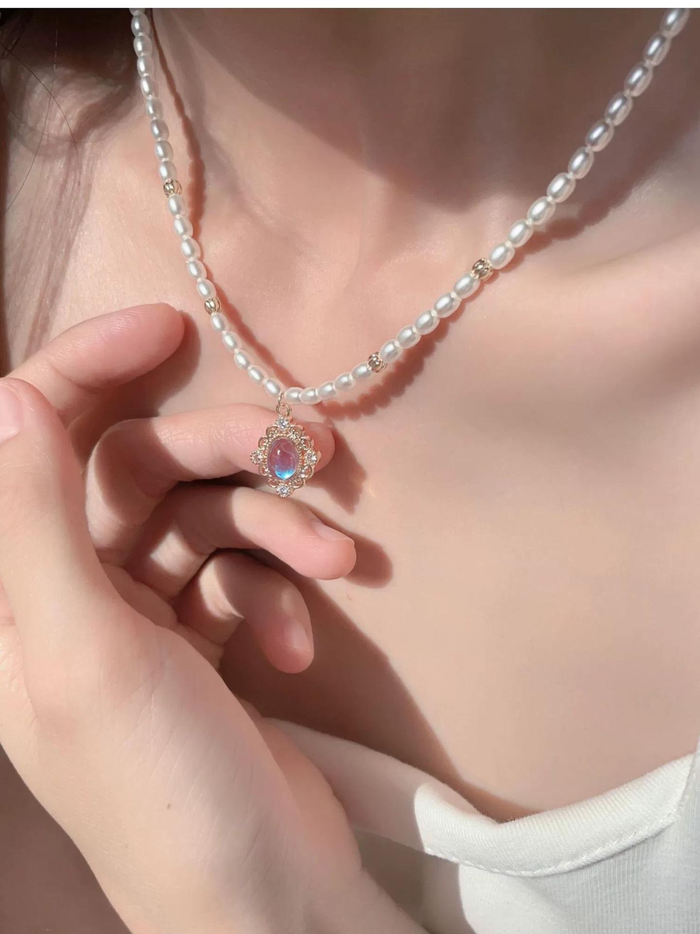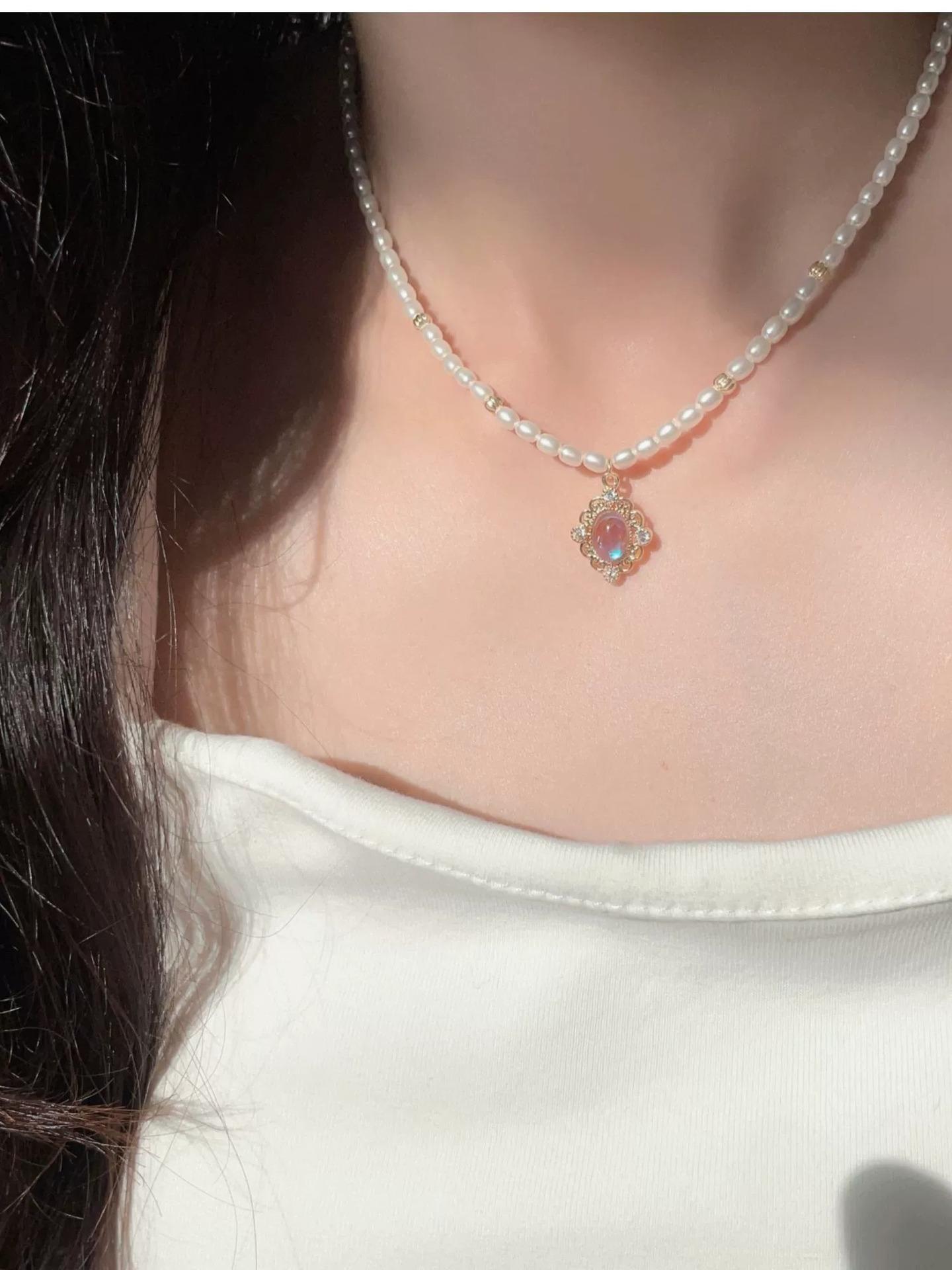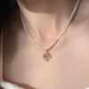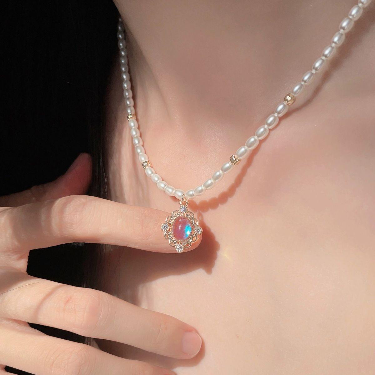 Collar con colgante de perlas y diamantes estilo francés retro de lujo ligero, diseño de nicho para mujer, exquisita joyería combinable al por mayor