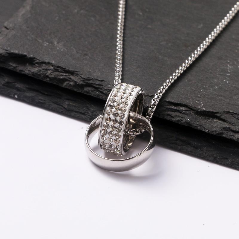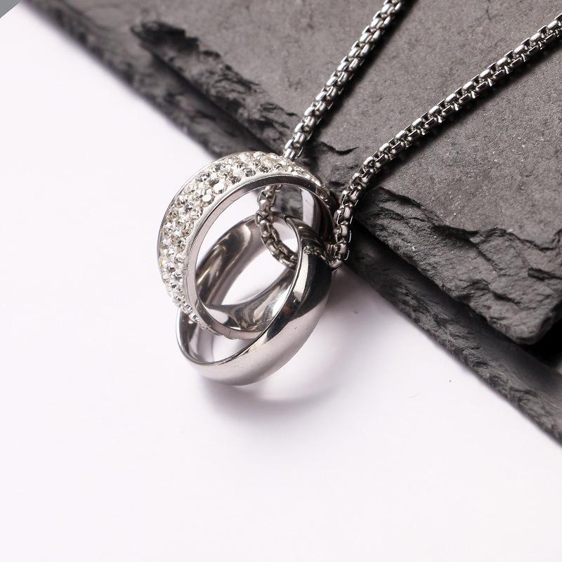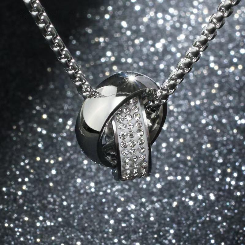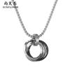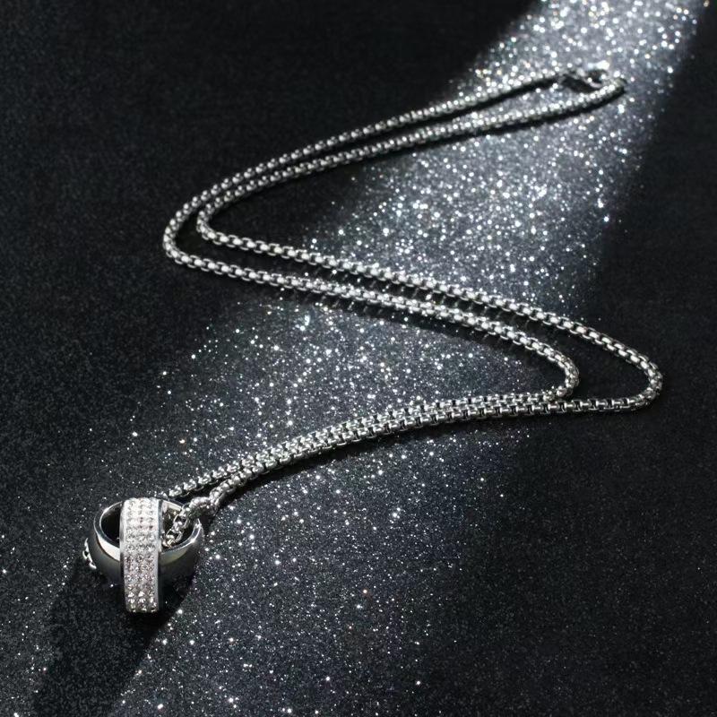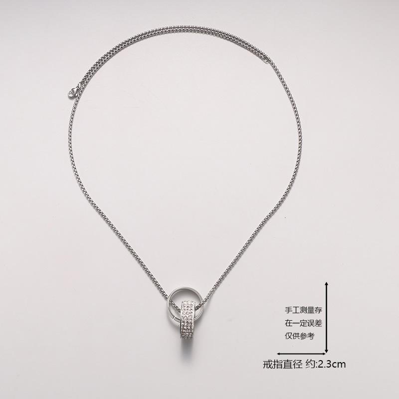 Collar de doble anillo de acero de titanio de moda con diamantes completos hip-hop ins moderno personalidad para hombre colgante de acero inoxidable cadena para suéter fabricantes venta al por mayor