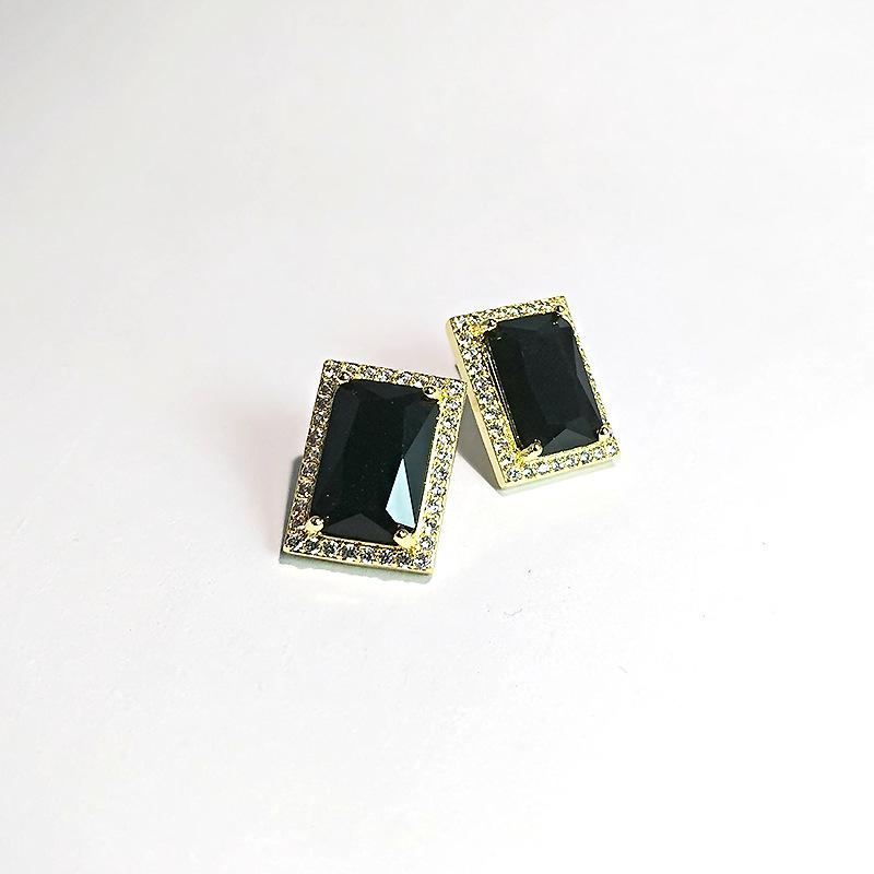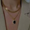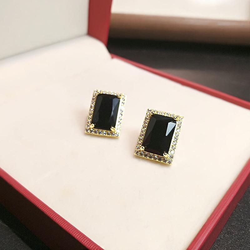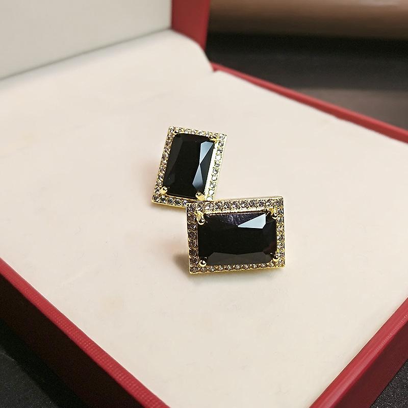 Conjunto de collar con gemas negras retro transfronterizas, pendientes de piedra negra cuadrada con diamantes metálicos de lujo ligeros europeos y americanos, regalo de cumpleaños