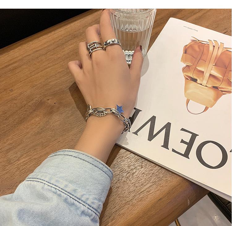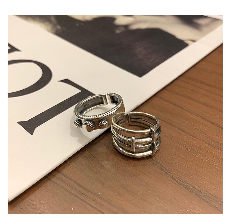 Anillo Retro de Plata S925 Estilo Coreano para Mujer Ins Trendy Diseño Nicho Europeo y Americano Personalizado Estudiante Combinable Anillo Abierto para Dedo