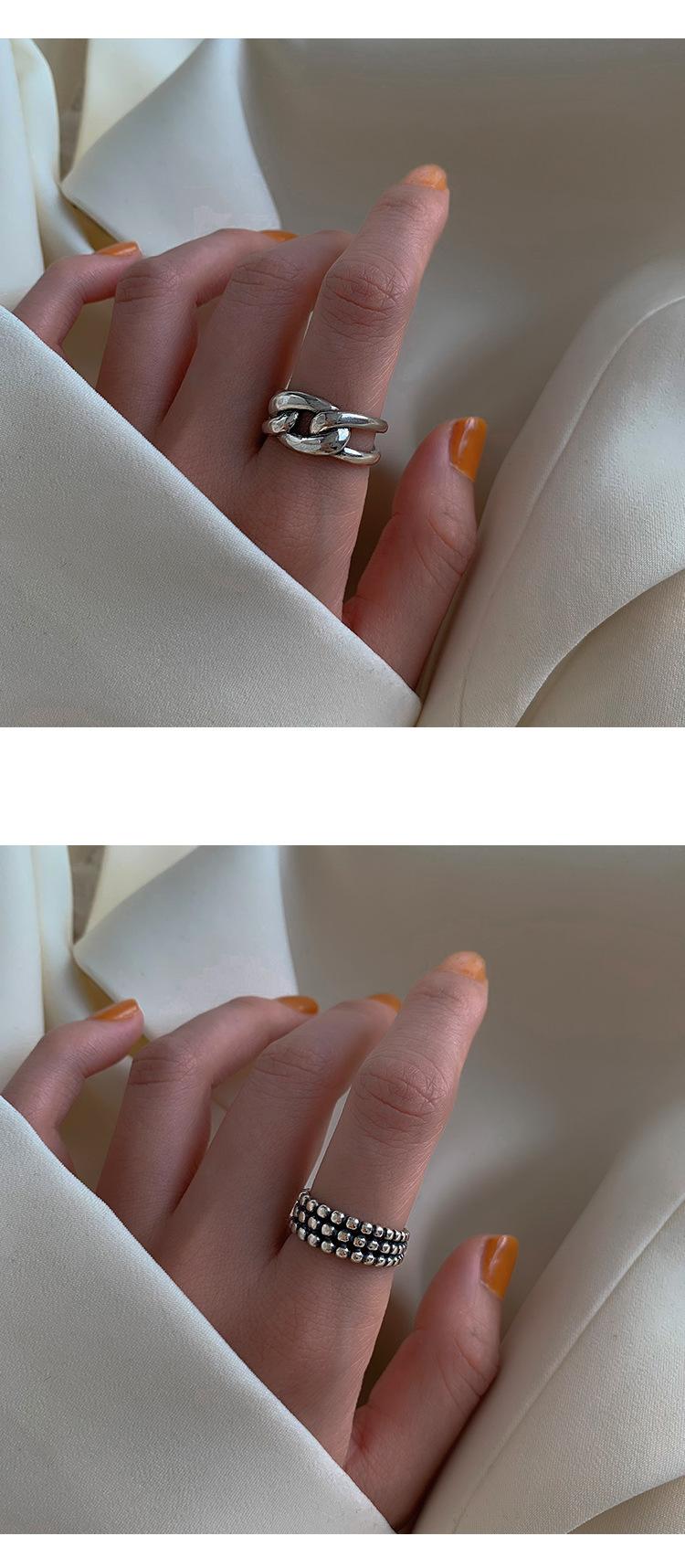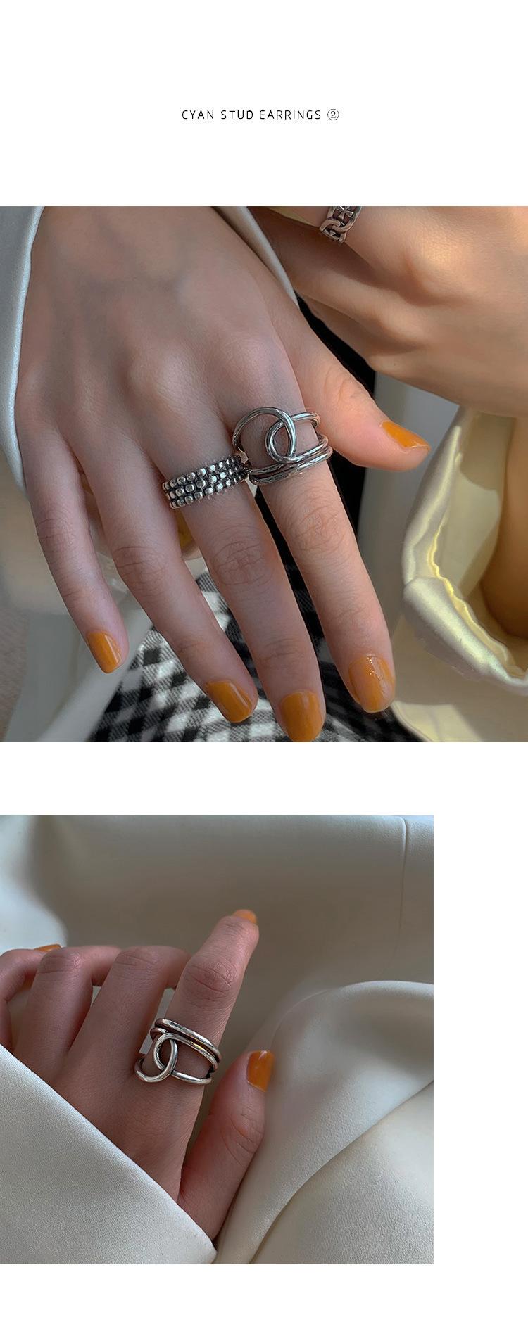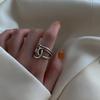 Anillo Hueco de Cruz de Plata S925 Estilo Coreano con Personalidad para Mujer Moda Vintage Línea Envolvente Cruz Apertura Anillo de Dedo
