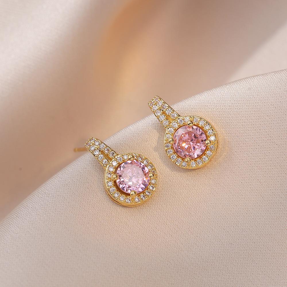 Aretes para Mujer Estilo Japonés y Coreano Moda Nuevos Rosados Geométricos Elegantes Zircón Diseño Nicho Elegantes