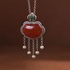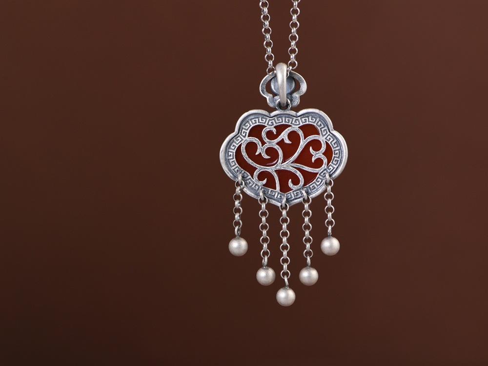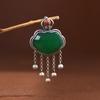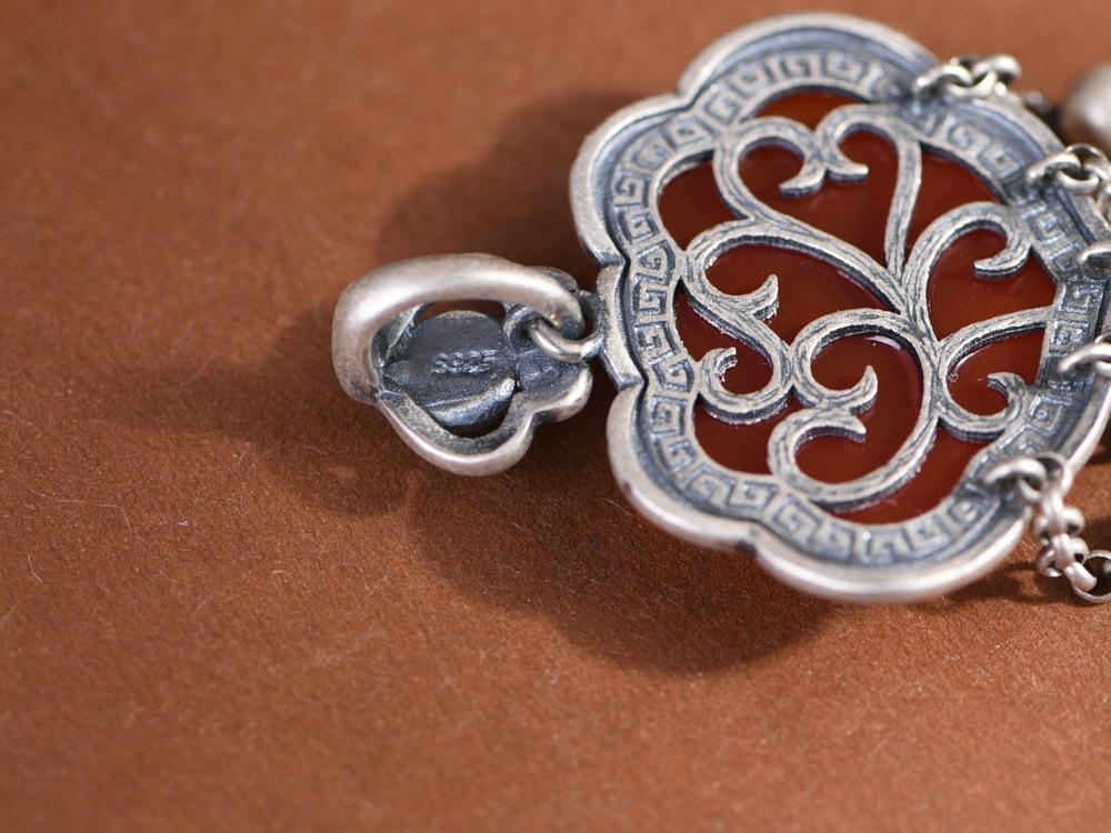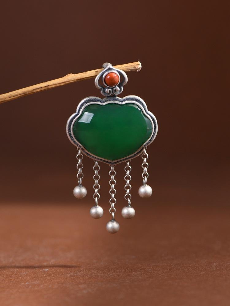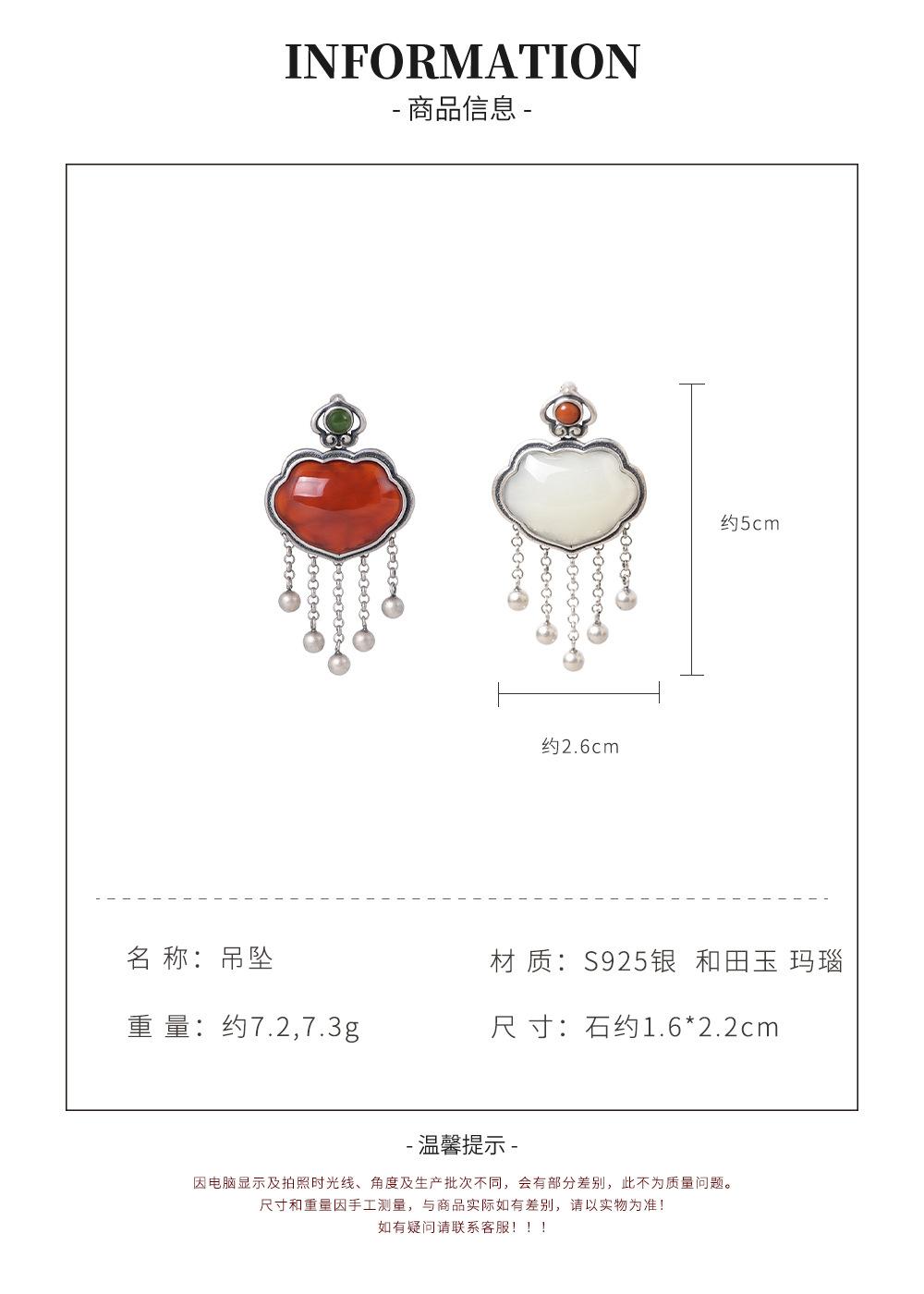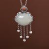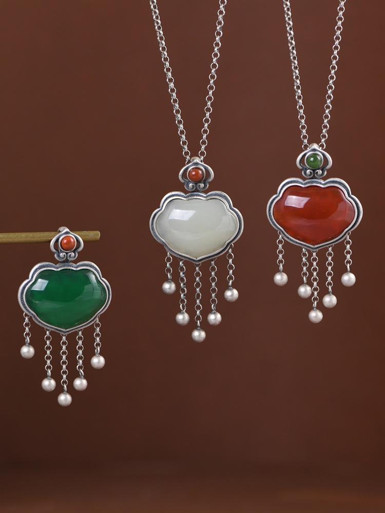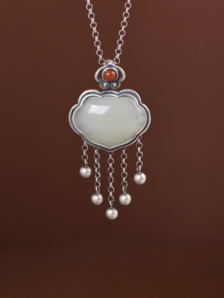 Colgante de plata de ley 925 con forma de ágata de jade hetiano y candado de plata Ruyi para mujer, elegante y antiguo, para collar y suéter.