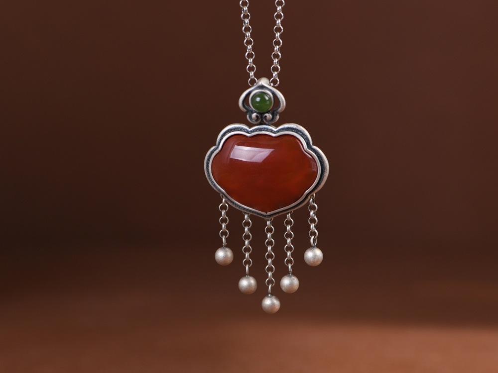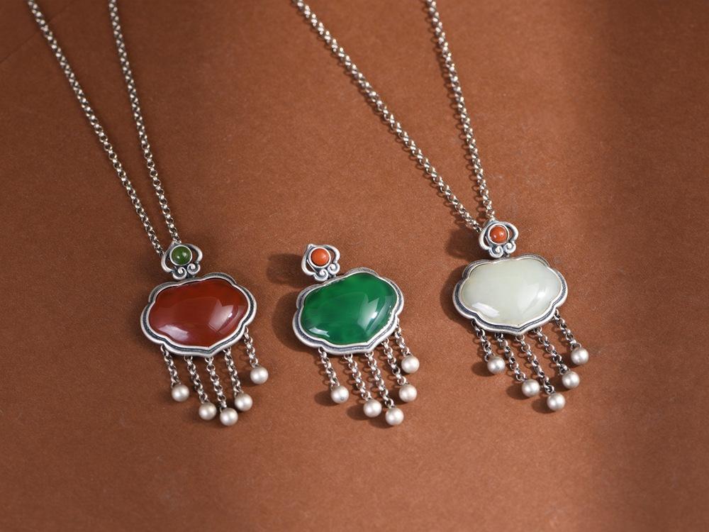 Hetian jade pendant, Red agate pendant, Green agate pendant