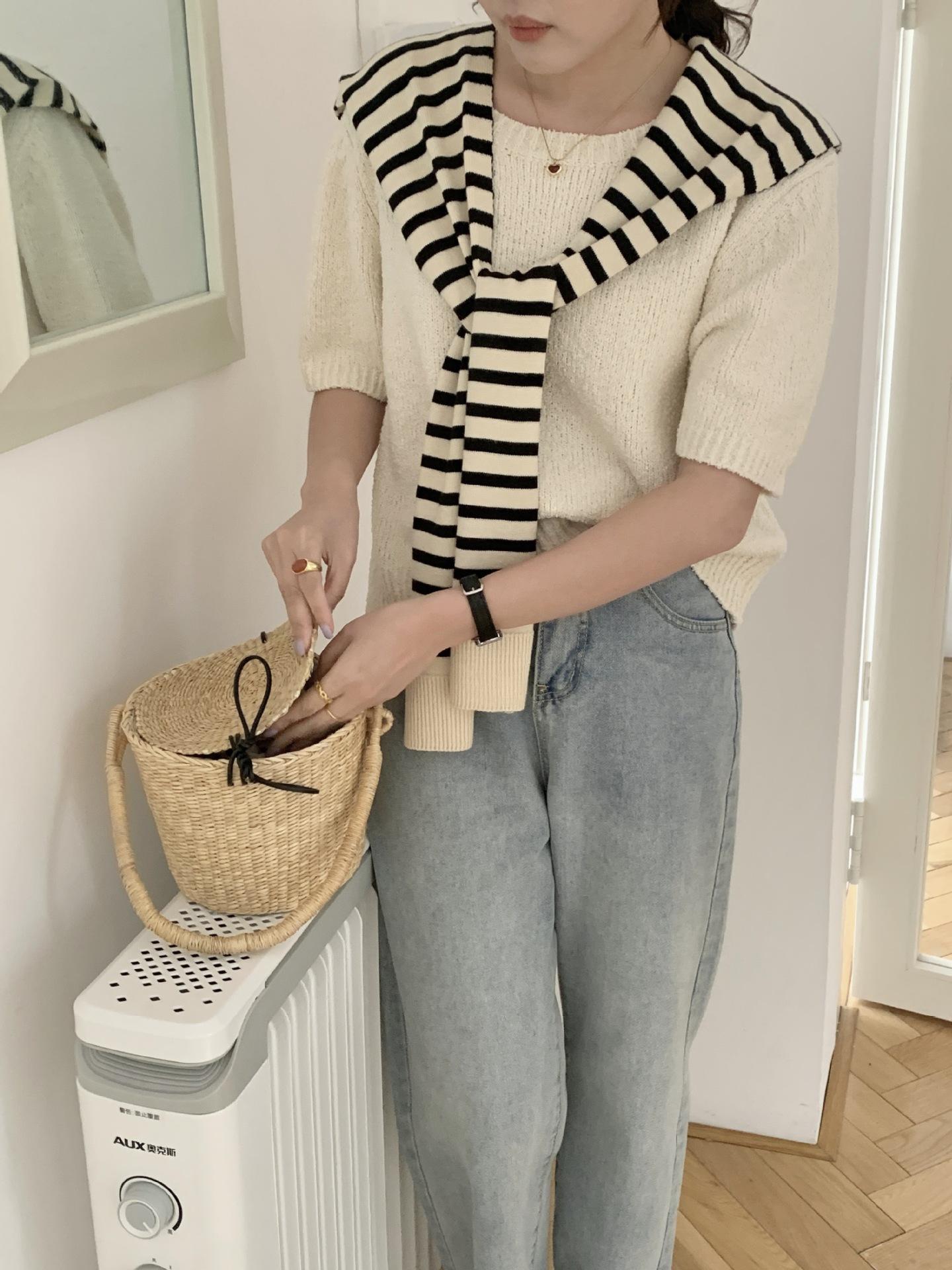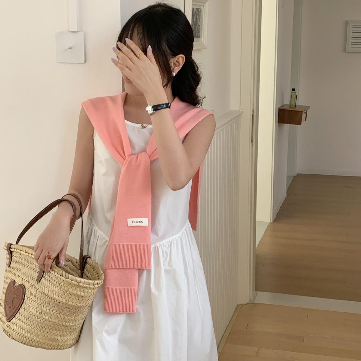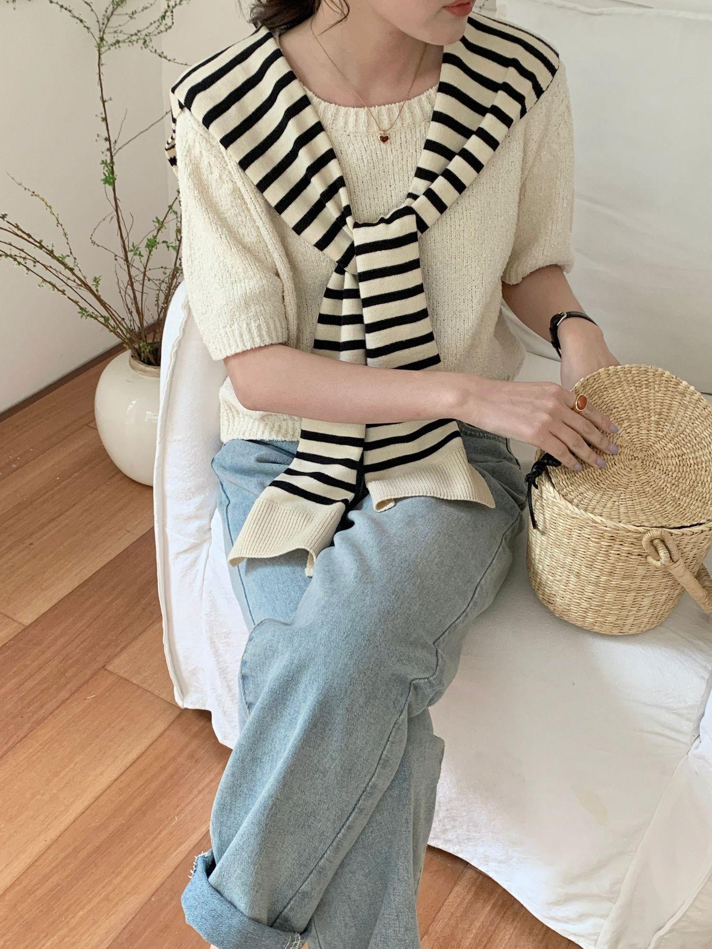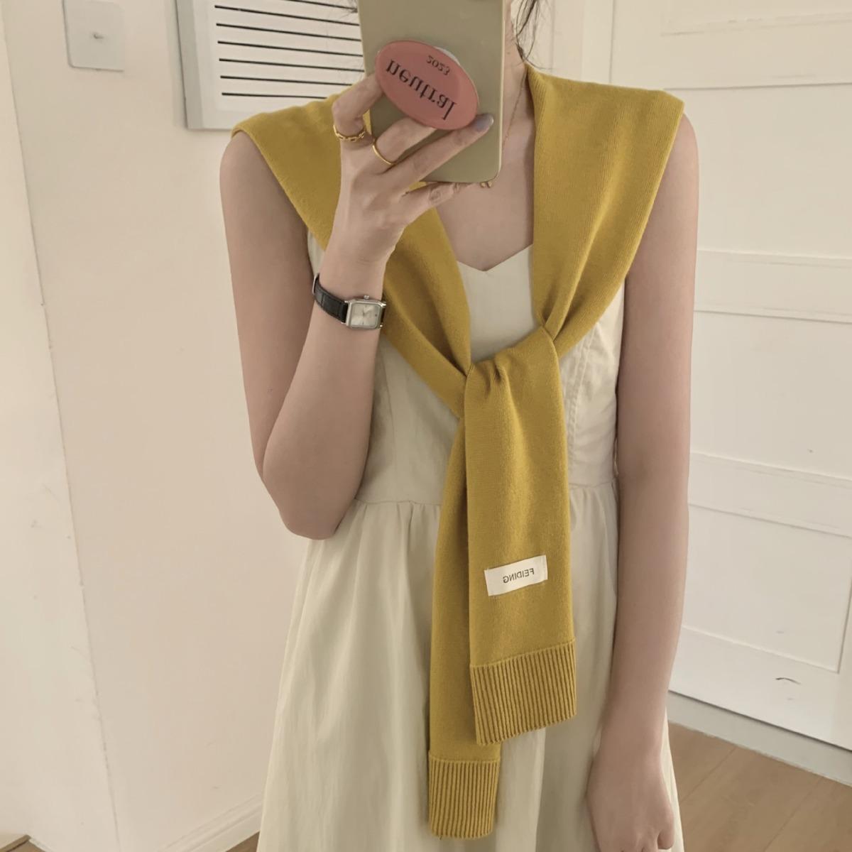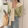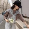 Chal de Primavera y Verano Plano Estilo Coreano para Mujer Protector Solar Rayado Exterior Tejido Combinación de Colores Versátil Moderno Pequeño Cuadrado Hombro