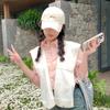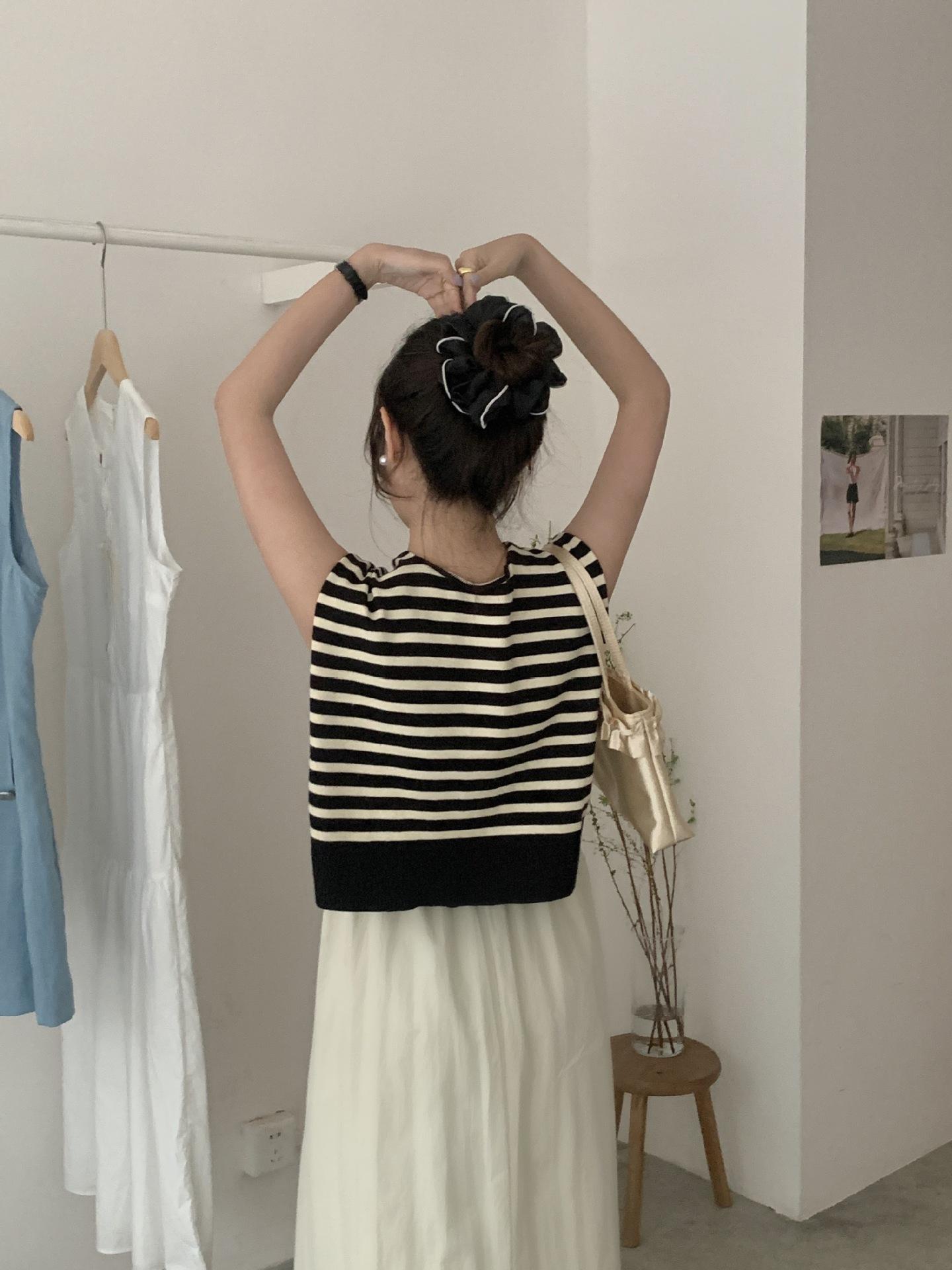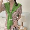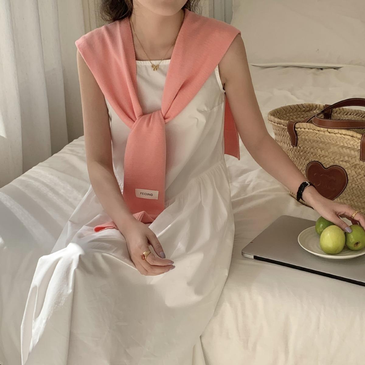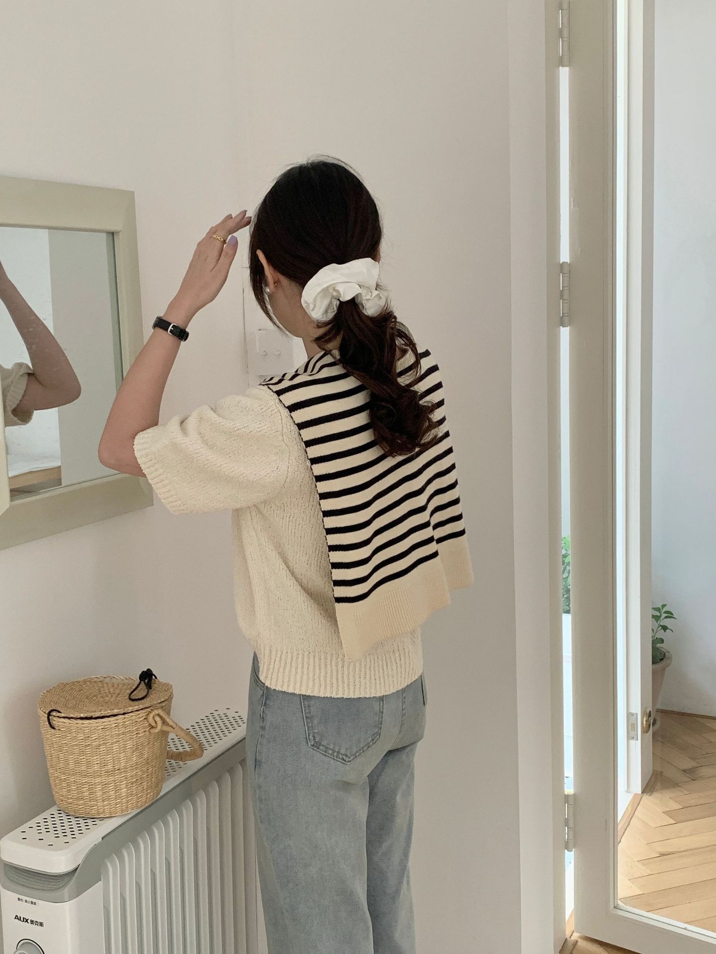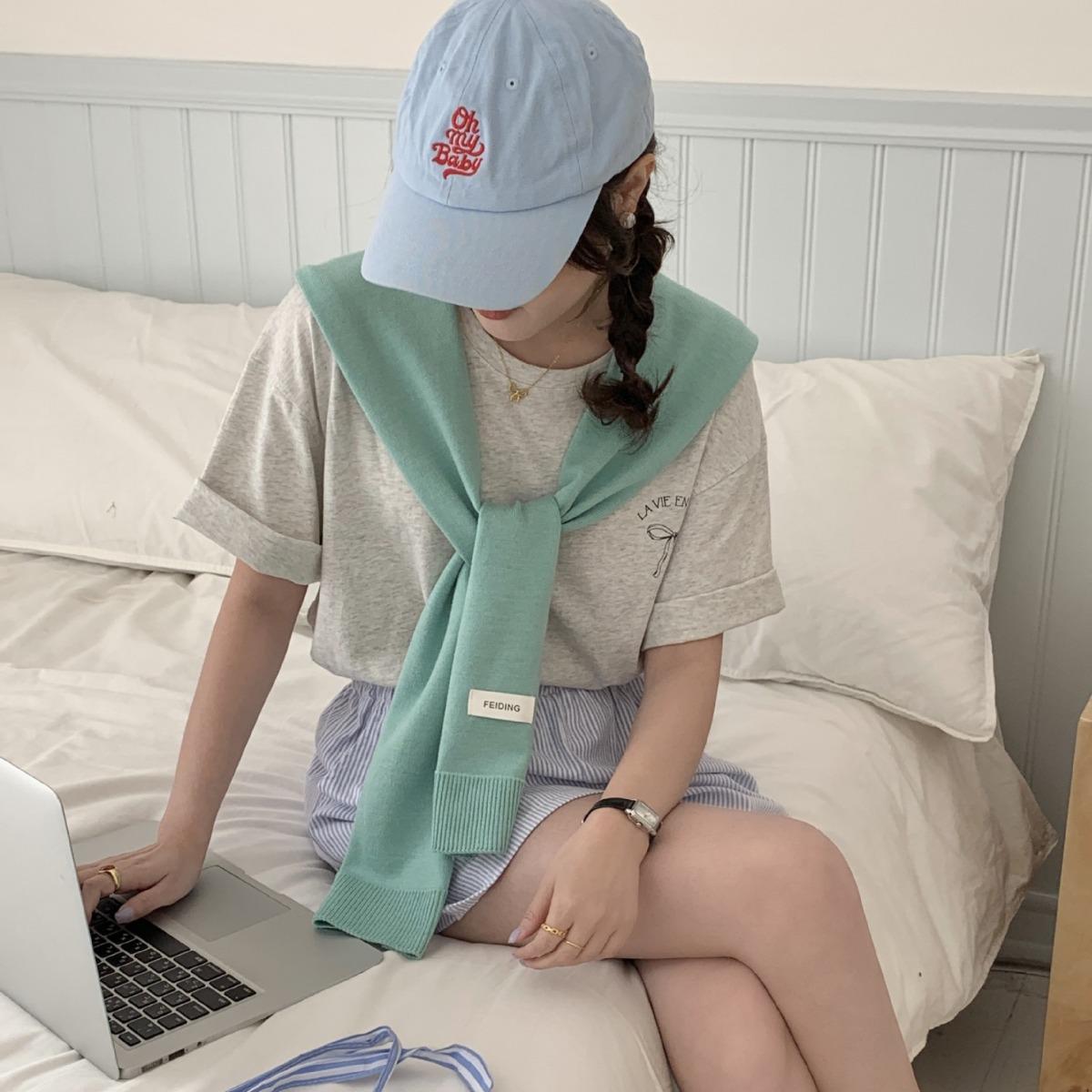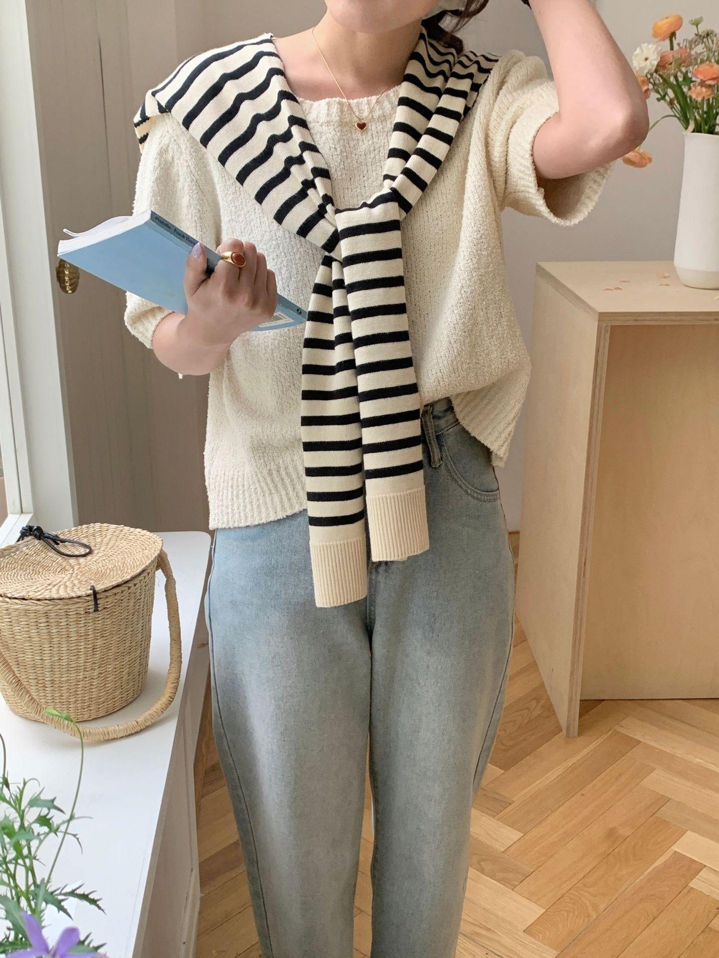 Chal de Primavera y Verano Plano Estilo Coreano para Mujer Protector Solar Rayado Exterior Tejido Combinación de Colores Versátil Moderno Pequeño Cuadrado Hombro
