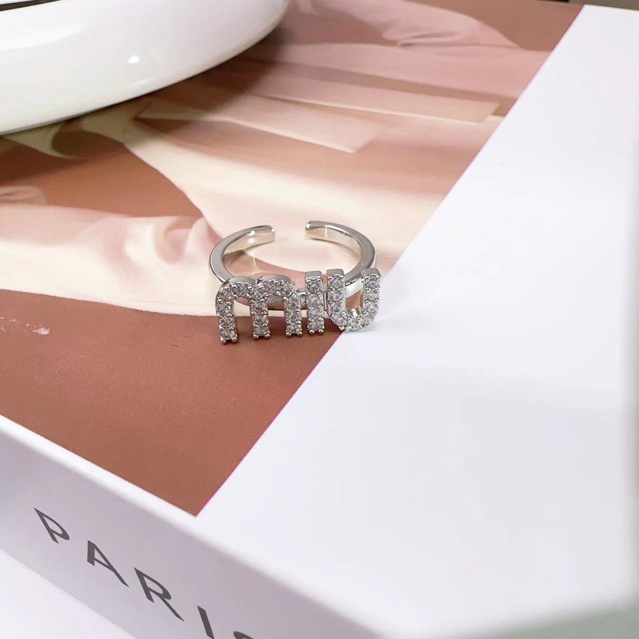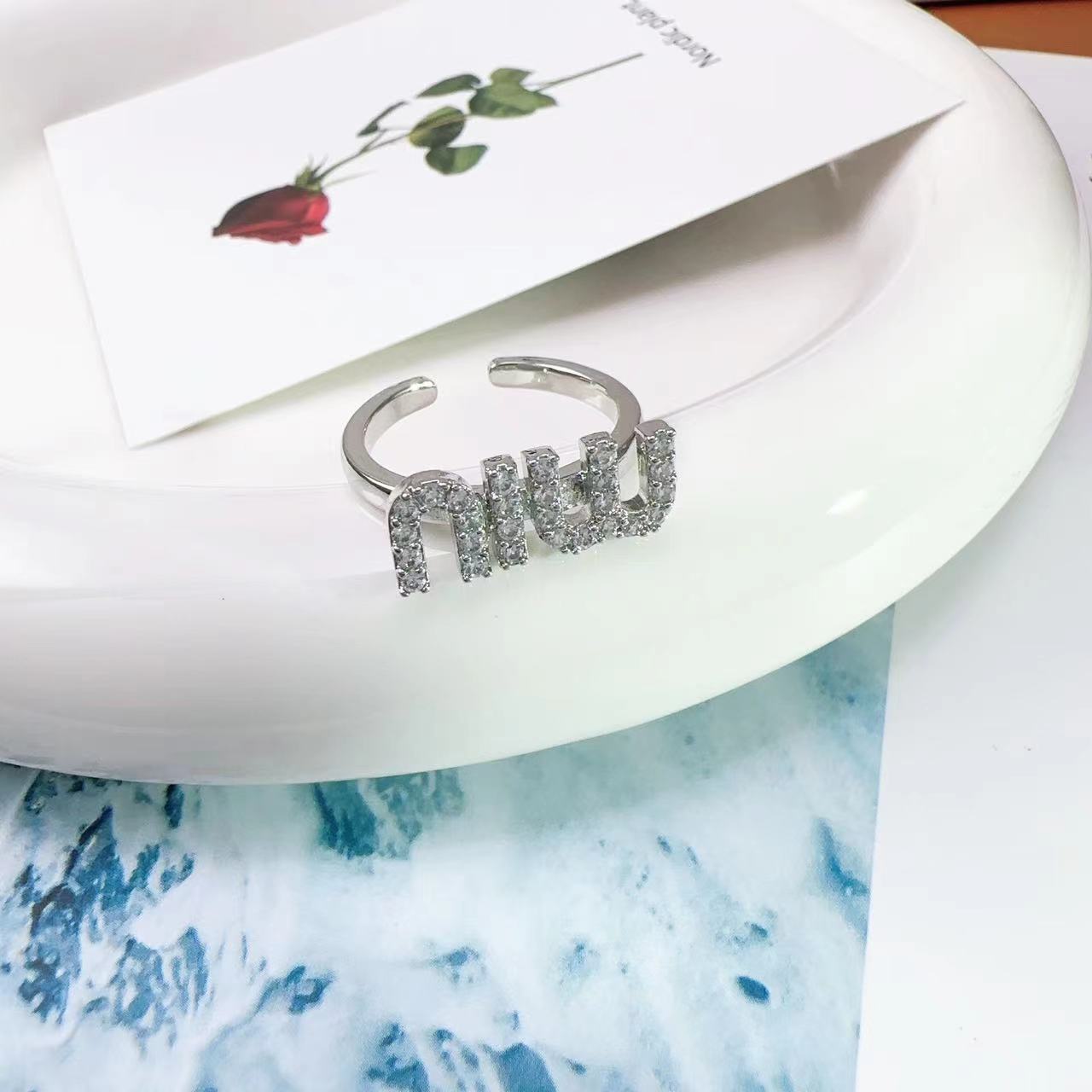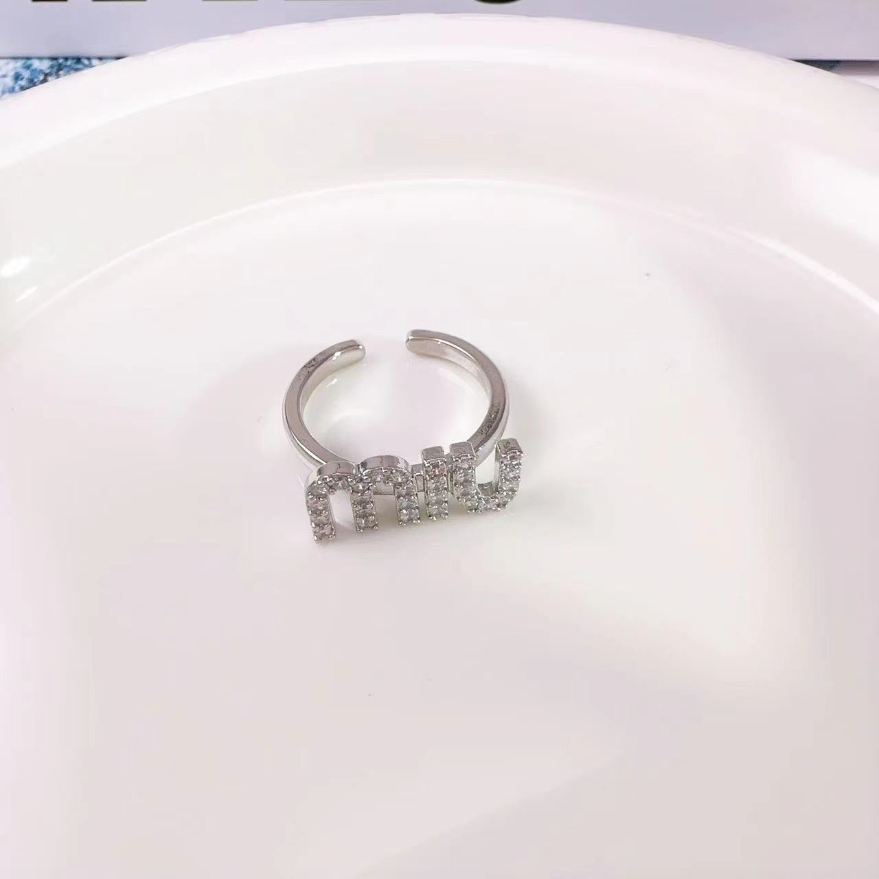Anillo de letra miu de personalidad simple de Cristal Diamante anillo de personalidad de temperamento de moda de lujo ligero de alta gama anillo abierto