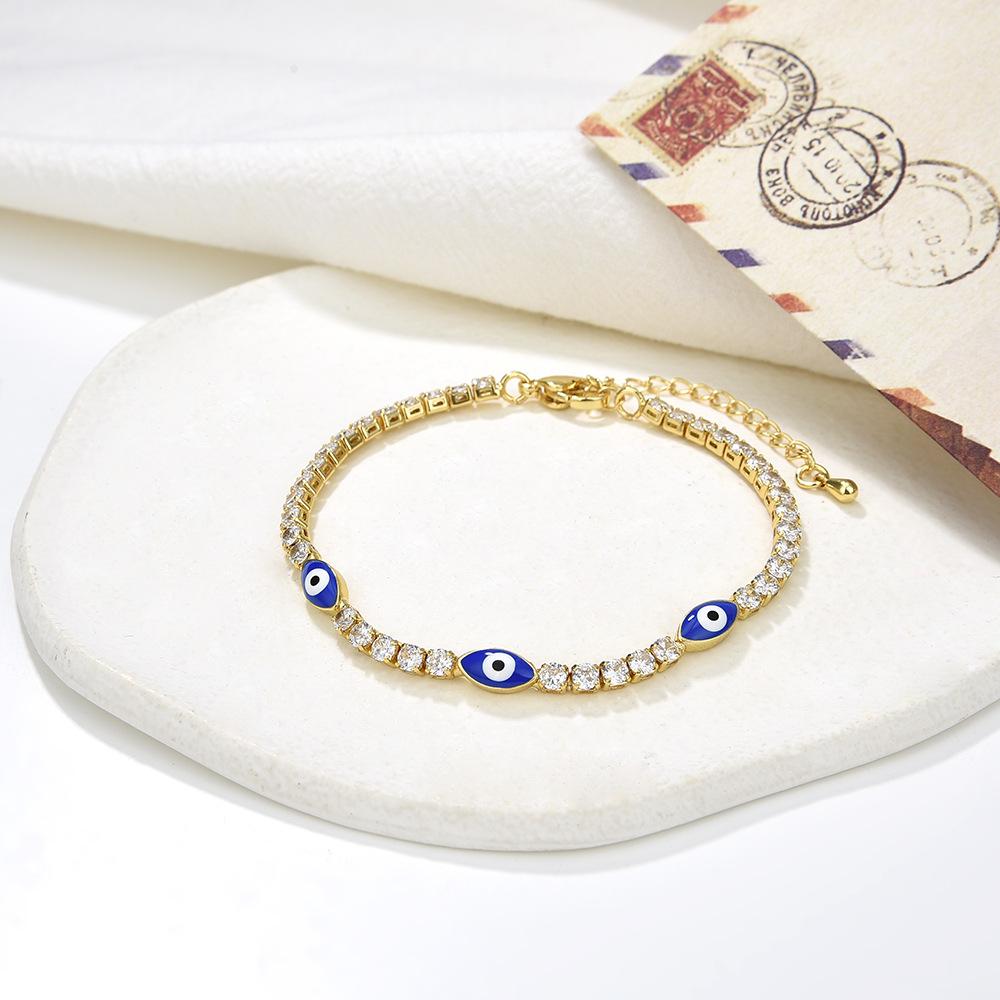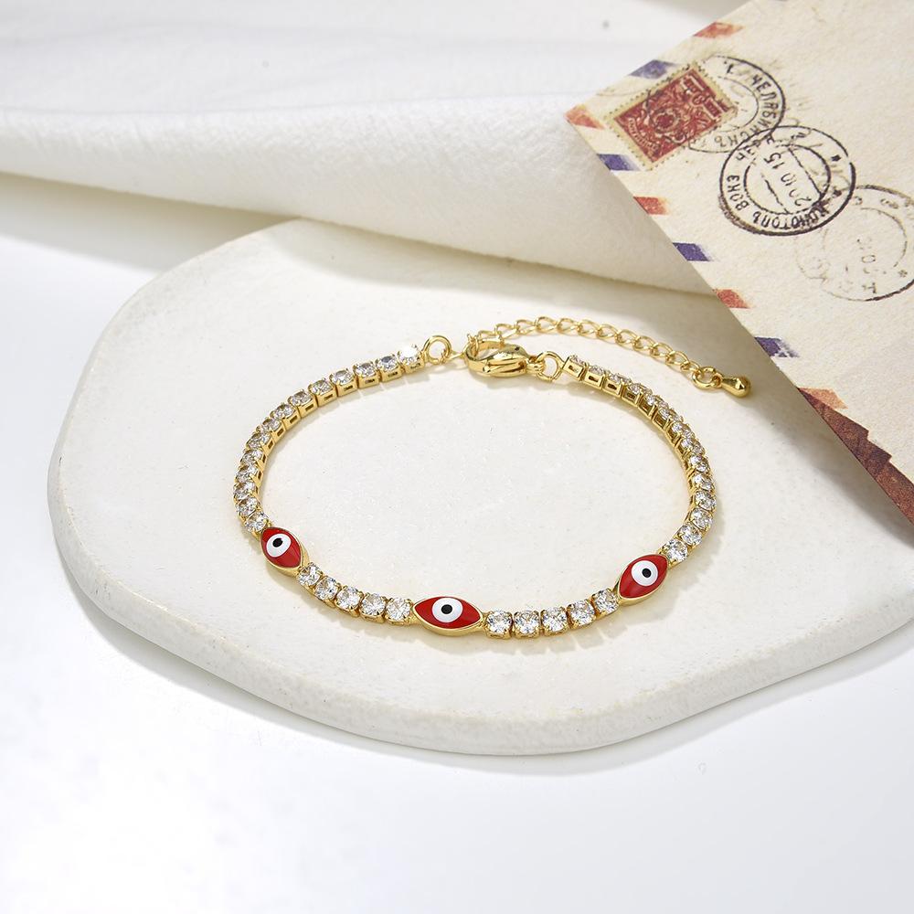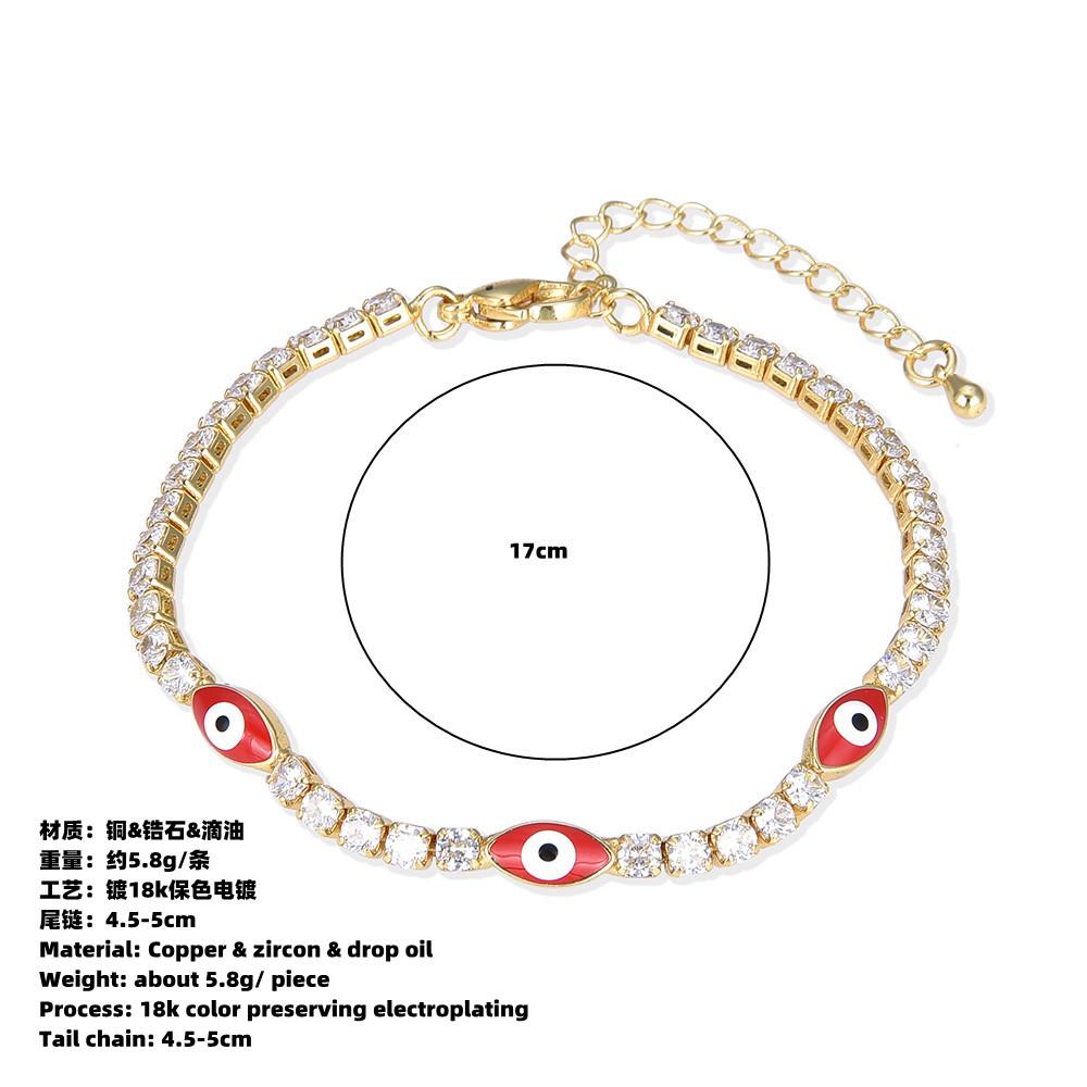 Pulsera de cobre popular europeo y americano con circonitas incrustadas, prisma geométrico de color gota de aceite, ojo turco del diablo para hombres y mujeres, joyería