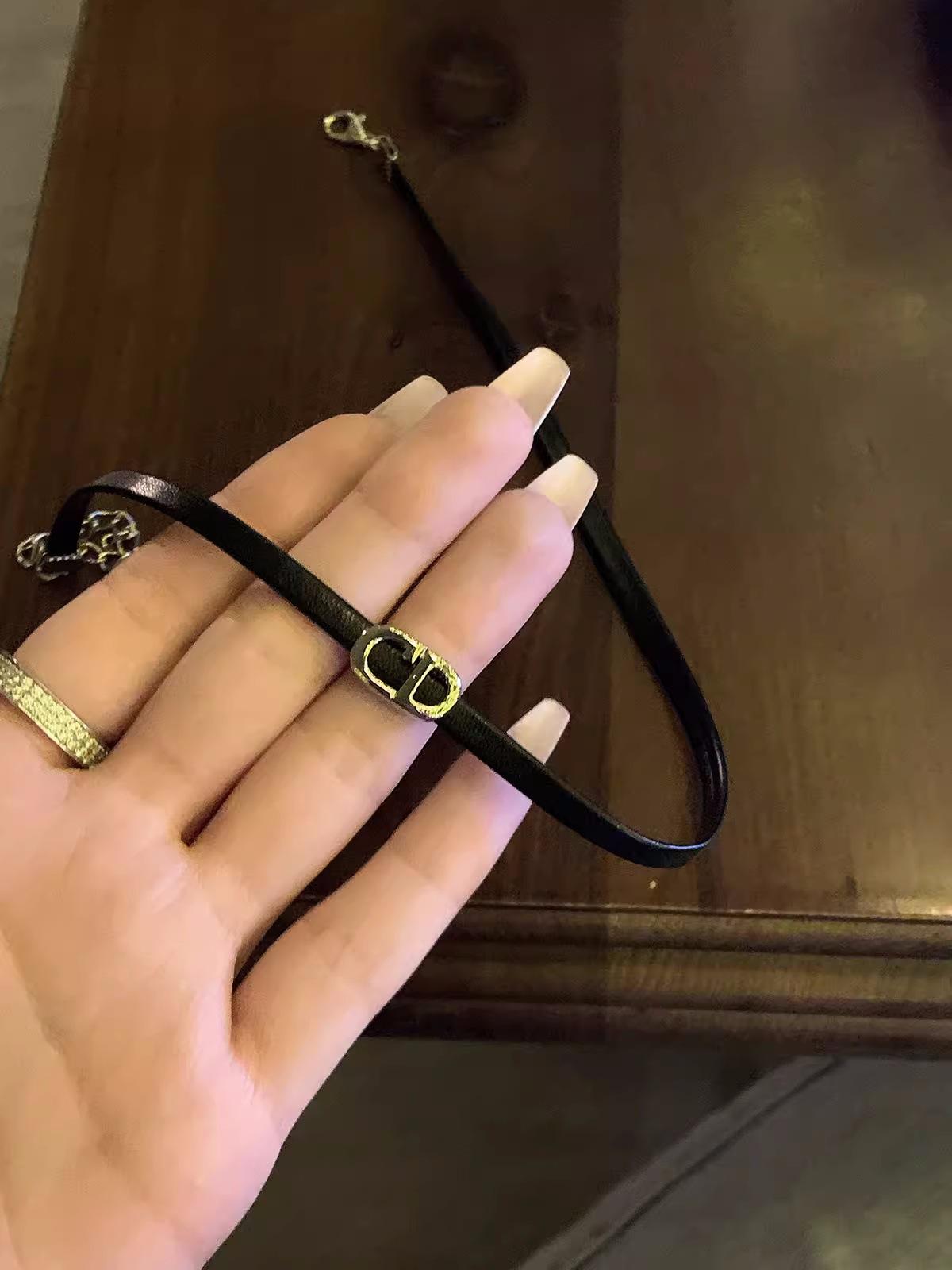 Collar CD de Letra Negra Collar Choker para Niñas Cadena Clavícula Accesorios de Collar de Alta Gama