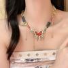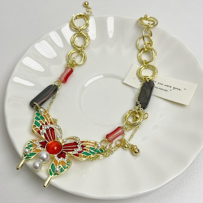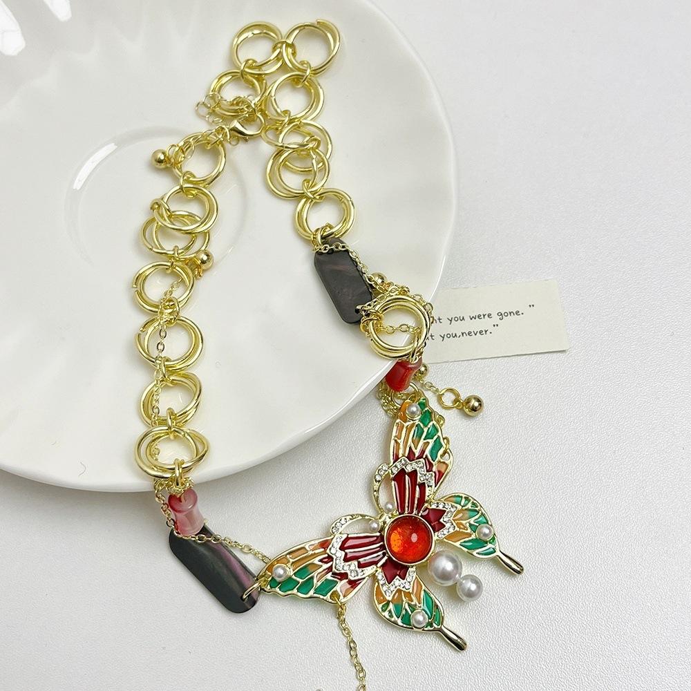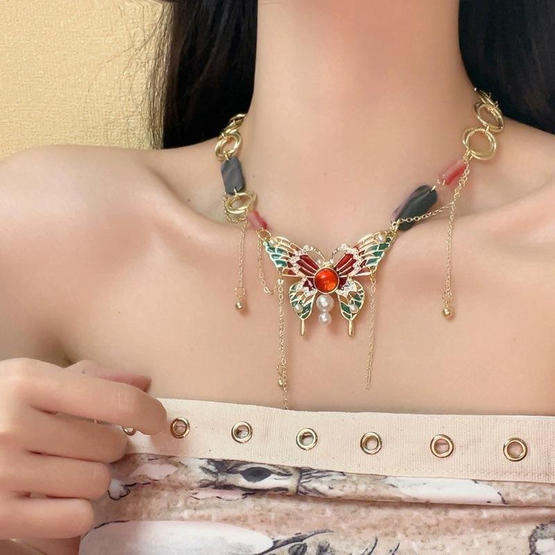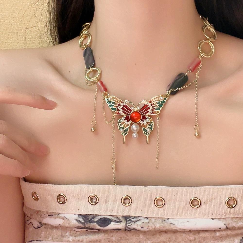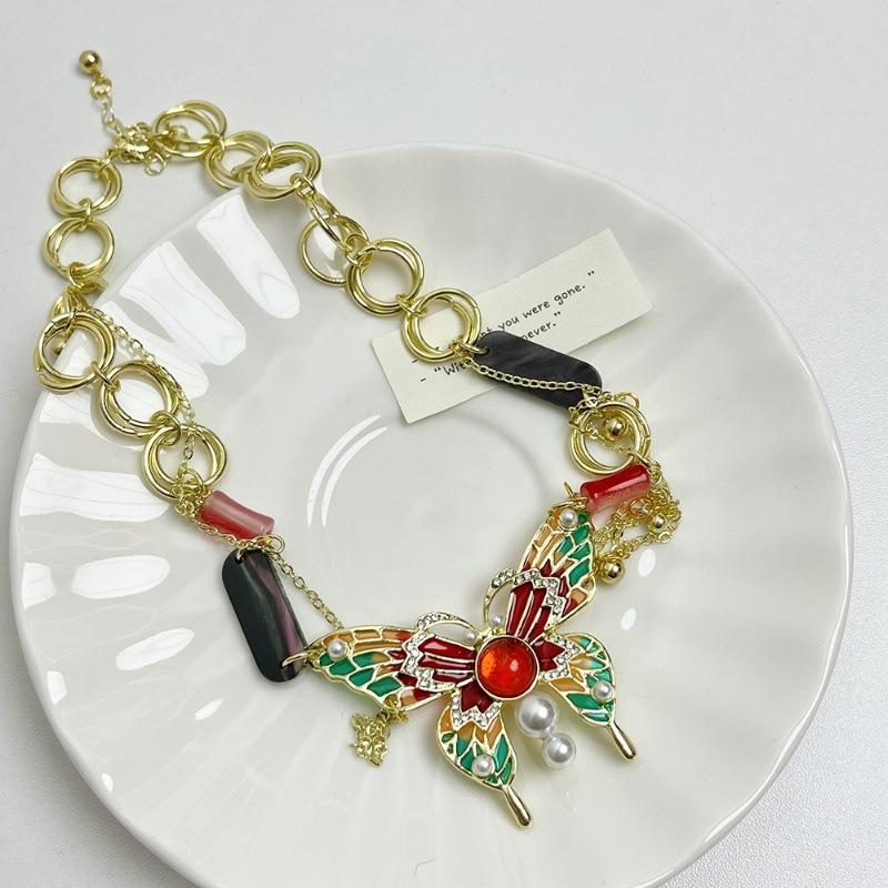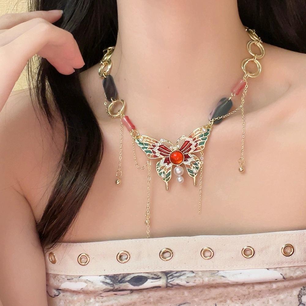 Collar de mariposa colorido con borlas de estilo industrial retro, ligero, de lujo, con cadena de clavícula y gargantilla para mujer, collar de alta calidad