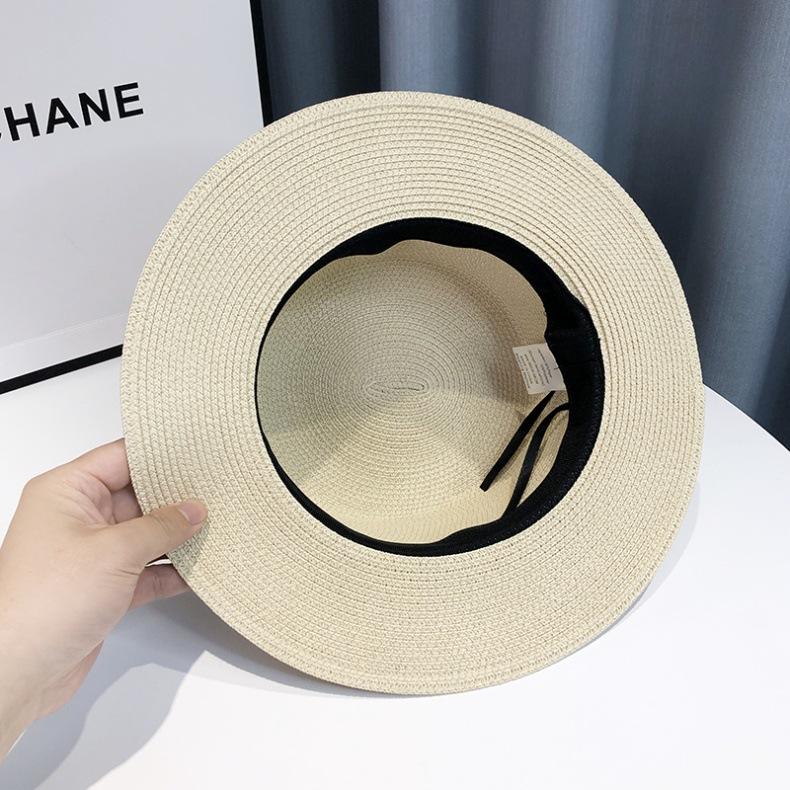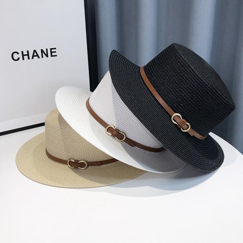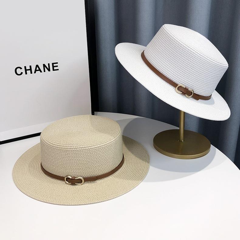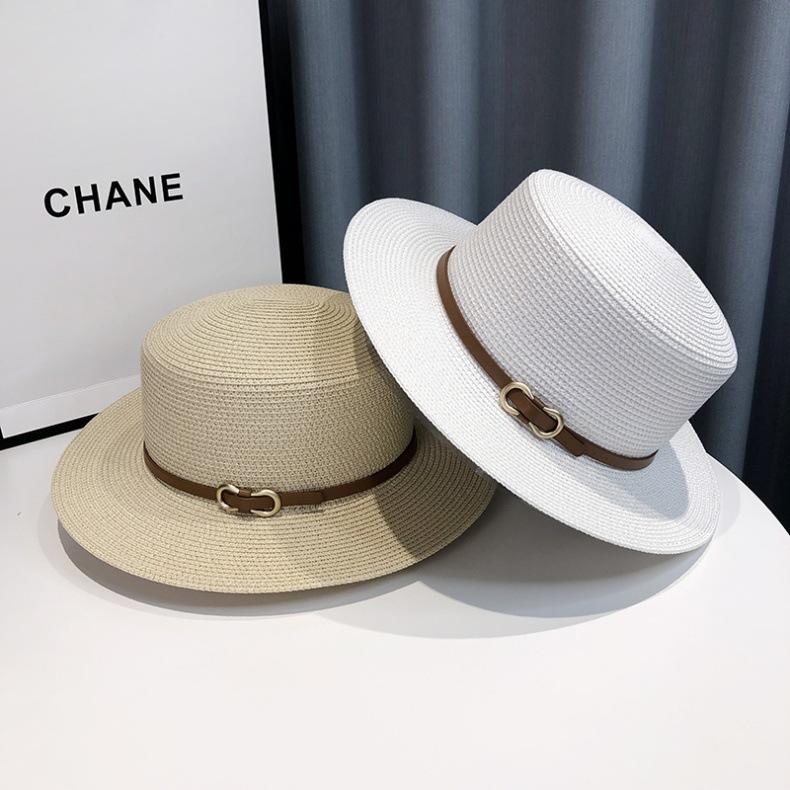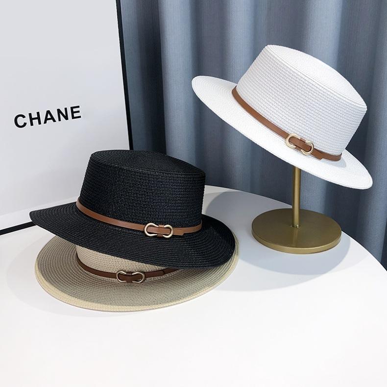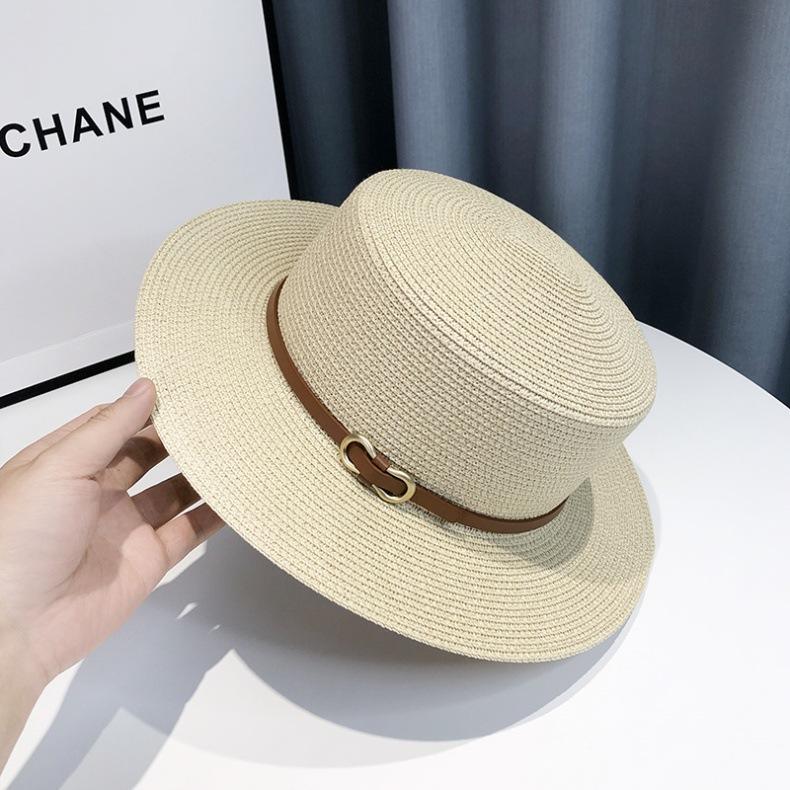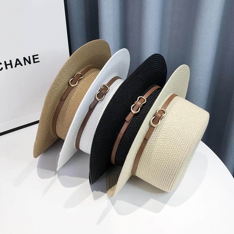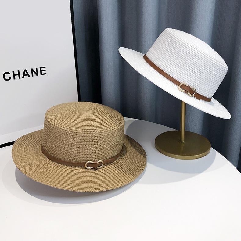 Sombrero de paja de verano para mujer, nuevo sombrero para el sol, moda francesa, sombrero de copa plana, sombrero de playa para vacaciones en la playa, sombrero para el sol con protección solar