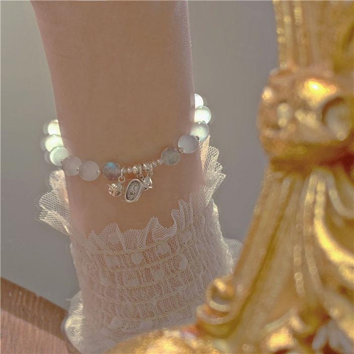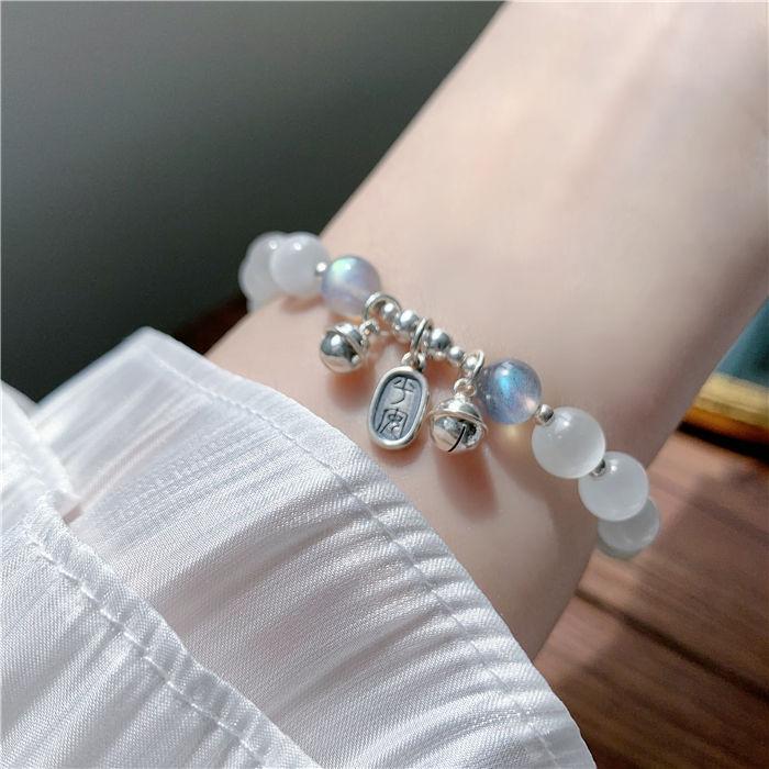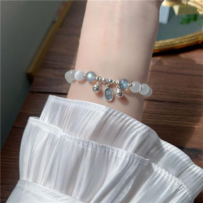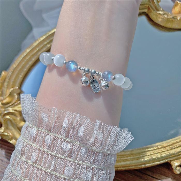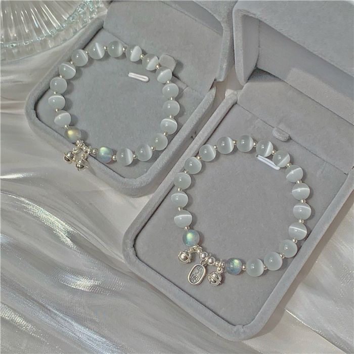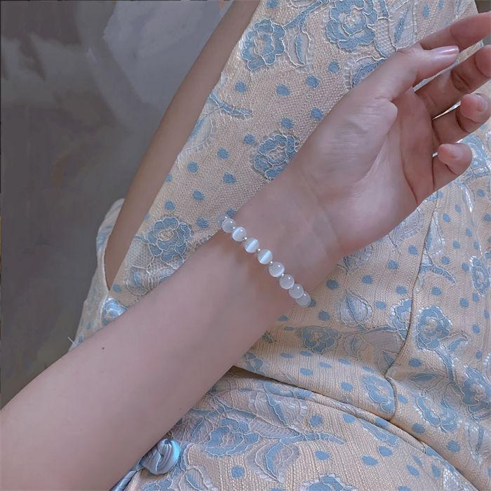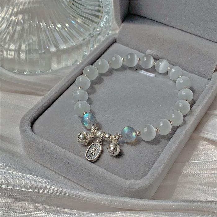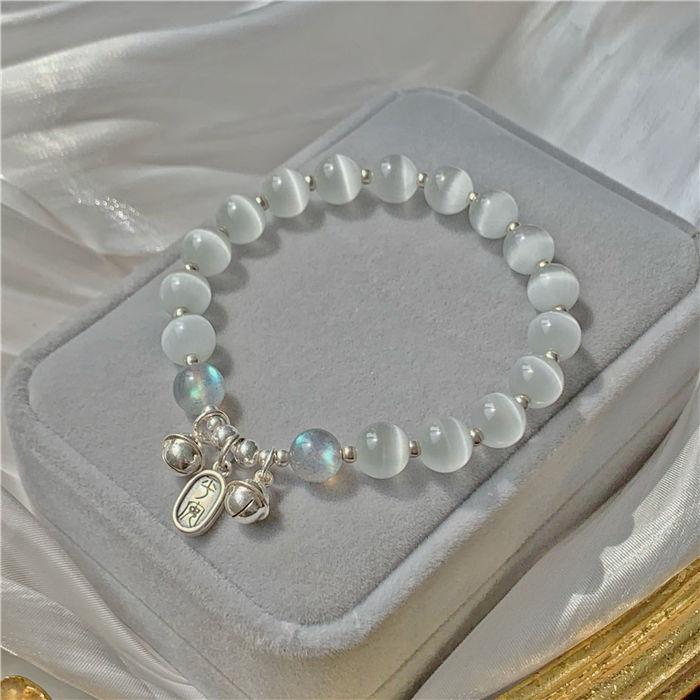 Pulsera de Campana de Ojo de Gato de Imitación de Cuentas Blancas para Niñas Verano Mejor Amiga Pulsera de Lujo Accesible Pequeña Fresca Día de San Valentín Chino Regalo para Novia