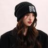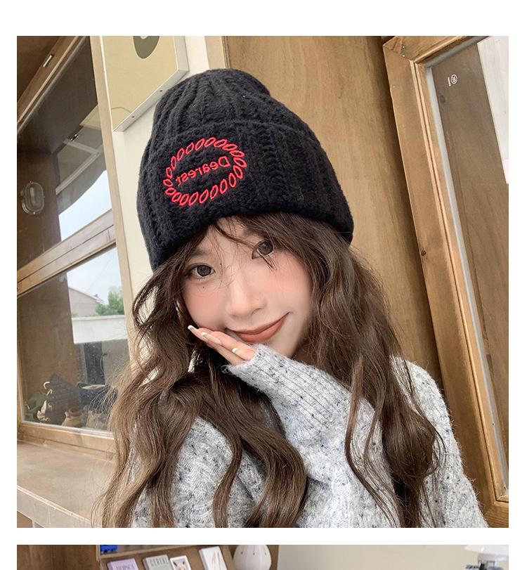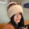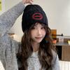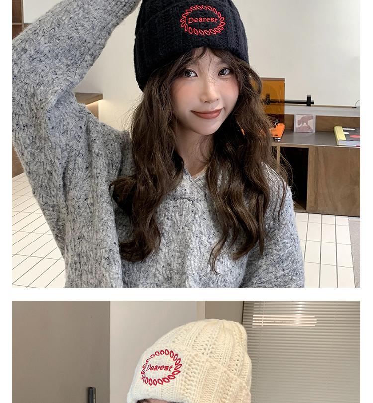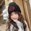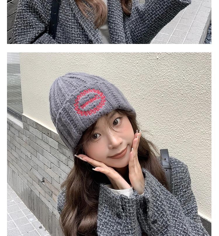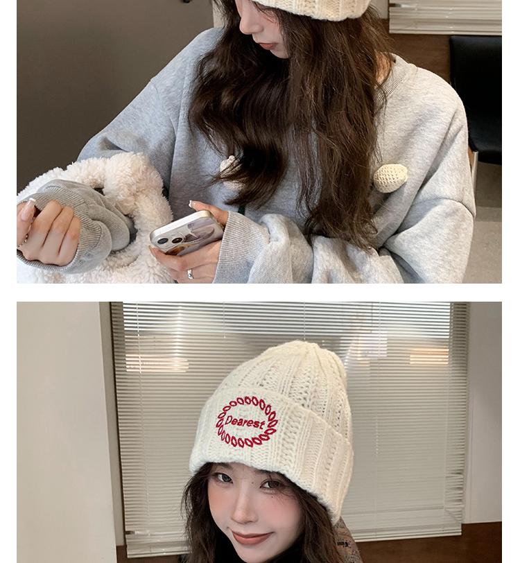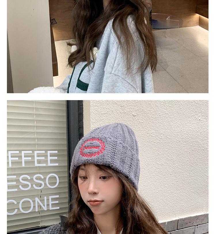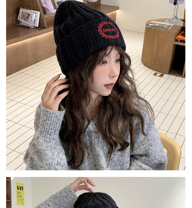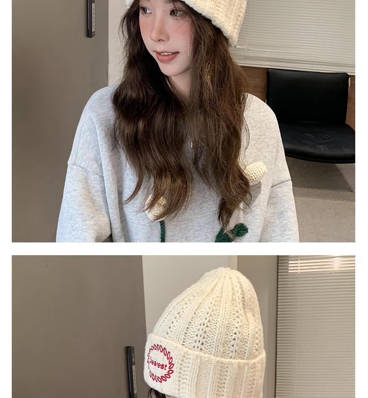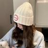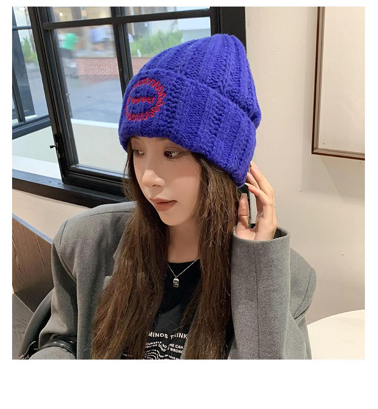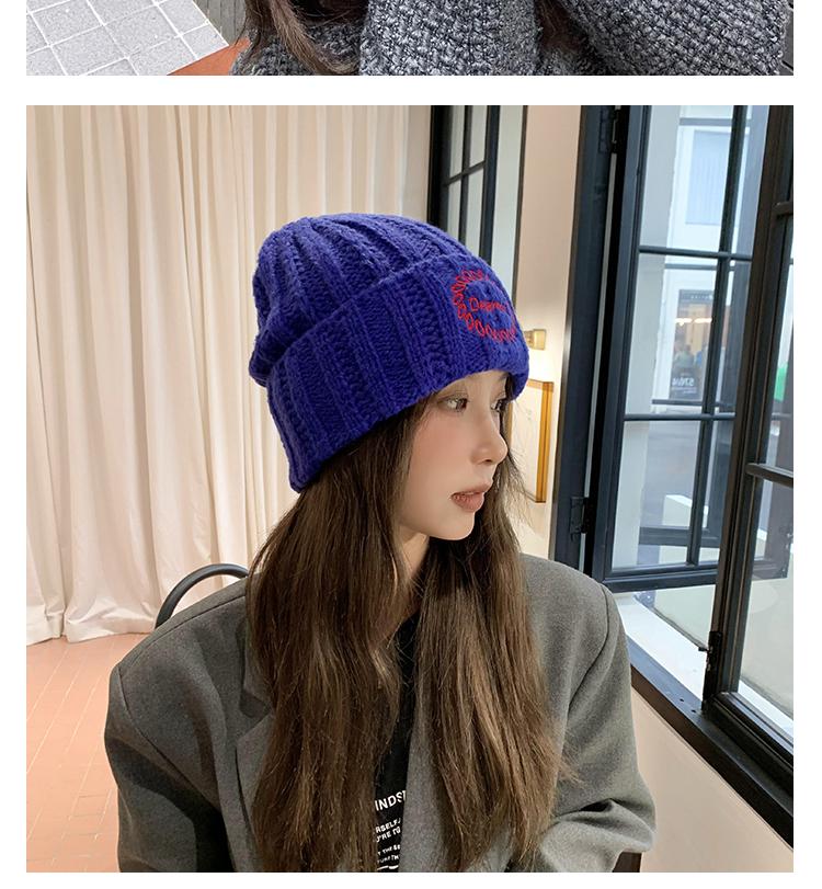 Gorro de lana de punto con bordado de moda Joker para mujer, gorro cálido y frío para otoño e invierno, gorro holgado de cara grande y pequeño.