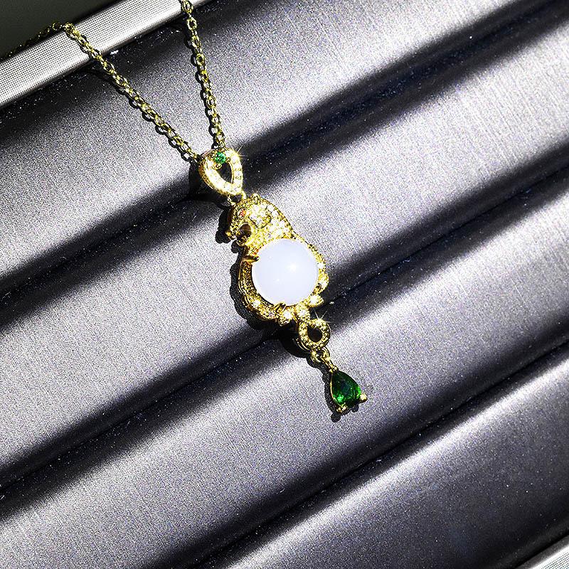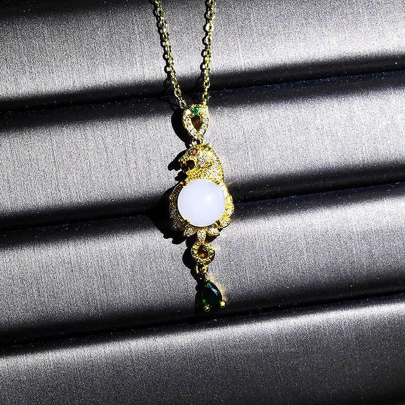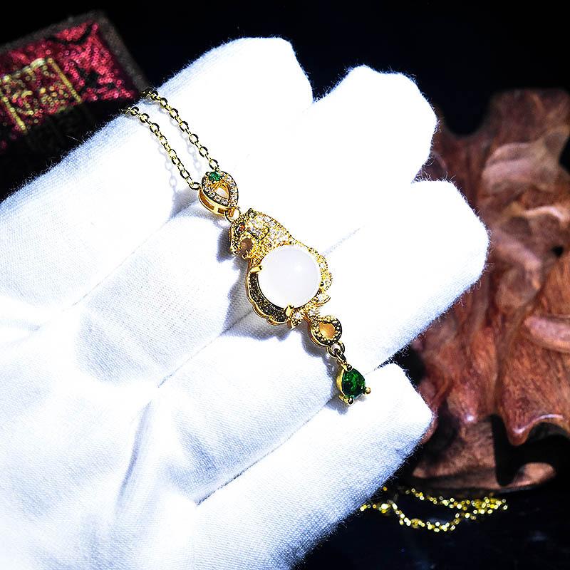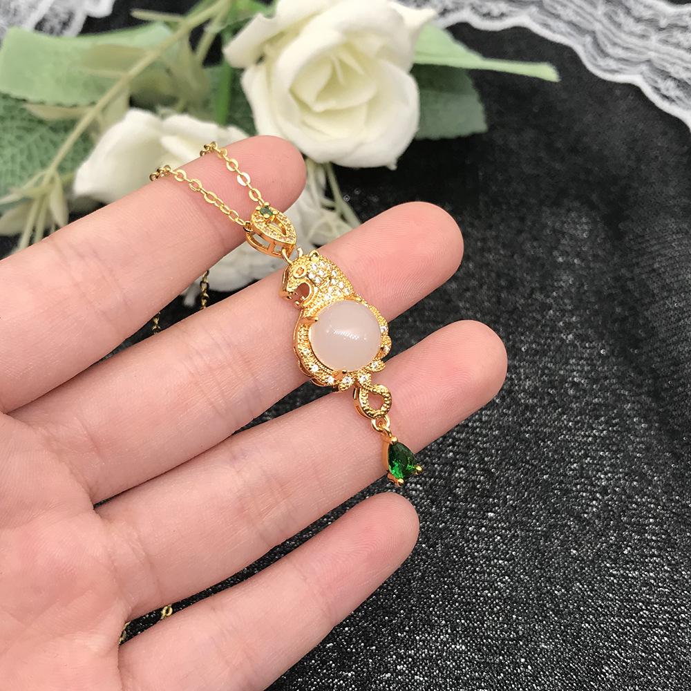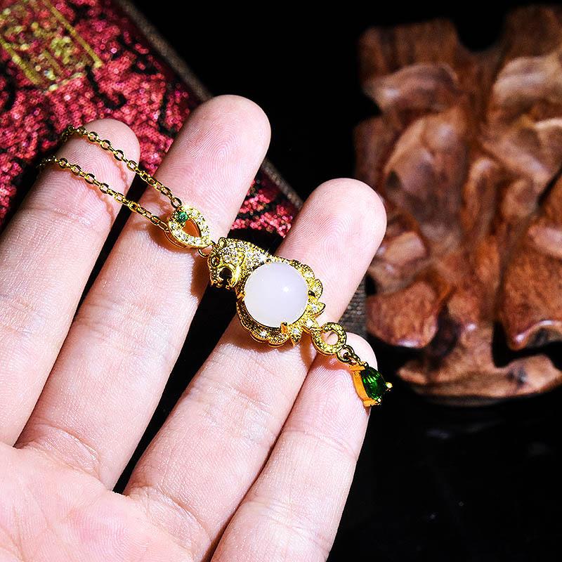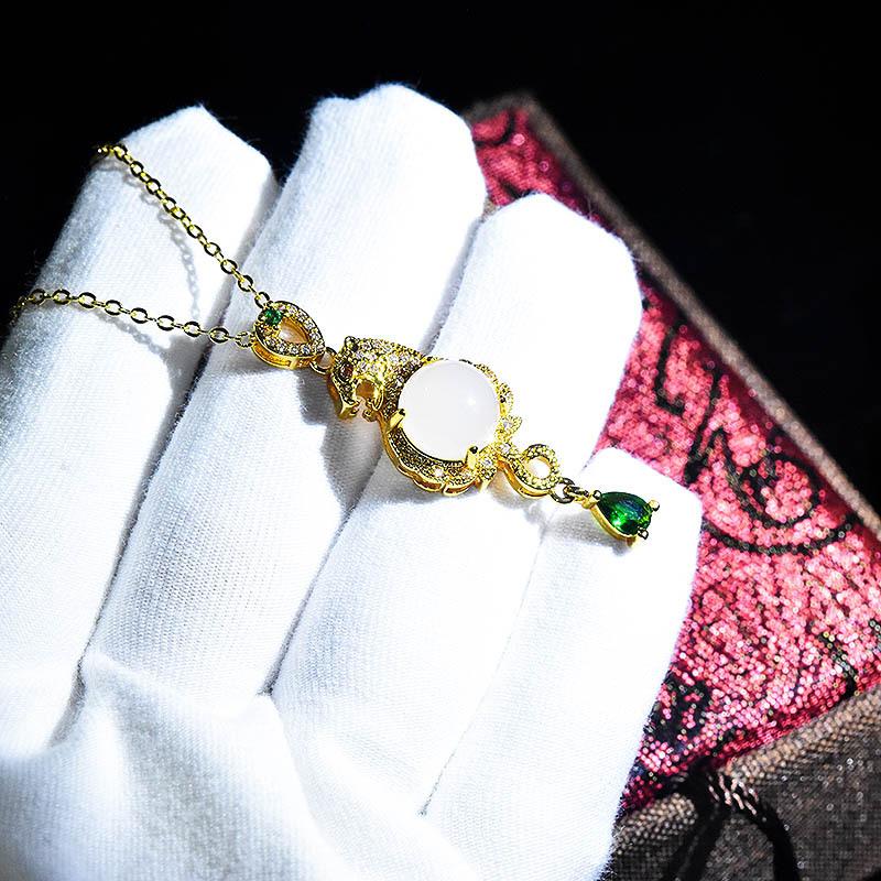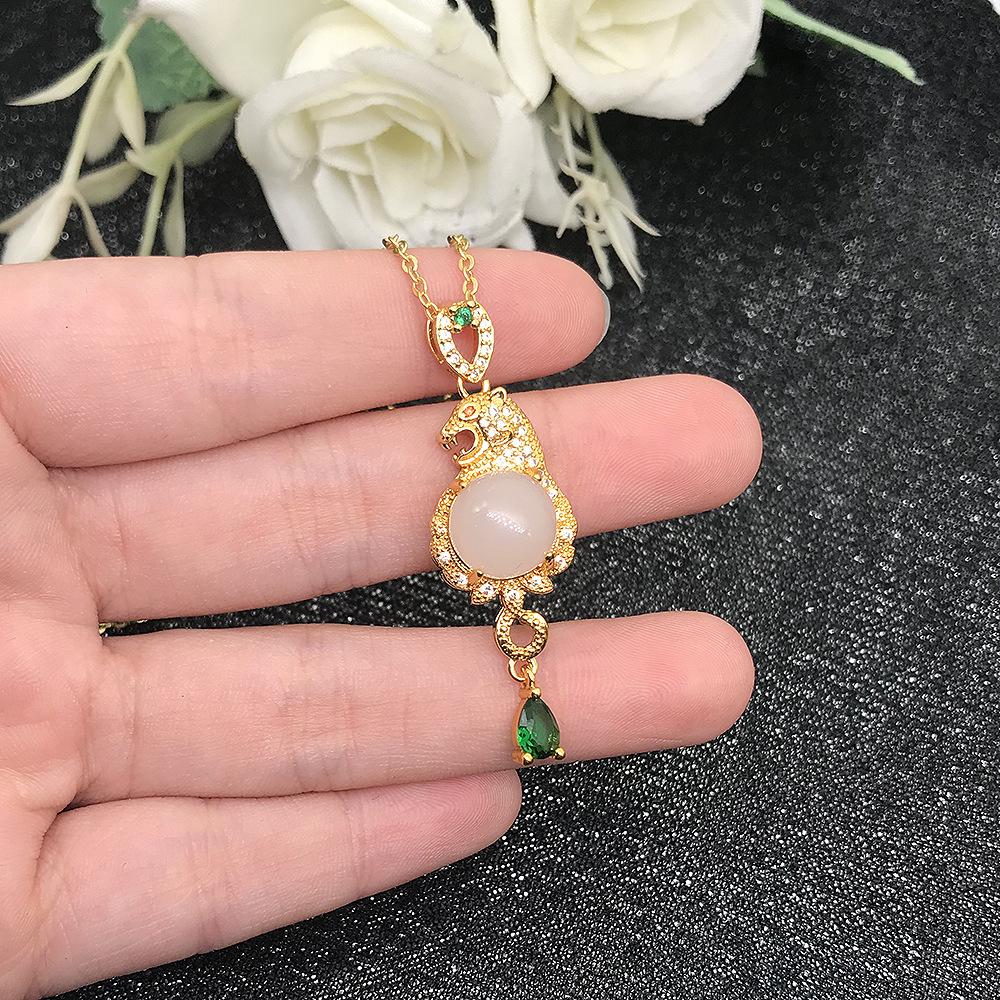 Explosión en vivo dominante leopardo oro incrustado colgante de jade chapado oro 18K imitación jade Hetian collar con colgante de animal para hombres y mujeres