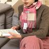 Bufanda de cuadros versátil para otoño e invierno para mujer Bufanda larga gruesa de invierno para pareja de estudiantes Chal con borlas