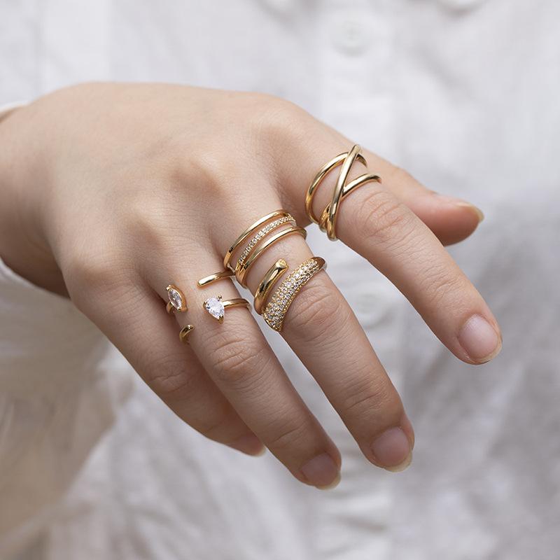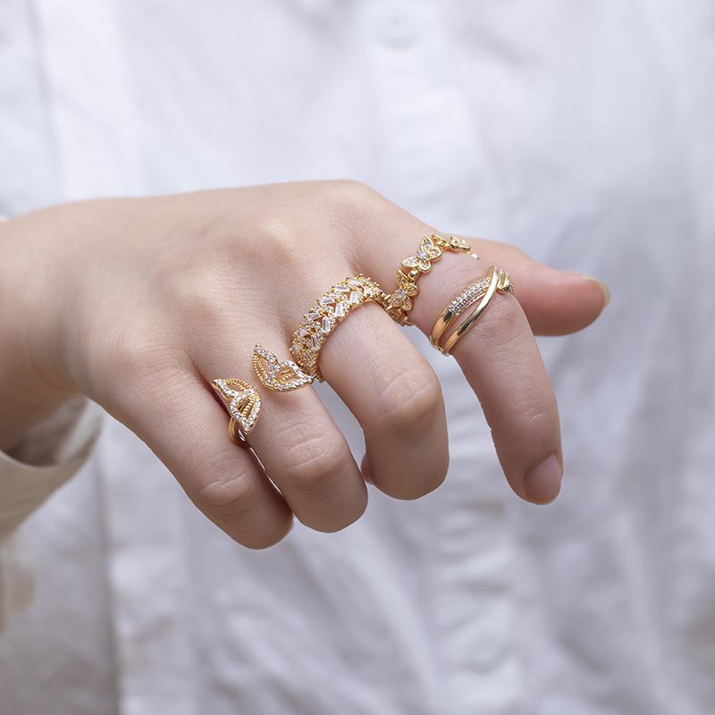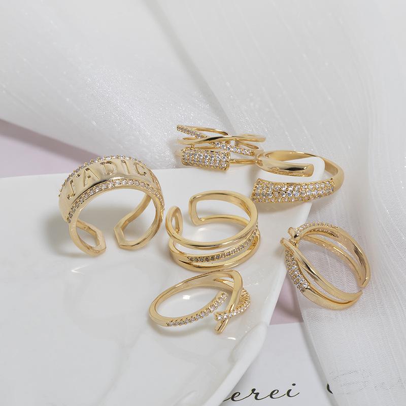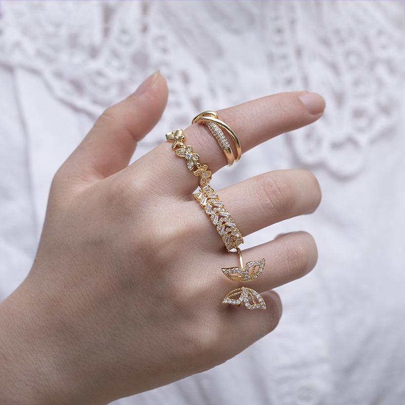 Novedad de verano 2022, anillo de cola con incrustaciones de diamantes exquisitos japoneses de moda, anillo abierto ajustable, anillo de dedo índice de celebridad de Internet