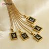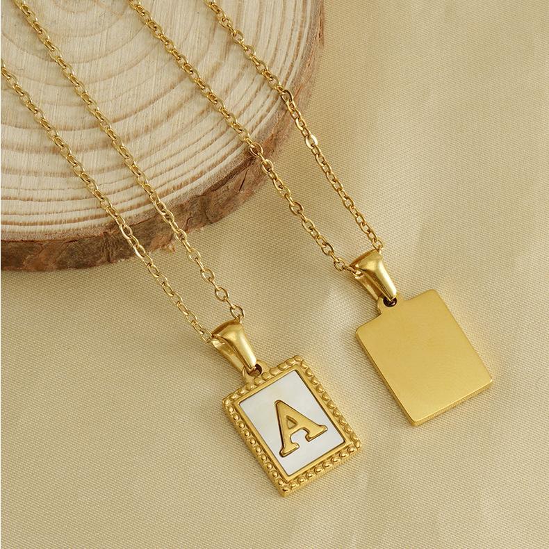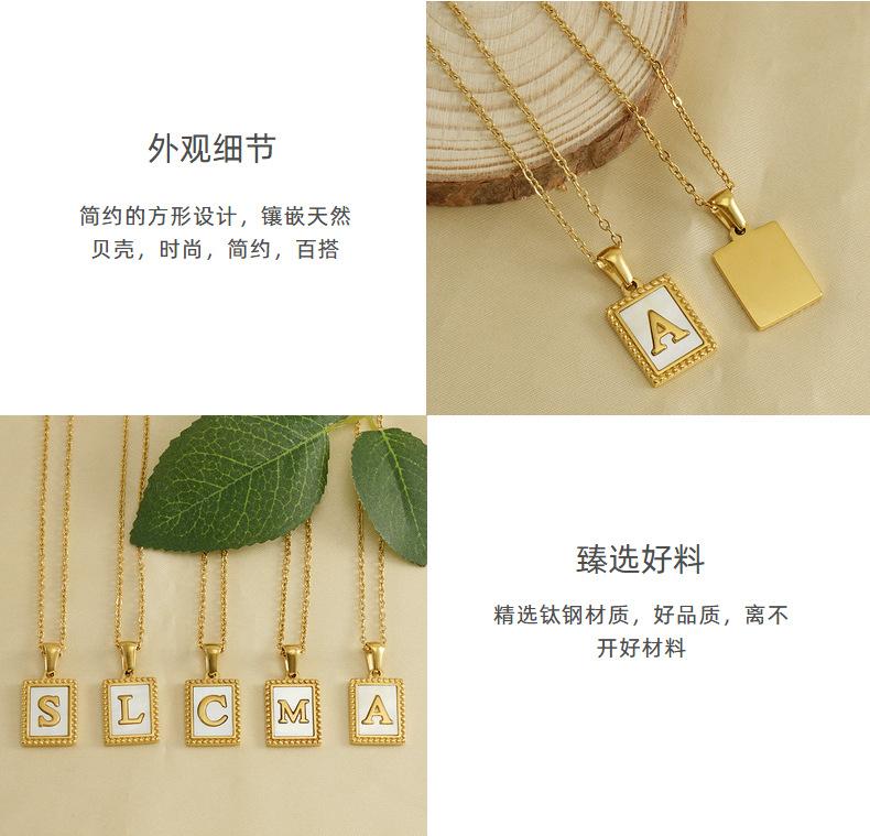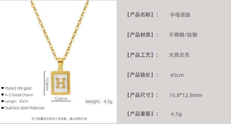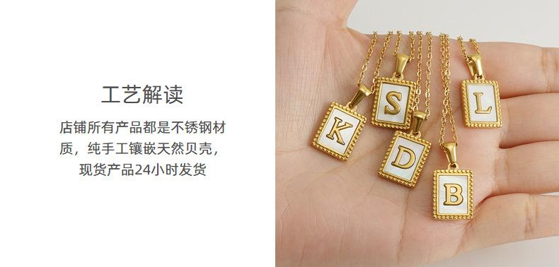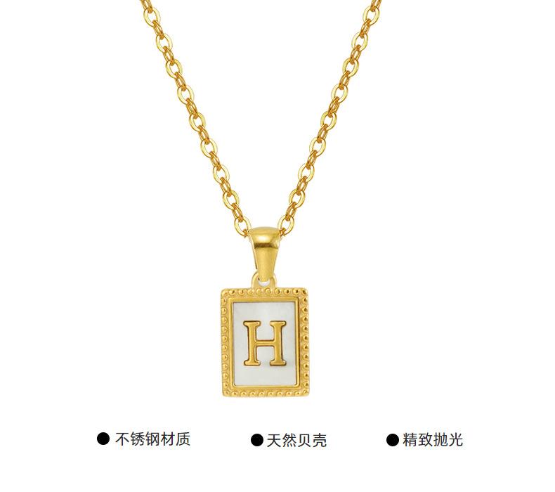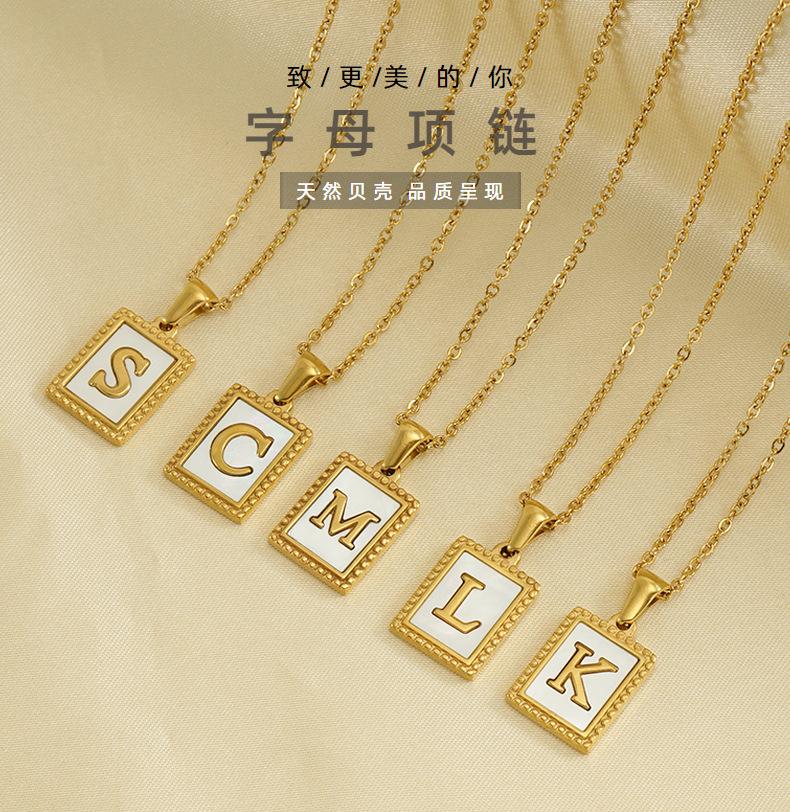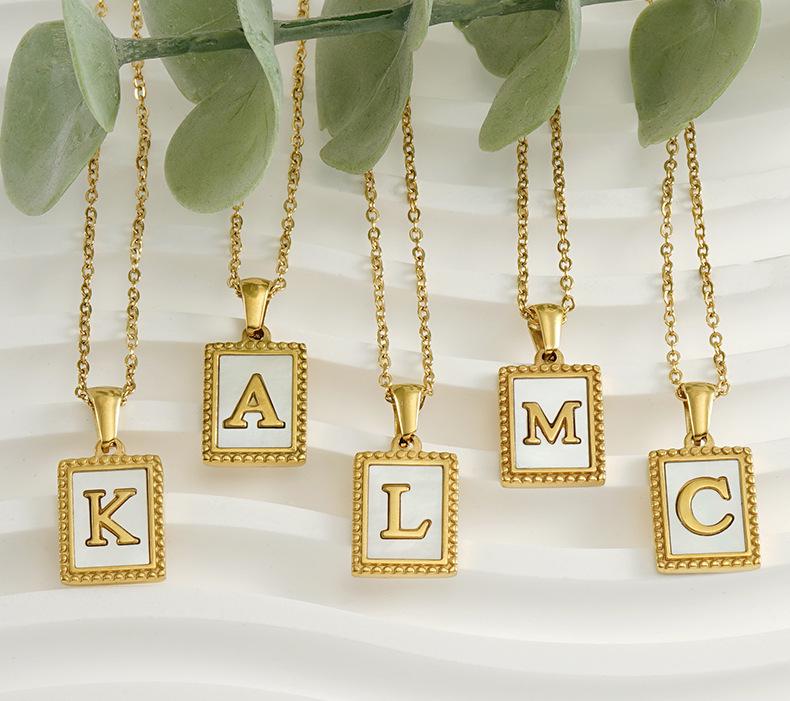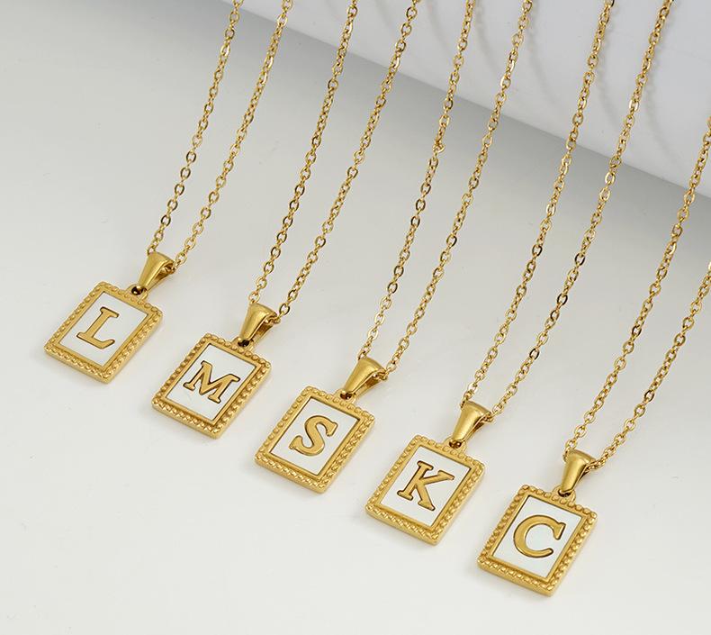 Colgante de letra de concha de acero inoxidable de 18 quilates con forma cuadrada europea y americana, collar de 26 letras en inglés, cadena de clavícula al por mayor