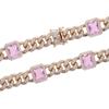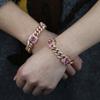 Pulsera Cubana de Hip Hop Transfronteriza Nueva de 12 mm Circonita Rosa Cadena Cubana de Moda Europea y Americana para Mujer