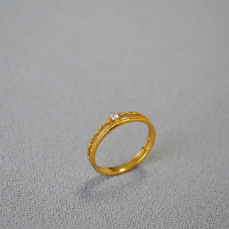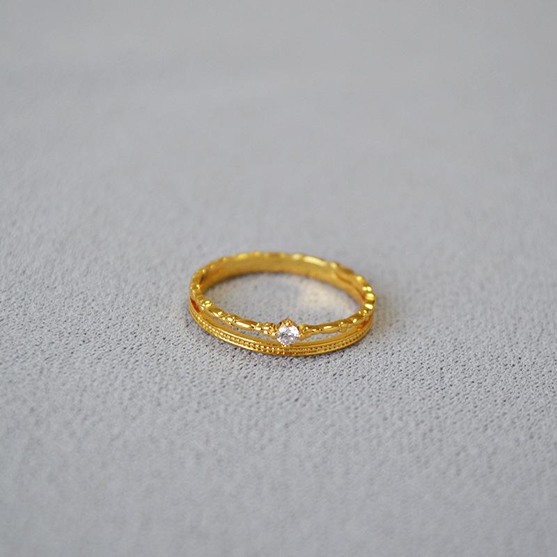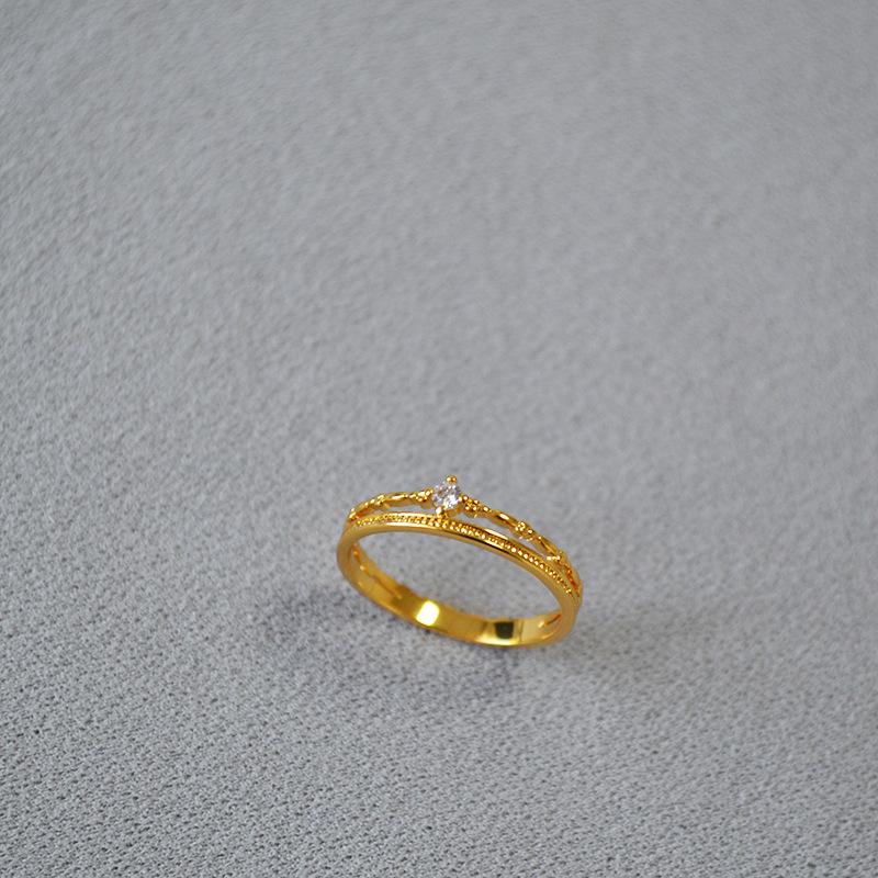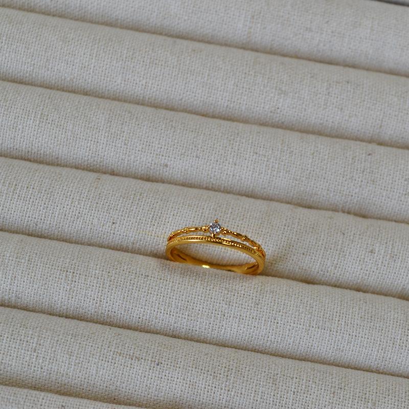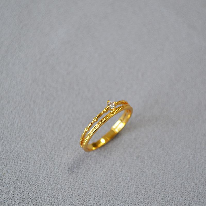 Anillo Fino de Nudillo Japonés de Lujo Nicho Retro Simple de Doble Capa Línea Zircón Diamante Flash Latón Chapado en Oro