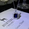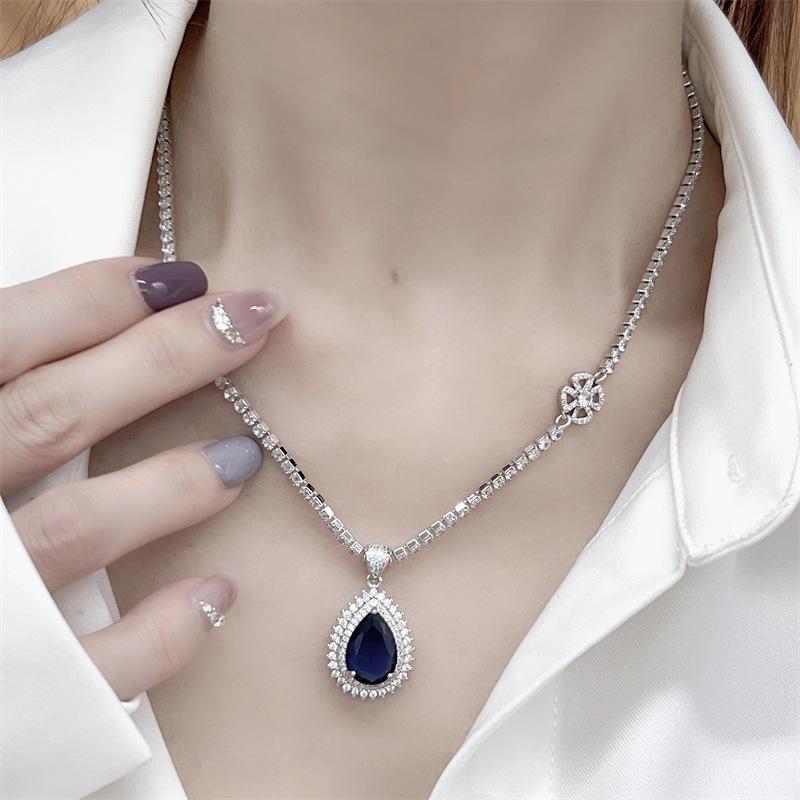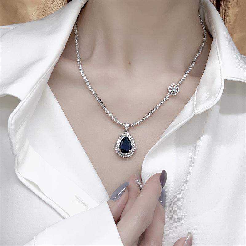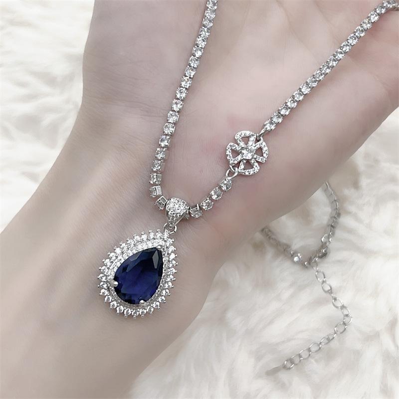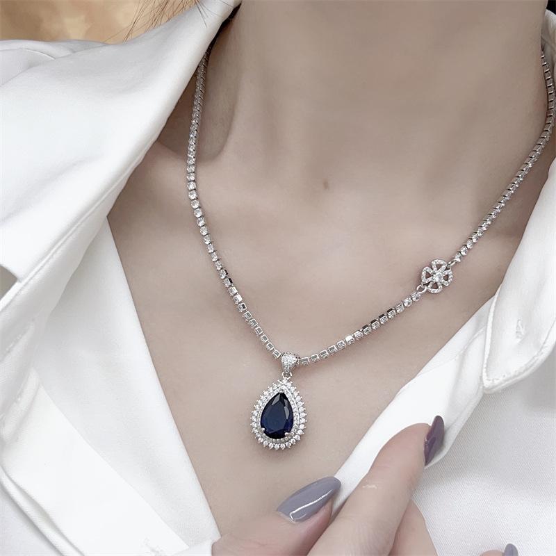 Collar de zafiro de lujo europeo y americano con incrustaciones de colgante vintage, cadena de clavícula azul, nicho de lujo ligero, elegante y a la moda.