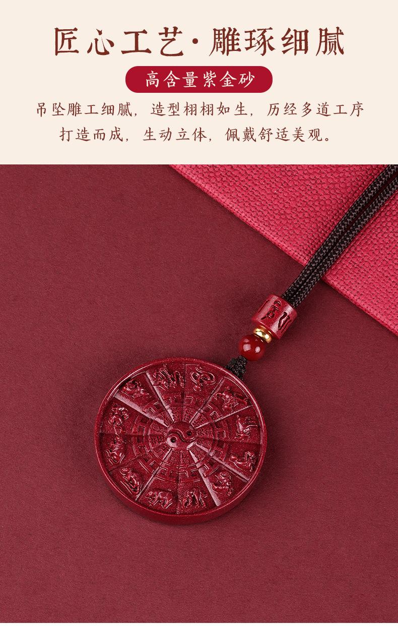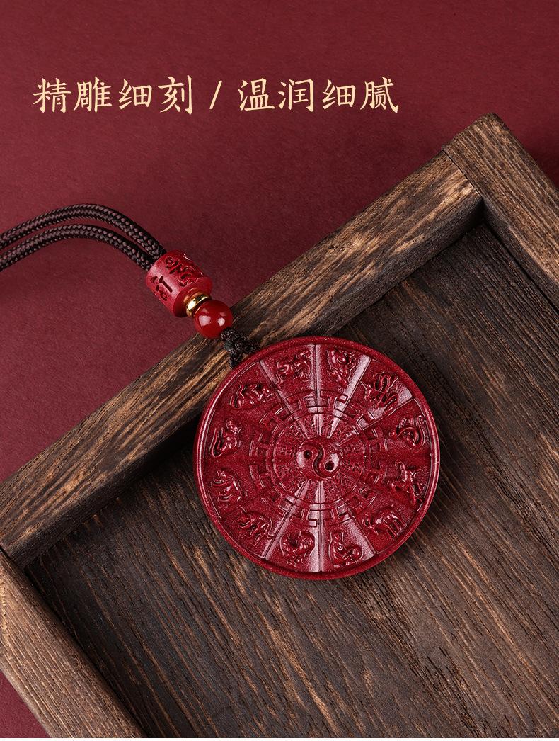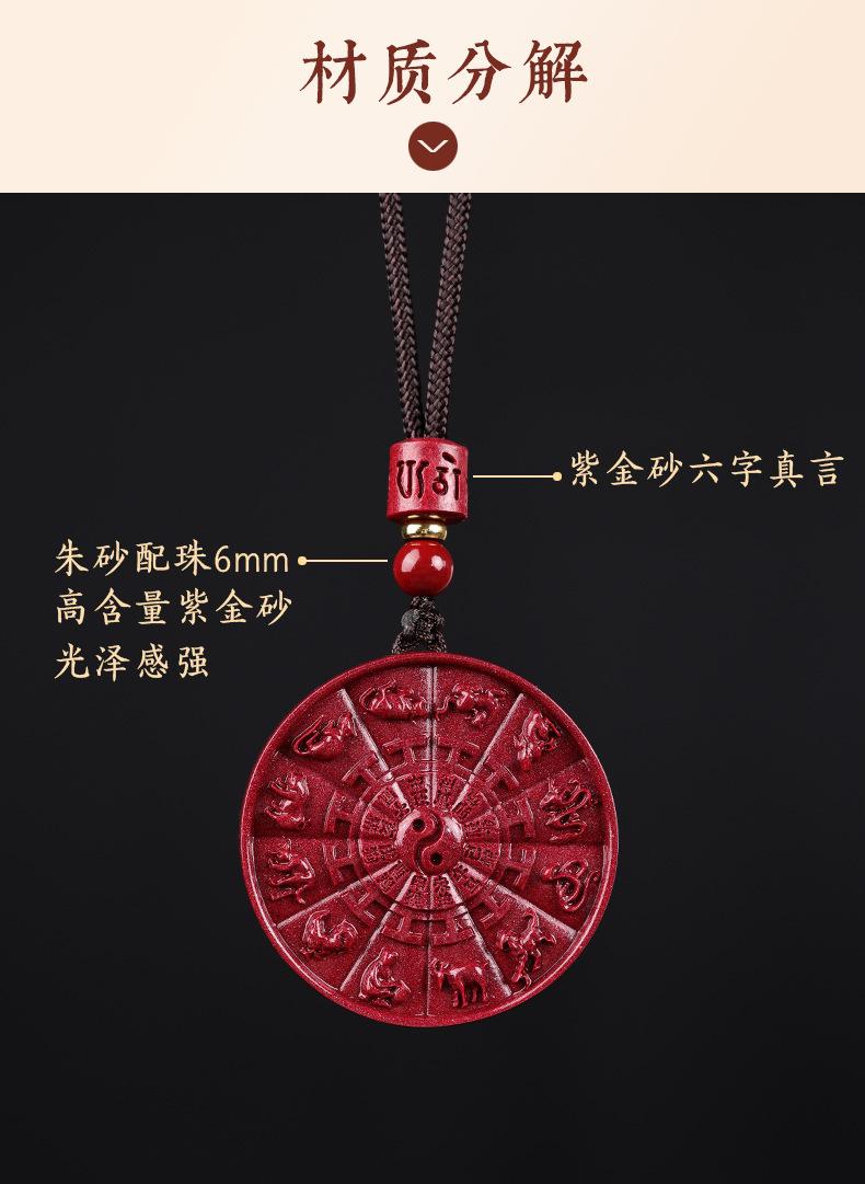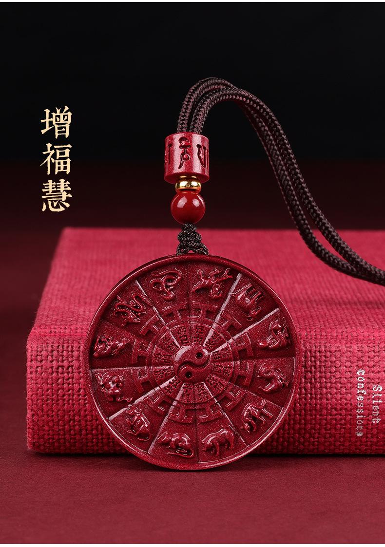 Cinabrio genuino tienda oficial insignia colgante colgante Tai Chi Bagua natural collar zodiacal año de nacimiento cadena para suéter de hombre