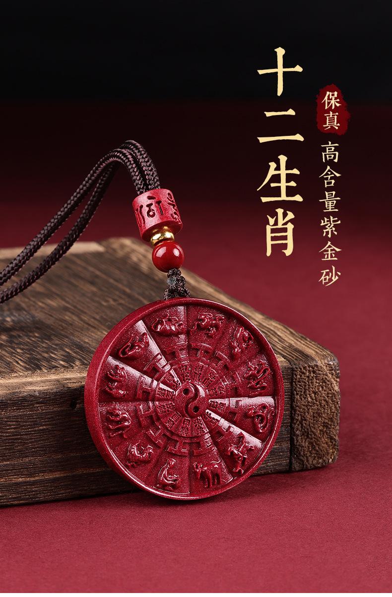 Colgante de cinabrio auténtico de alto contenido natural de Taiji chismes, colgante del zodiaco, collar del año de nacimiento, cadena de suéter para hombre