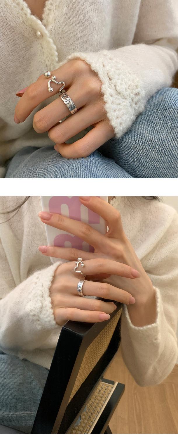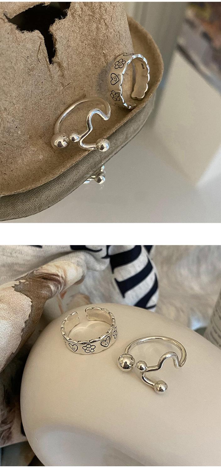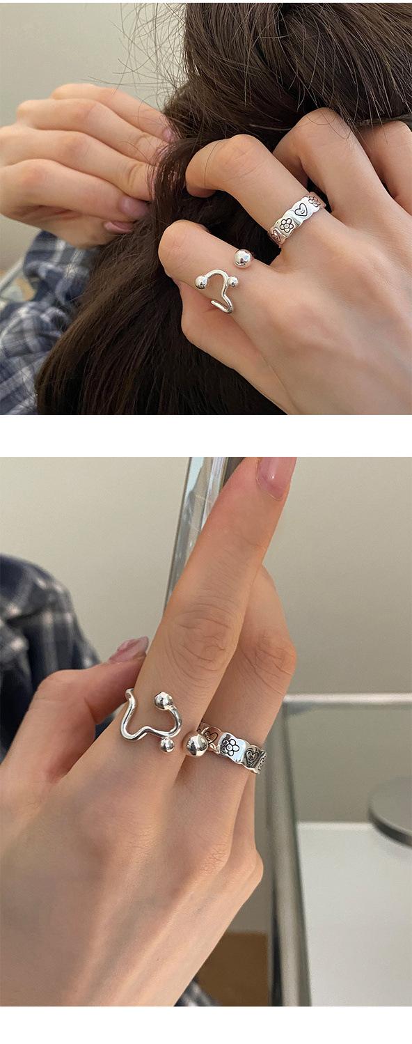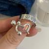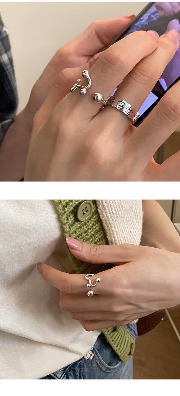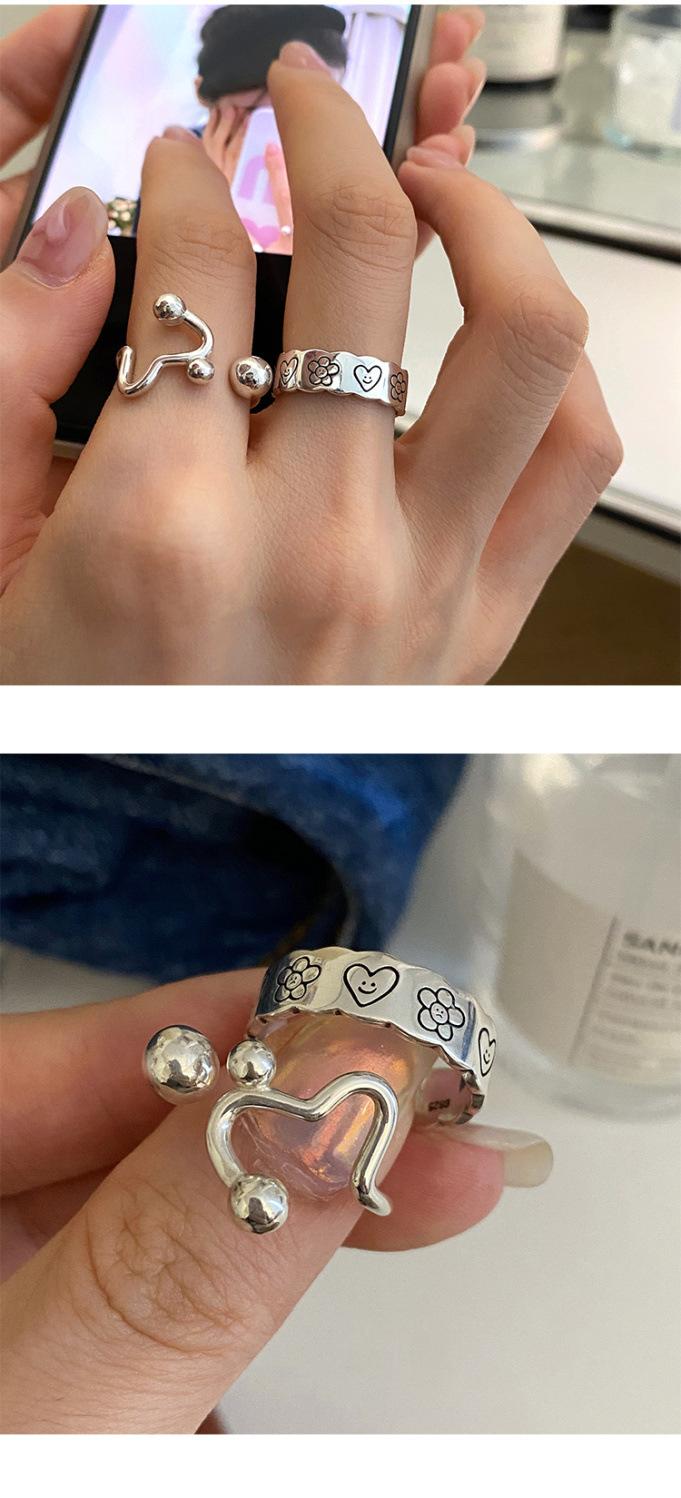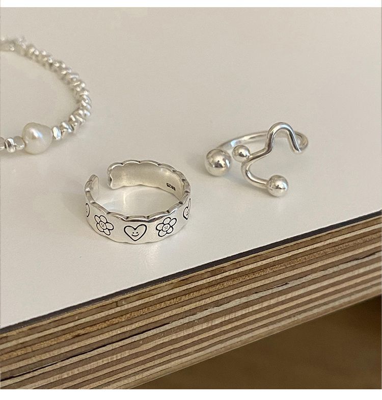 Anillo pequeño con cara sonriente, flor plateada, amor, grafiti, estilo ins, 2025 nuevo, temperamento de viento frío, anillo abierto para dedo