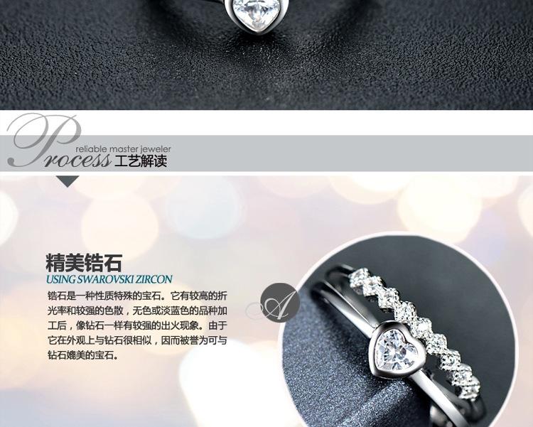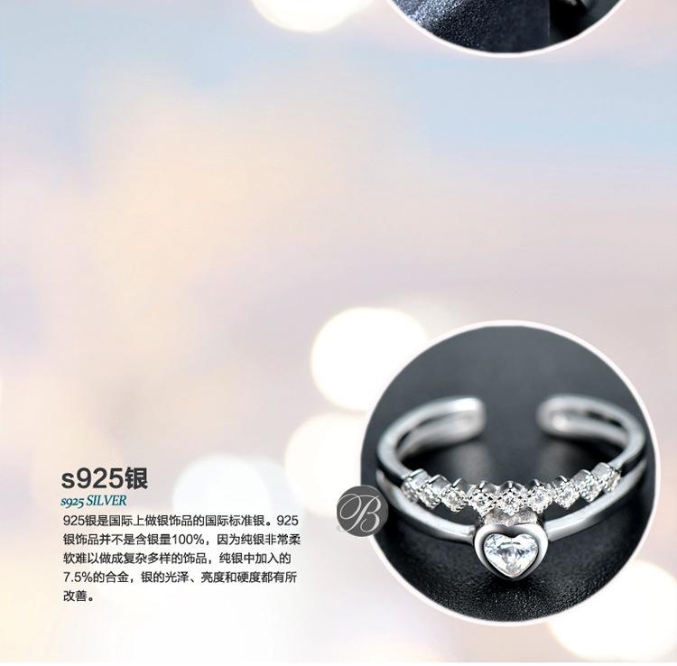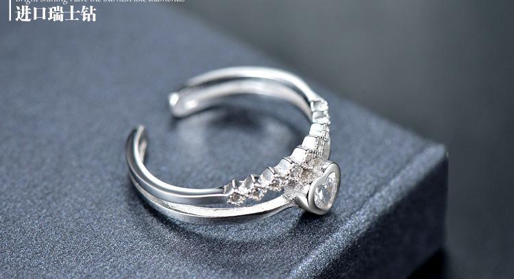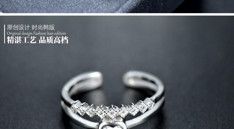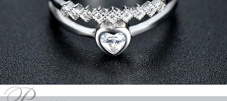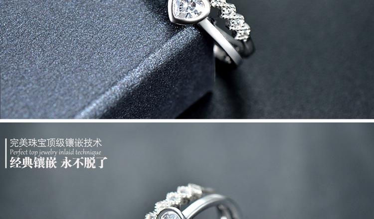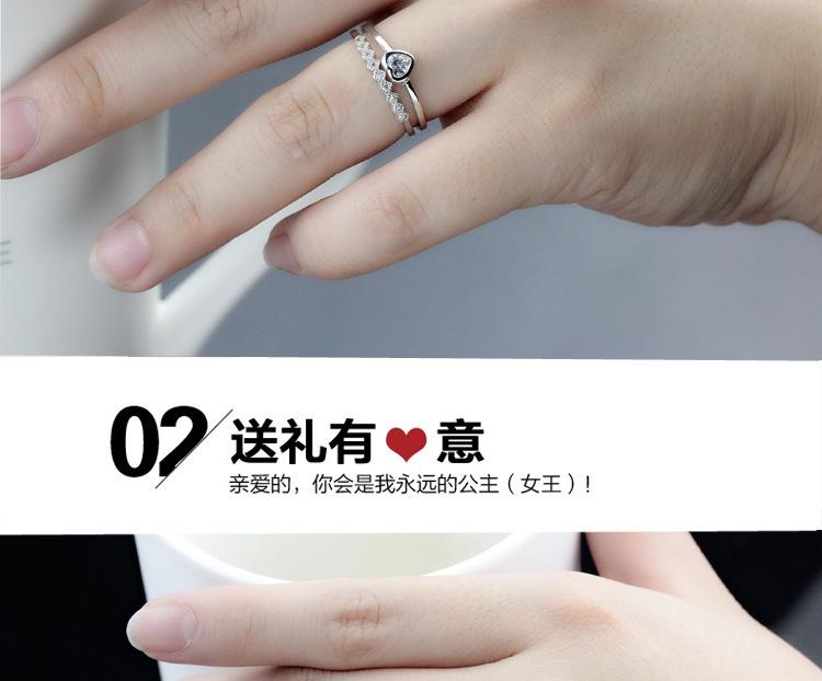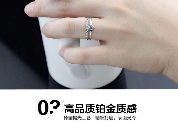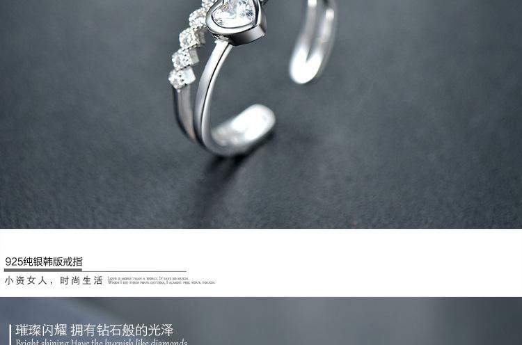 Anillo coreano en forma de corazón con diamantes de circonita de doble capa para mujer, anillo abierto de moda creativa, joyería de plata al por mayor
