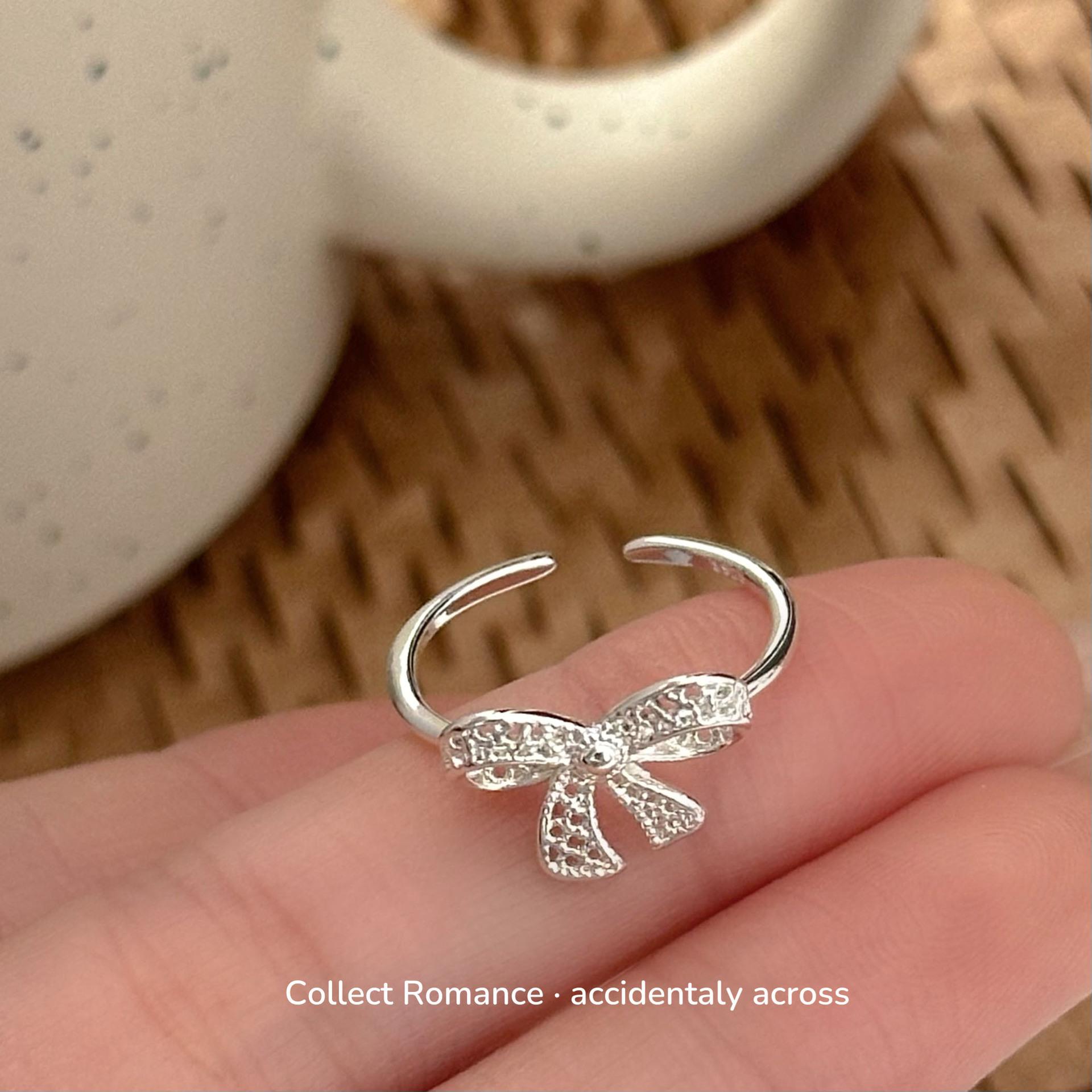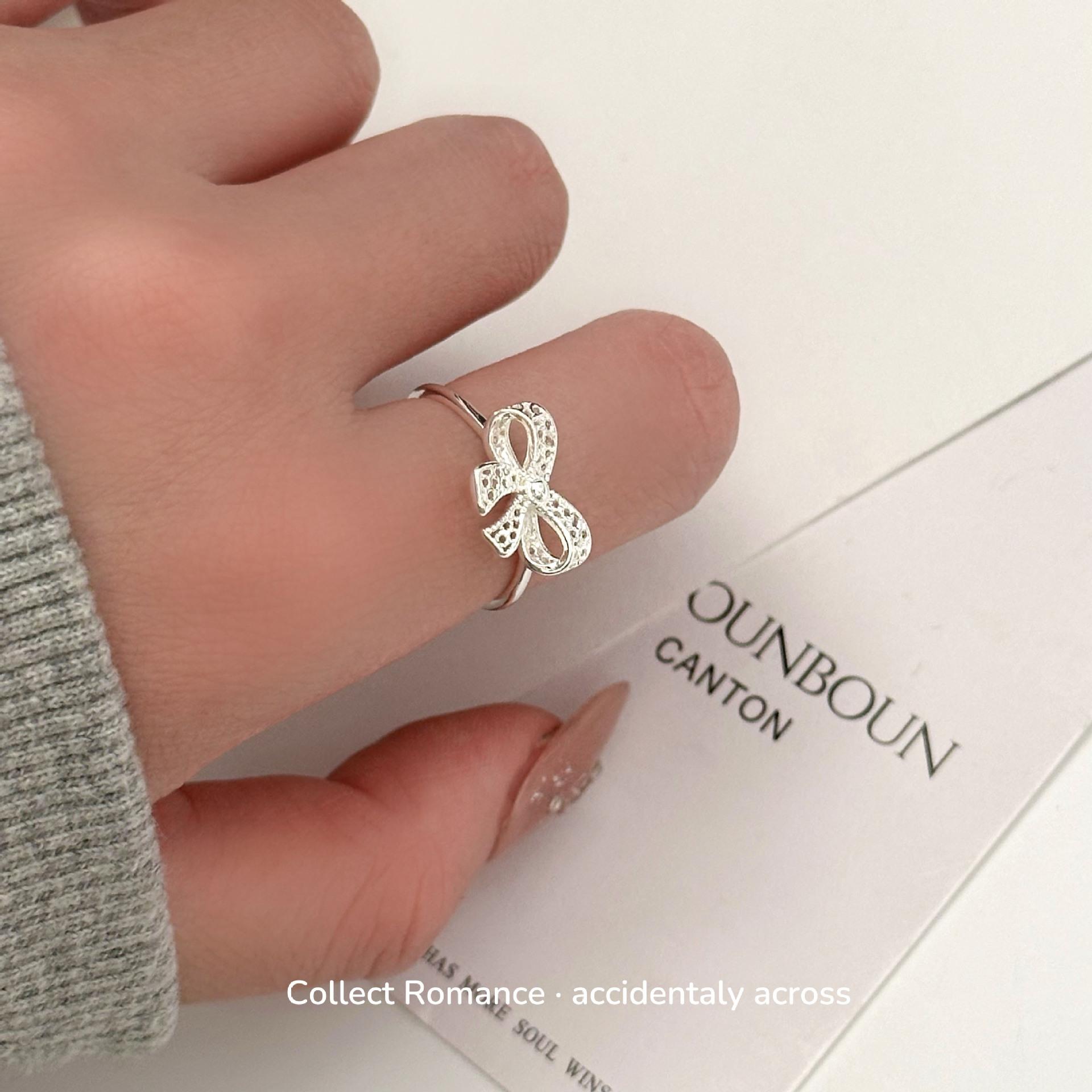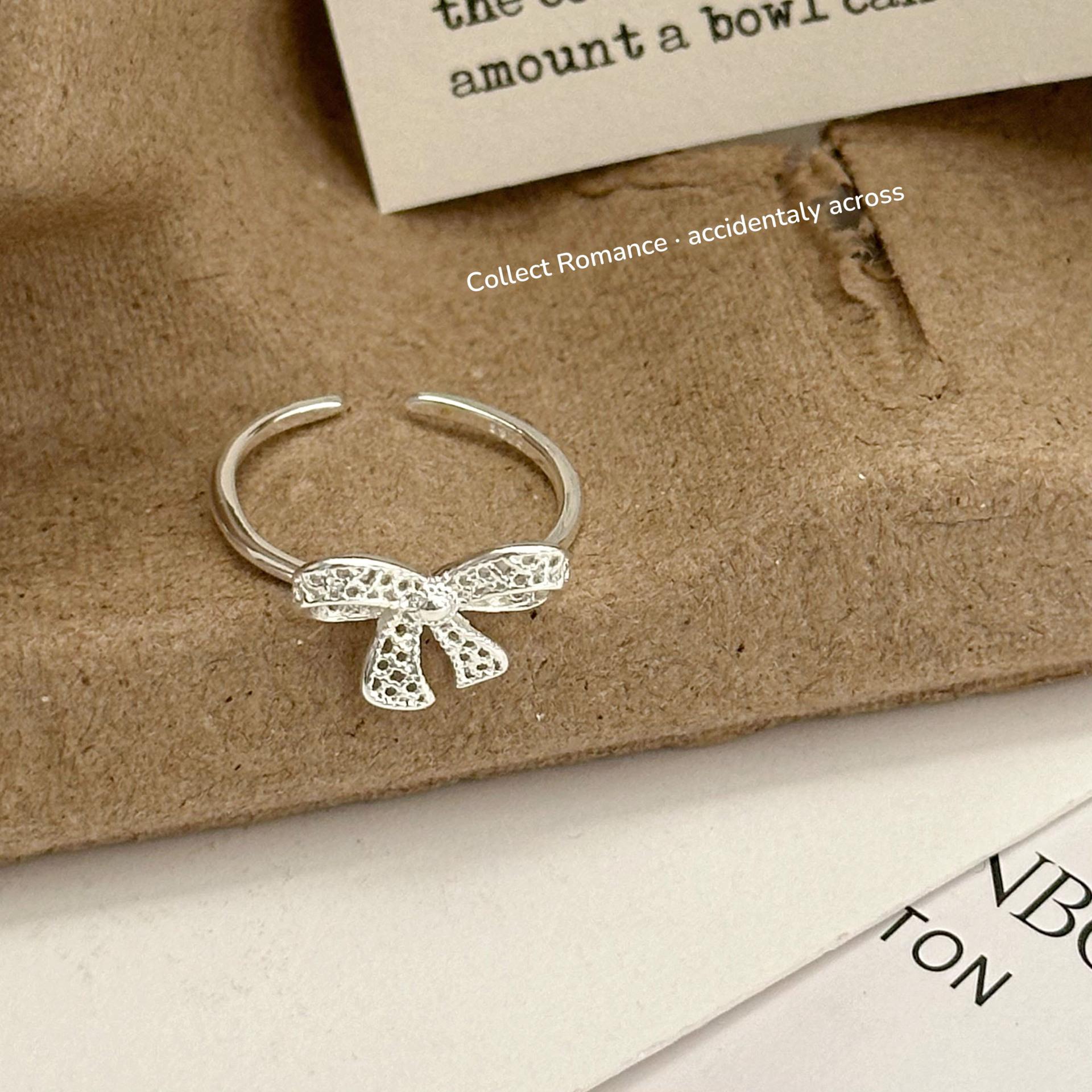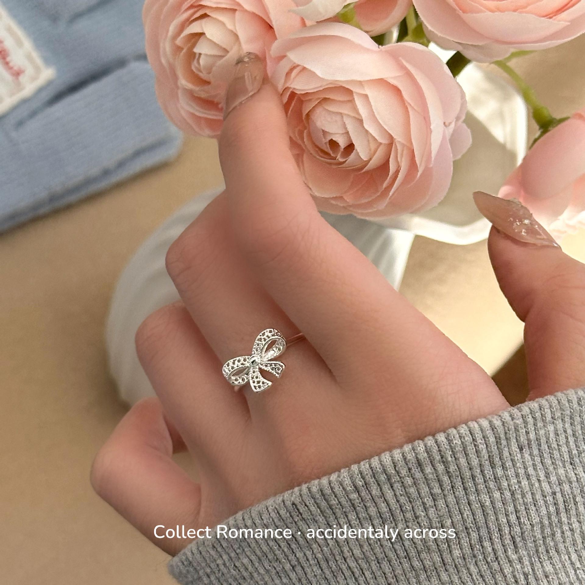 Anillo de lazo de encaje hueco para mujer, informal, bonito, dulce y femenino, con temperamento de corazón, abierto, 2024