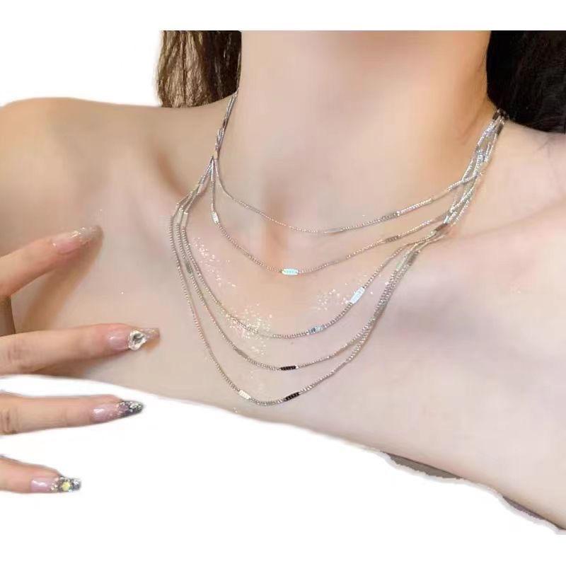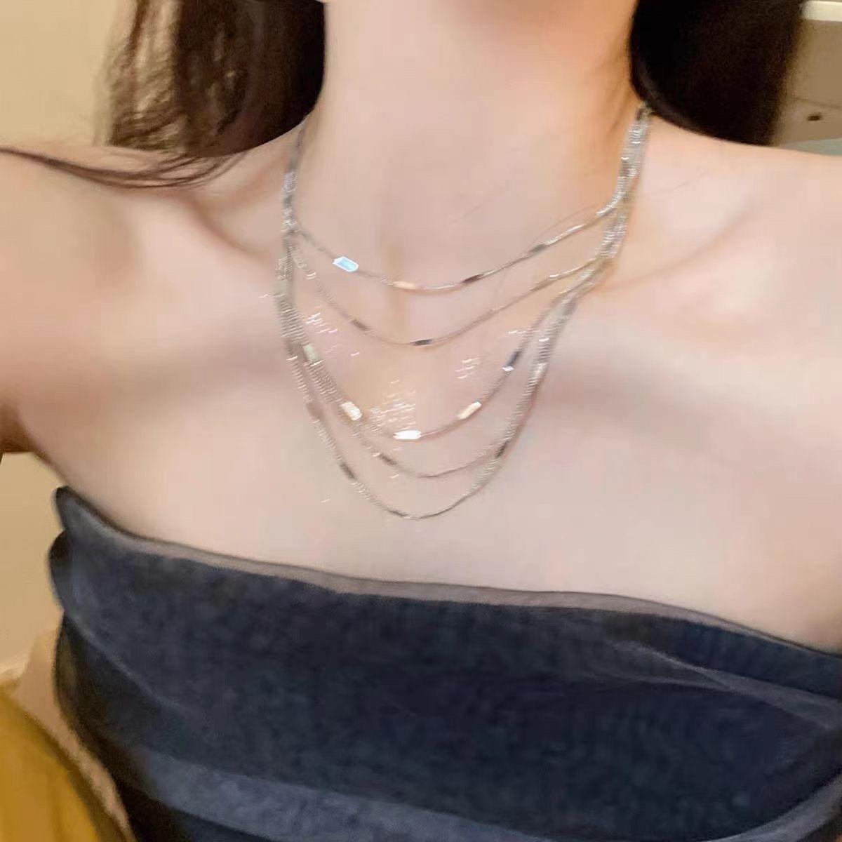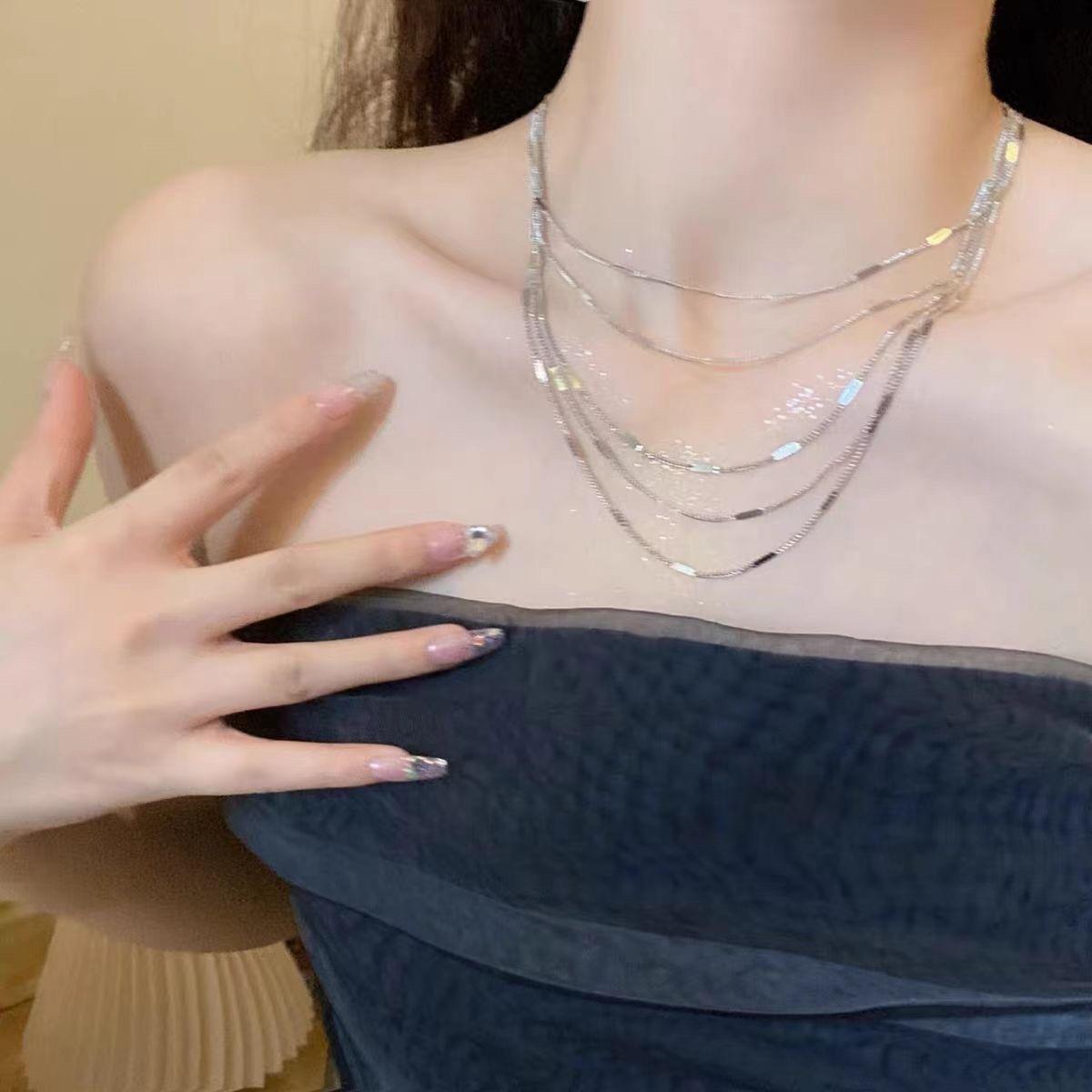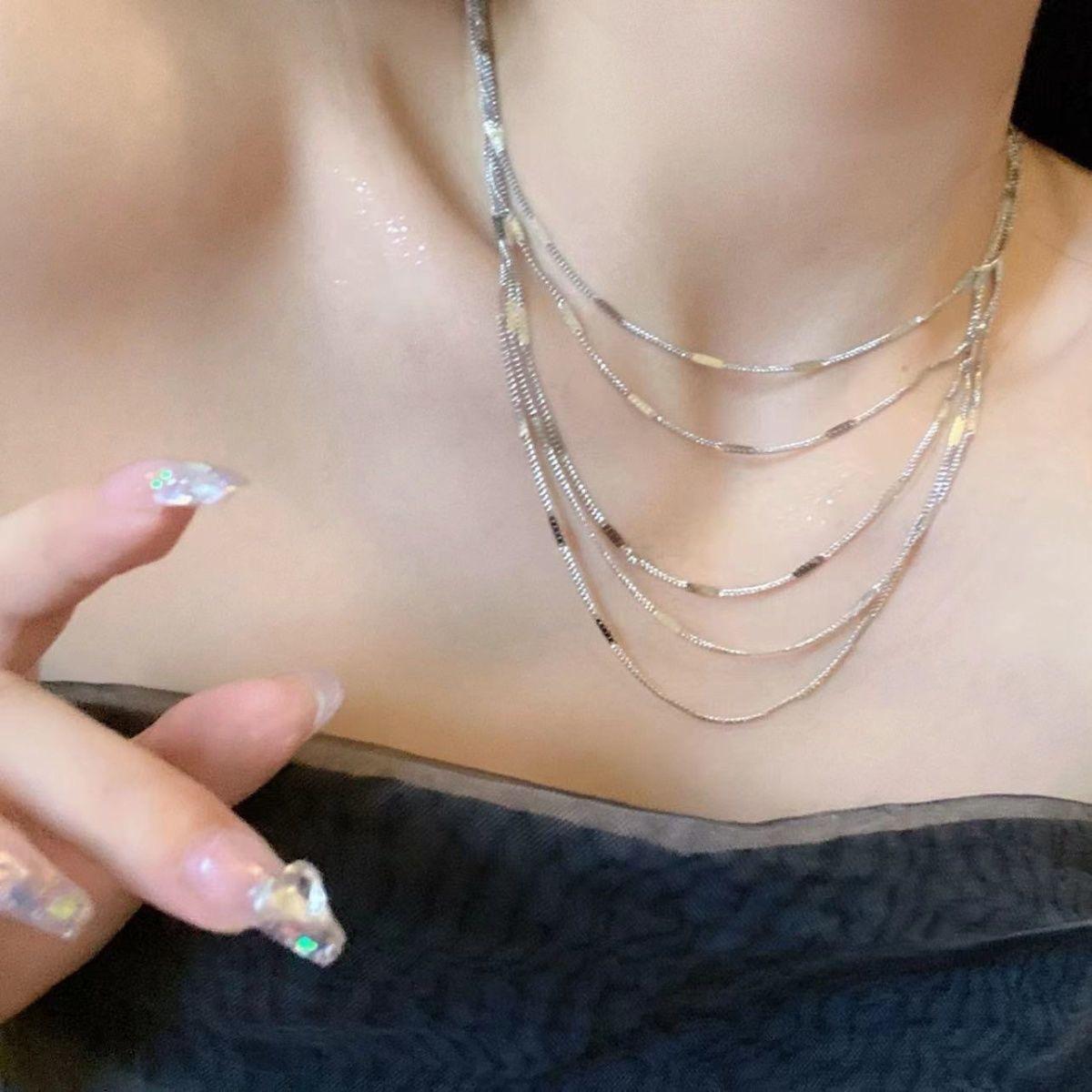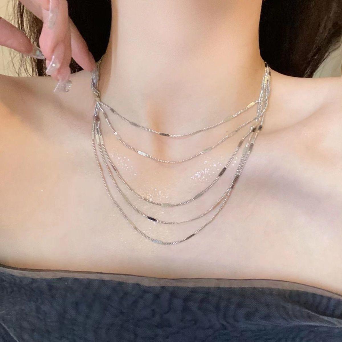 Collar multicapa de gypsophila con borlas brillantes, cadena de clavícula con diseño de nicho, temperamento que combina con todo, cadena para el cuello para mujer, nuevo